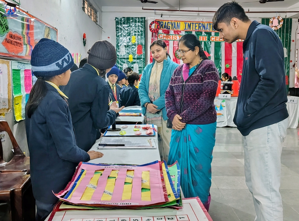 Description : Pragyan International School successfully organized a vibrant PTM–cum–Maths Exhibition, creating a joyful and enriching learning atmosphere. The PTM for Nursery to Grade 8 enabled meaningful interaction between parents and teachers, focusing on students’ progress, strengths and areas of improvement. Students from Grades 1 to 8 confidently presented creative mathematical models based on competency-based learning and SDGs, showcasing logical thinking and real-life applications. Their presentations reflected confidence, curiosity and innovative thinking. The School Manager Dr. Harish Kumar Sharma, Dr. Deepti Sharma and the Principal Dr. Priyanka Sharma appreciated the sincere efforts of students and teachers, motivating them to continue learning with enthusiasm and confidence. The event beautifully celebrated experiential and joyful learning.