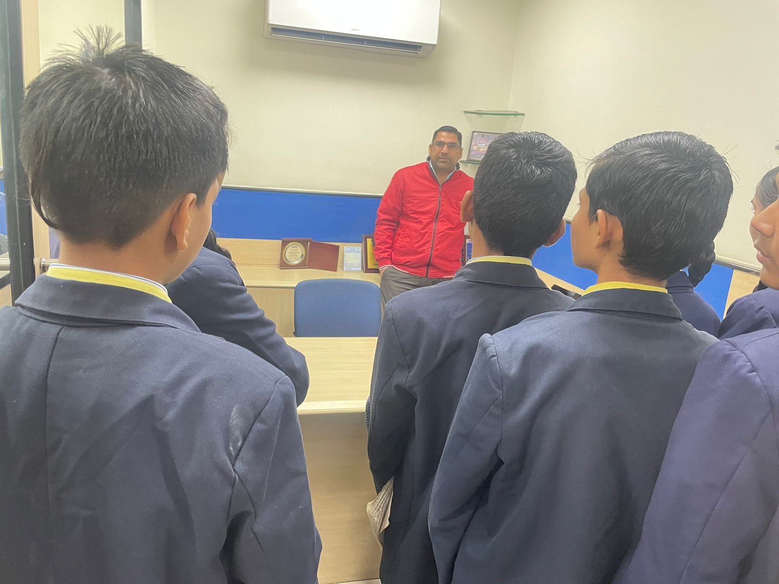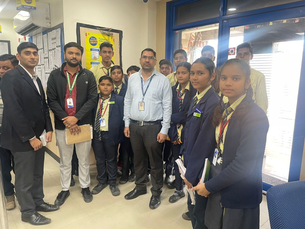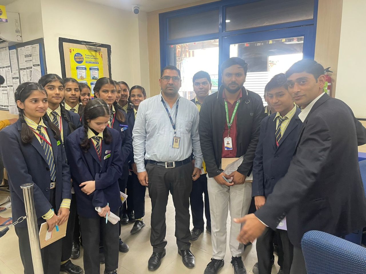 Description : Students of Pragyan International School, Yamuna Expressway, Dudhera, Jewar(G.B Nagar) visited the HDFC Bank on 9th Dec. 2022 . They were accompanied by their Maths teacher Mr.Jayesh and Mr.Praveen(Accountant). Bank Manager Mr. Prem Singh and their staff Mr. Rohtash Sharma gave a warm welcome to the students. The session was conducted by Mr. Prem Singh, who gave a brief introduction of banking. The primary objective was to equip the students with relevant analytical and practical knowledge of the banking system. Bank personnel gave a brief description of various aspects of banking such as type of loans, Types of accounts, general utility services such as overdraft facility, travelers' cheque, locker facility, cash credit, bill discounting, money at call, etc. Students were curious to know about cheques, the difference between banking and bank differences, EMI, Net Interest Income of banks, Types of cheques, Current chest, Types of Interest, demonetization, and GST. The students were sensitized about the role of banks in the financial system to facilitate business transactions. Students were able to understand the roles of bank employees, Borrowing, processing, and lending of money that takes place between banks and customers.