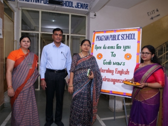 Description : #pragyanpublicschool #ppsjewar #DeeptiSharma #englishexhibition #showcase #model #culturalprogramme Pragyan Public School, Jewar 28th April, 23 "Your dreams are tied with a key, Our School unlocks it" Language is the most massive and inclusive art we know. Language shapes the way we think and determines what we can think about. It is the most powerful means of communication and an integral part of being human. Pragyan Public School has always tried to arouse creativity among its young learners through various scholastic and co-scholastic activities. It always takes the initiative to provide a platform to students so that they can exhibit their creative talents in various fields. In this regard on 28th April, 2023, the School organised an English Exhibition as a part of the Experiential learning methodology propagated by NEP-2020.The eminent guests Mr.Dhanesh Chand Gupta,Maths Lecturer Janta Inter College,Mr.Tej Singh,English Lecturer Jain Inter College and Mr.Laxman Singh Negi English Lecturer, Thora Inter College Jewar were welcomed by Honourable Manager Mr.Harish Kumar Sharma and Principal Ms.Deepti Sharma.They initiated the event by lamplightening and Saraswati Vandana infront of Maa Saraswati.The guests were honoured by giving them saplings and greeting cards.In English exhibition, the students from classes 3rd to 12th showed their interest in English literature by portraying their own concoction like fiction, poetry, article, story ,etc. All the matters presented by them were really praiseworthy.There were puzzles, word power, pronunciation, easy learning, how to speak in English phonetic, grammar topics, drama and many more displayed to mesmerize the audience. The way it was demonstrated by the students was wonderful. The students quite innovatively made use of the space by displaying posters, charts, models and quotes.Respected Manager Mr.Harish Kumar Sharma and Principal Ms.Deepti Sharma took a glimpse of all Exhibition stalls and asked various questions. The students confidently gave answers to them.Another attraction of this Exhibition was William Shakespeare's Dramas.The students of different houses of Pragyan performed Dramas of Shakespeare like Hamlet,Julius Caesar,Orthello,The Merchant of Venice,King Lear.The objective of this is to enhance the power of eloquence in English.They portrayed it superbly.The judges were Mr.P.K.Sharma Competition Coordinator,Mr.Suresh Chhonker PGT Geography and Mr.Lucky ATL Incharge.Overall the English Exhibition was Inventive and prolific.