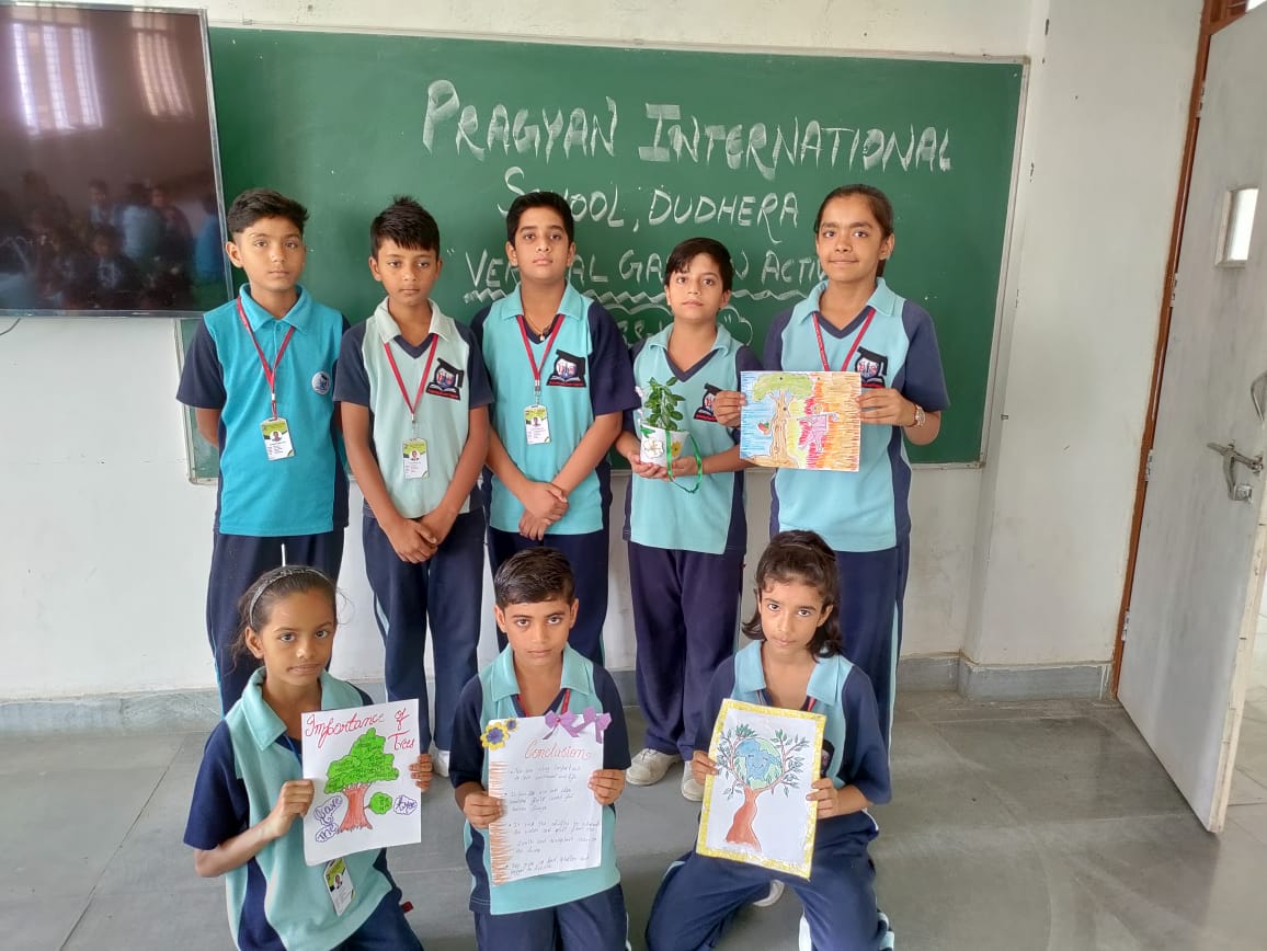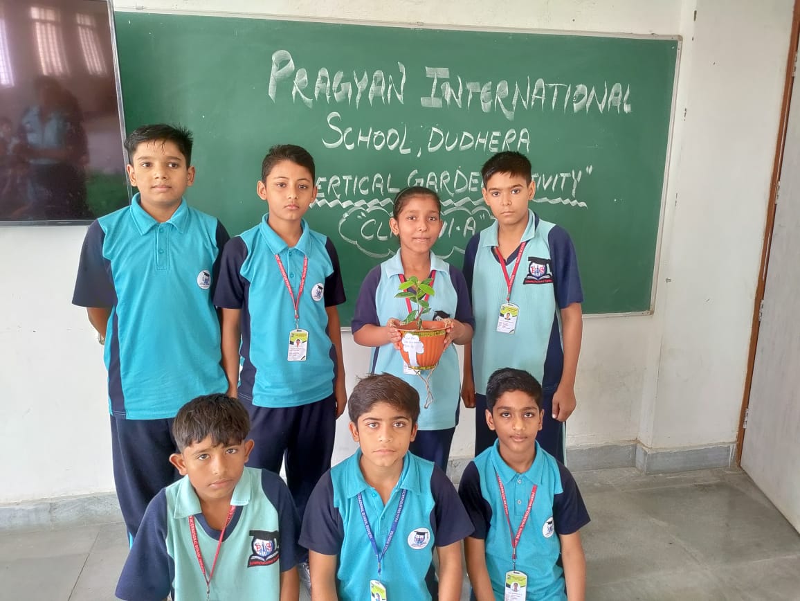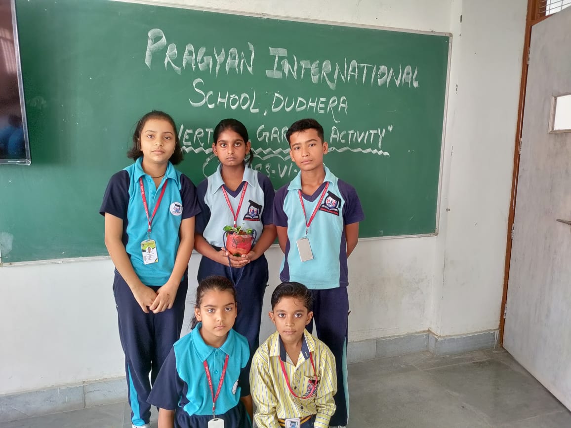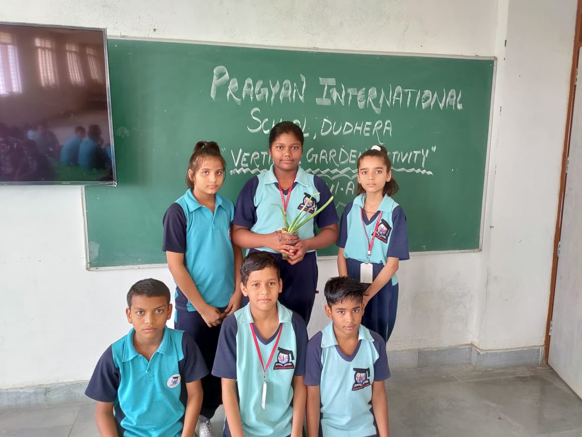 Description : Vertical Gardening is a special kind of urban gardening suitable for small spaces, particularly for decorating the walls and roofs in various styles. This is an alternative method for gardening by expanding the scope of growing plants in a vertical space. Pragyan International school has organized this activity in which students have participated actively. They have also given the presentation while explaining the importance of plants.