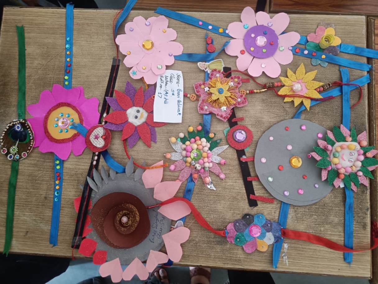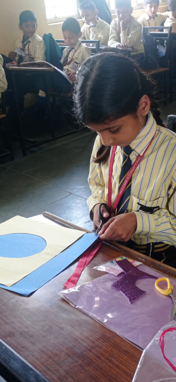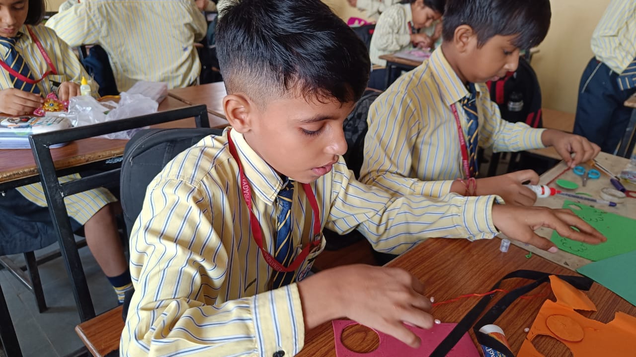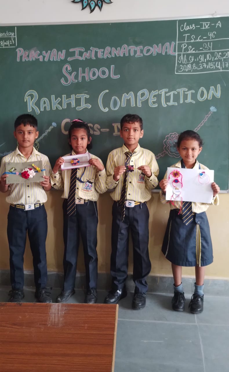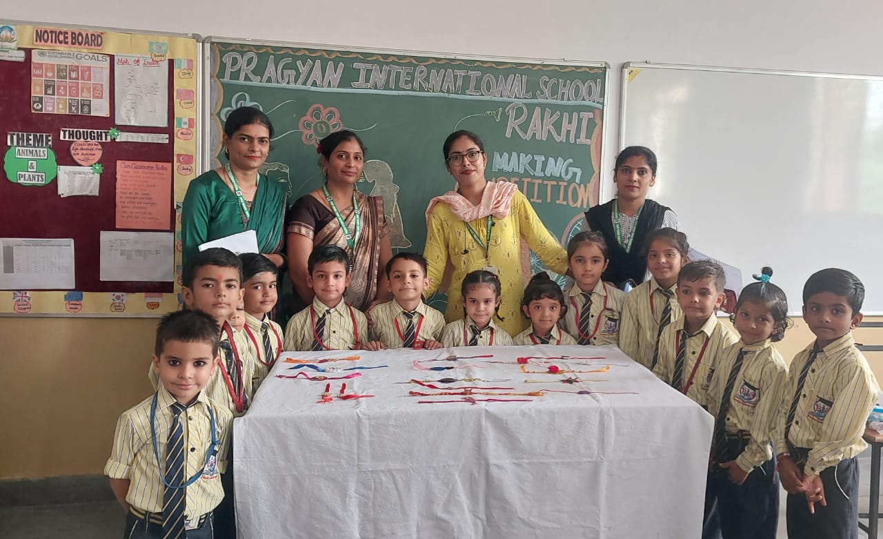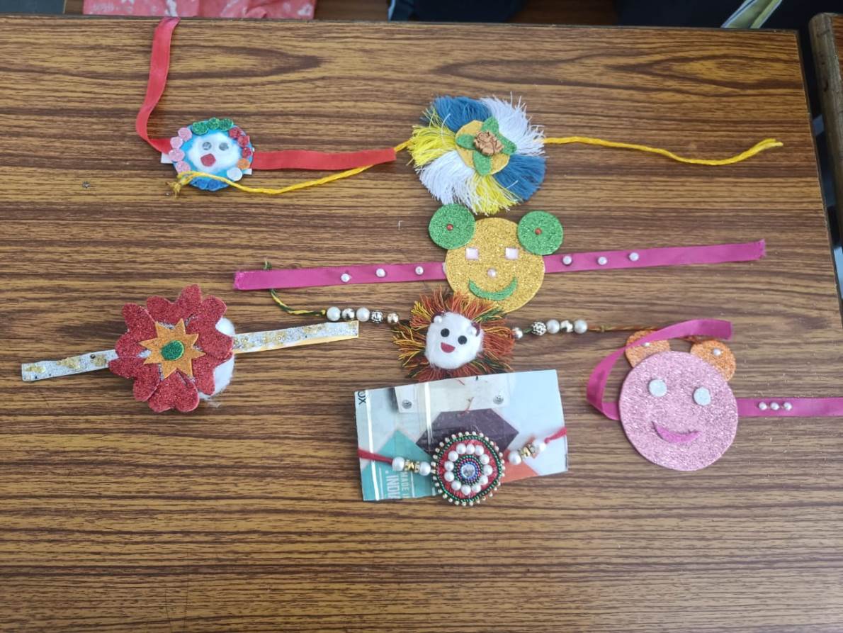 Description : 'Raksha Bandhan' or 'Rakhi' is a special occasion to celebrate the virtuous bond of love between a brother and a sister which is one of the deepest and noblest of all human emotions. 'Pragyan International School,Dudhera, organized'Rakhi Making Competition for the students from Class UKG to V and Mehandi Competition class VI to VIII on 28th August. The motive behind organizing competition is to enhance the skill of creativity and nurturing their inner talent.The competition started with full of enthusiasm among the students.All the students made beautiful Rakhi and Mehandi using different materials like ribbon, glitter,pearls, herbal etc under the guidance of their teachers .All the students thoroughly enjoyed the competition