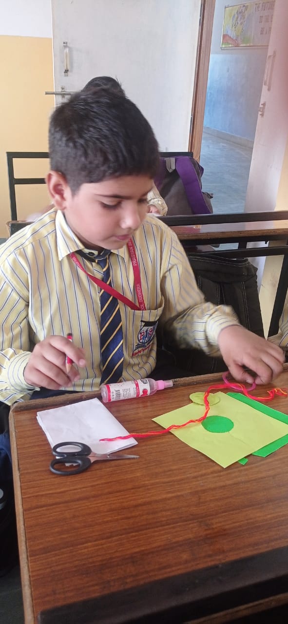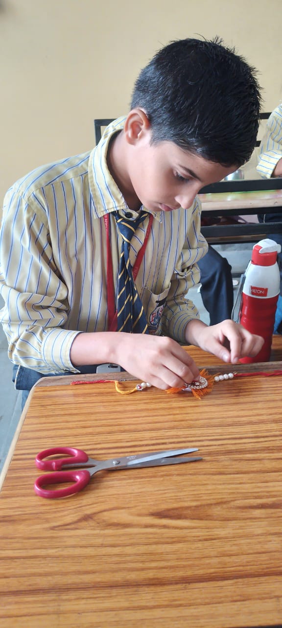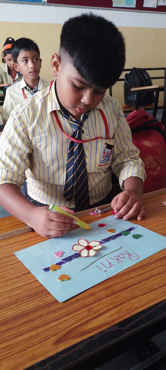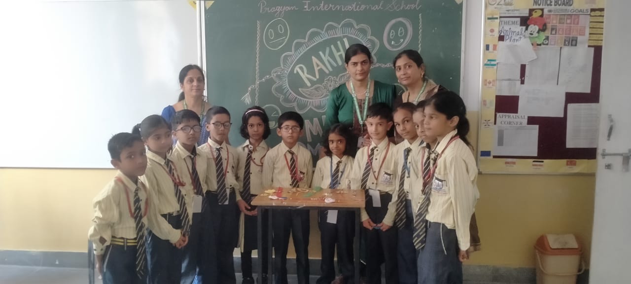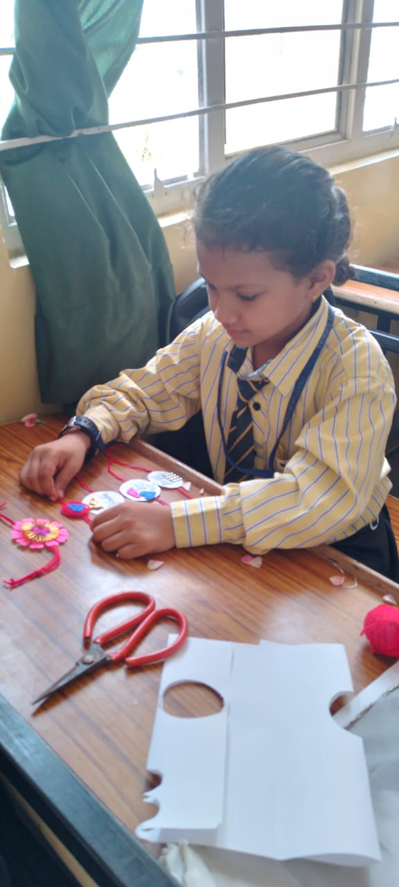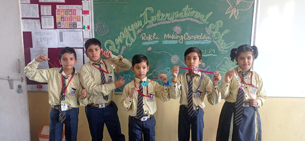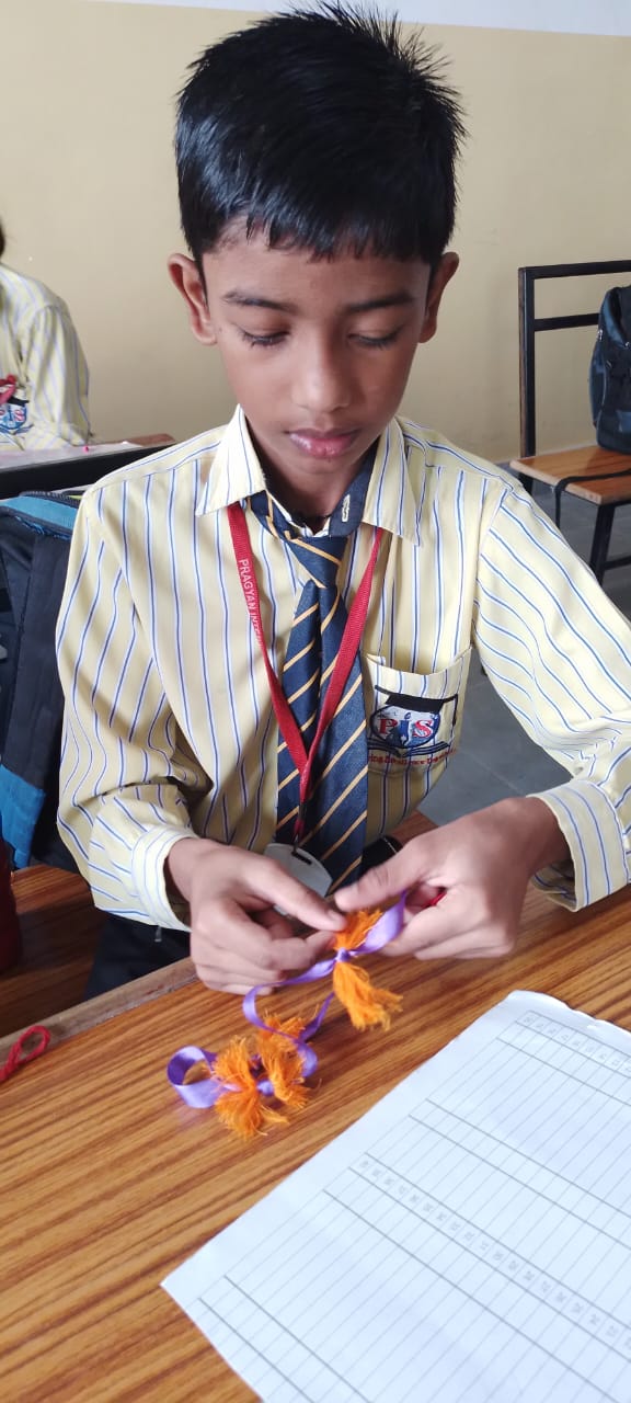 Description : 'Raksha Bandhan' or 'Rakhi' is a special occasion to celebrate the virtuous bond of love between a brother and a sister which is one of the deepest and noblest of all human emotions. 'Pragyan International School,Dudhera, organized'Rakhi Making Competition for the students from Class UKG to V and Mehandi Competition class VI to VIII on 28th August. The motive behind organizing competition is to enhance the skill of creativity and nurturing their inner talent.The competition started with full of enthusiasm among the students.All the students made beautiful Rakhi and Mehandi using different materials like ribbon, glitter,pearls, herbal etc under the guidance of their teachers .All the students thoroughly enjoyed the competition