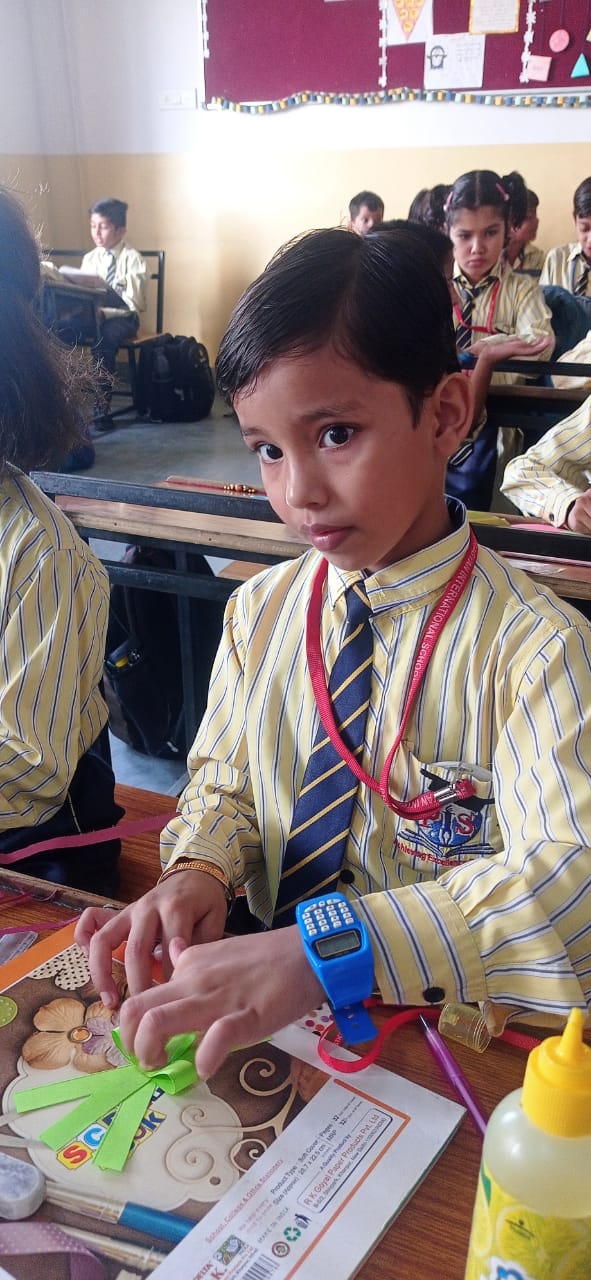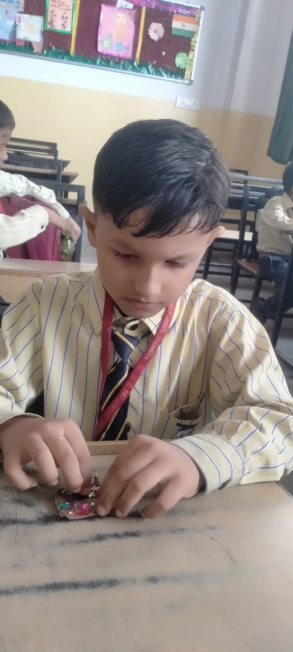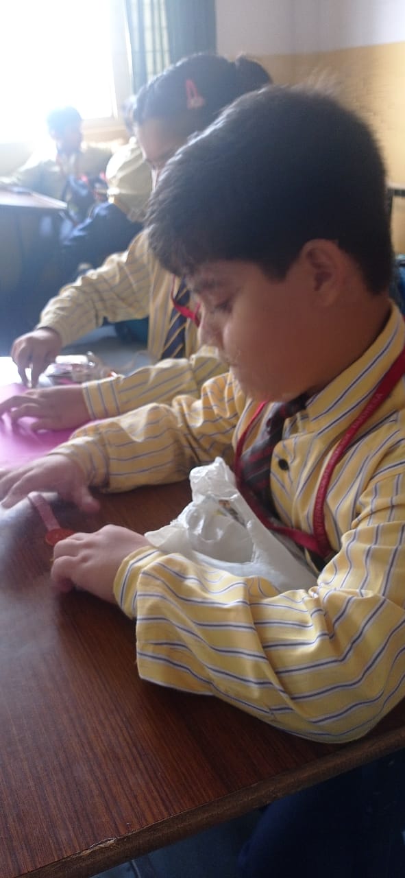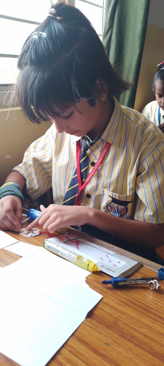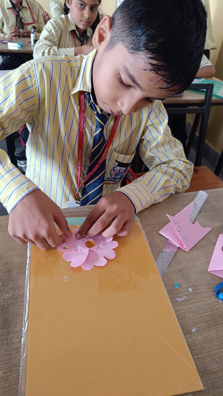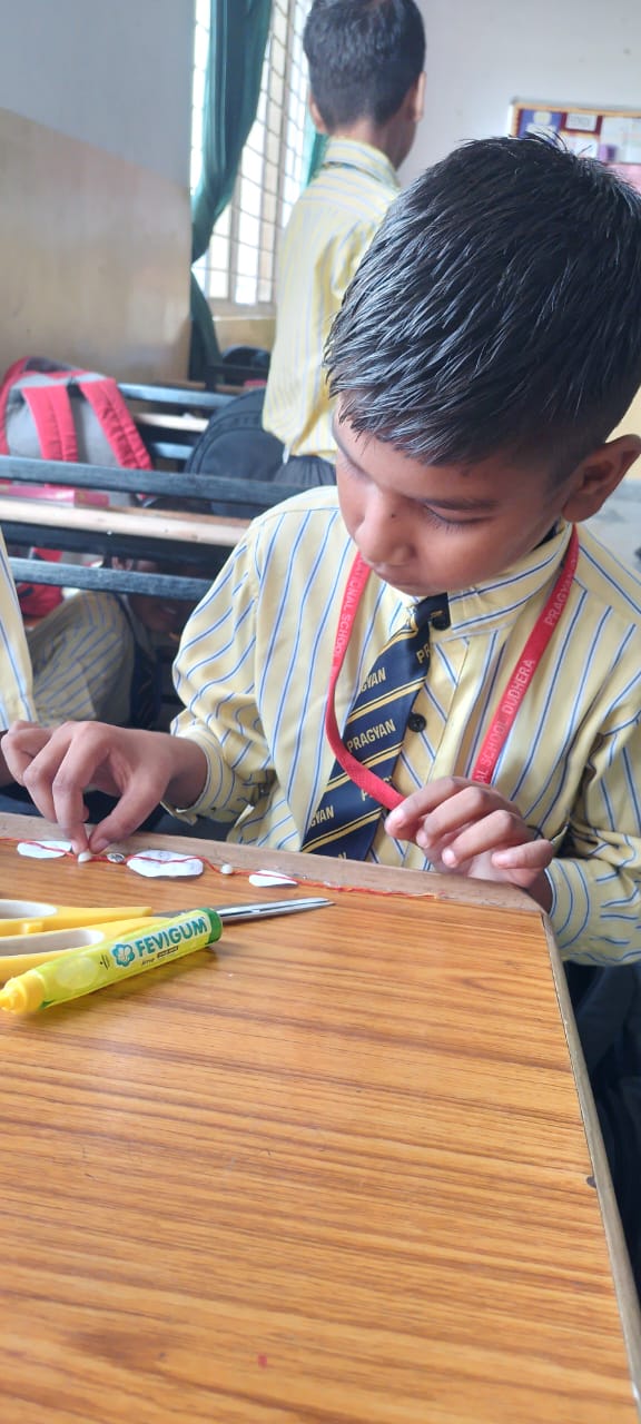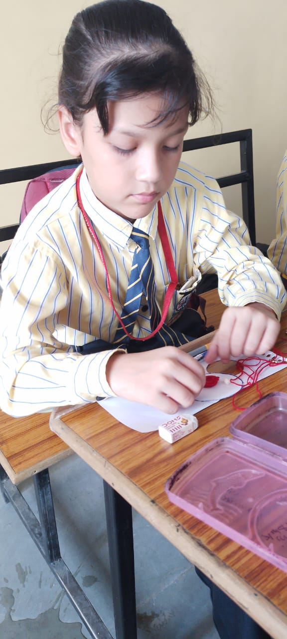 Description : 'Raksha Bandhan' or 'Rakhi' is a special occasion to celebrate the virtuous bond of love between a brother and a sister which is one of the deepest and noblest of all human emotions. 'Pragyan International School,Dudhera, organized'Rakhi Making Competition for the students from Class UKG to V and Mehandi Competition class VI to VIII on 28th August. The motive behind organizing competition is to enhance the skill of creativity and nurturing their inner talent.The competition started with full of enthusiasm among the students.All the students made beautiful Rakhi and Mehandi using different materials like ribbon, glitter,pearls, herbal etc under the guidance of their teachers .All the students thoroughly enjoyed the competition