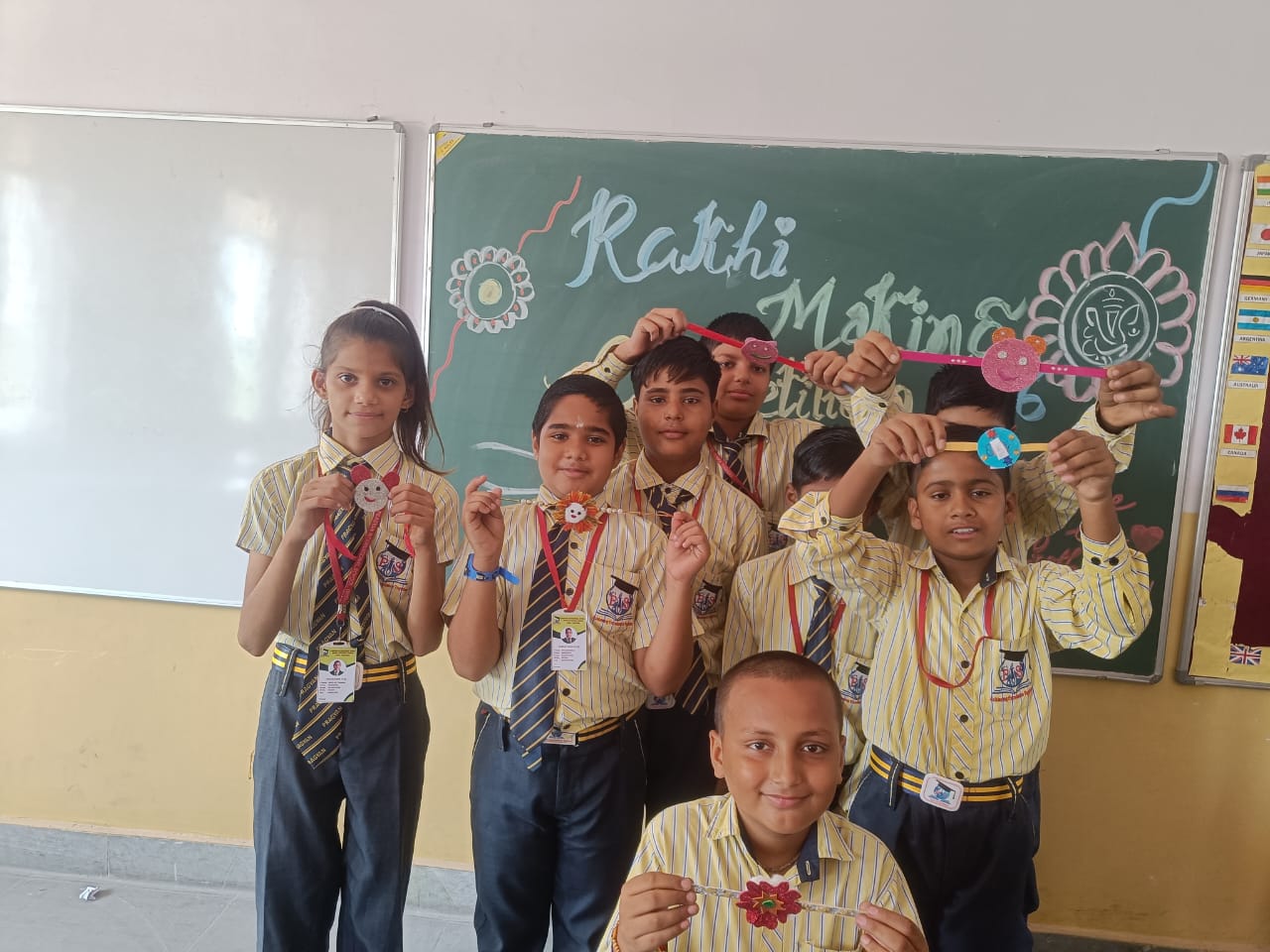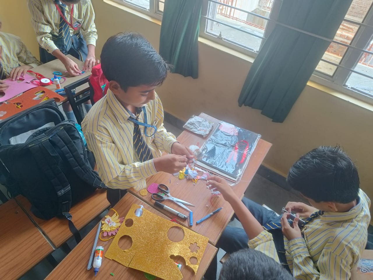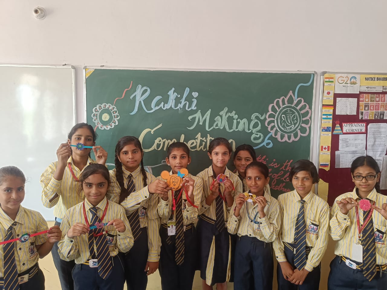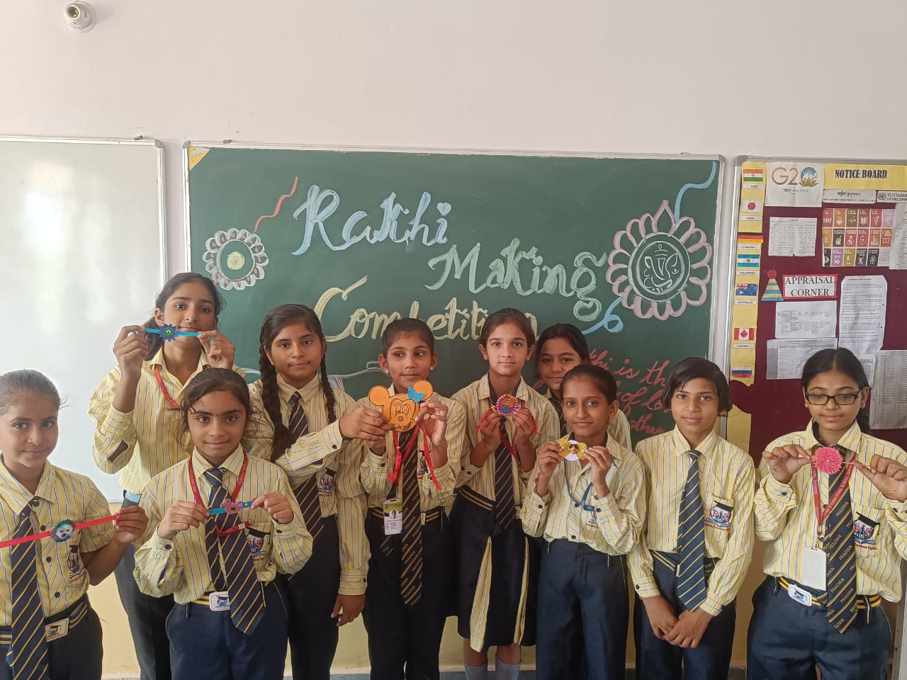 Description : 'Raksha Bandhan' or 'Rakhi' is a special occasion to celebrate the virtuous bond of love between a brother and a sister which is one of the deepest and noblest of all human emotions. 'Pragyan International School,Dudhera, organized'Rakhi Making Competition for the students from Class UKG to V and Mehandi Competition class VI to VIII on 28th August. The motive behind organizing competition is to enhance the skill of creativity and nurturing their inner talent.The competition started with full of enthusiasm among the students.All the students made beautiful Rakhi and Mehandi using different materials like ribbon, glitter,pearls, herbal etc under the guidance of their teachers .All the students thoroughly enjoyed the competition