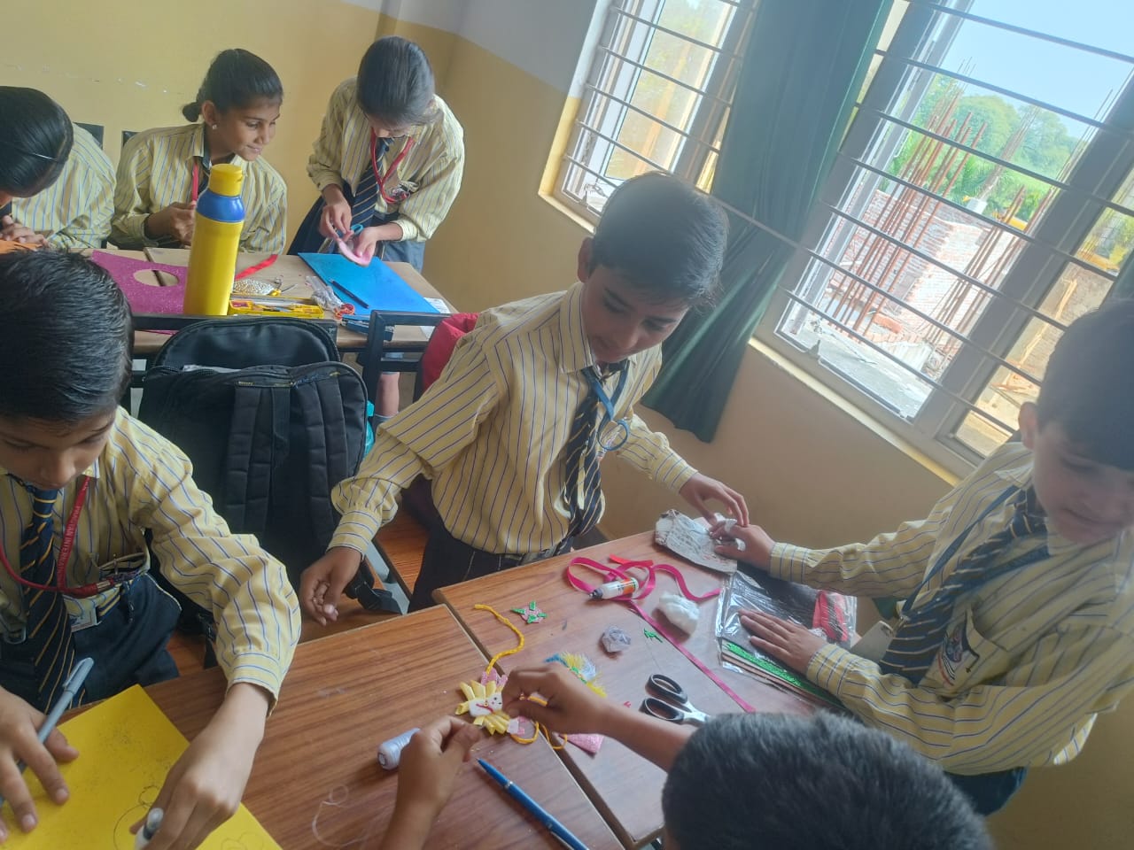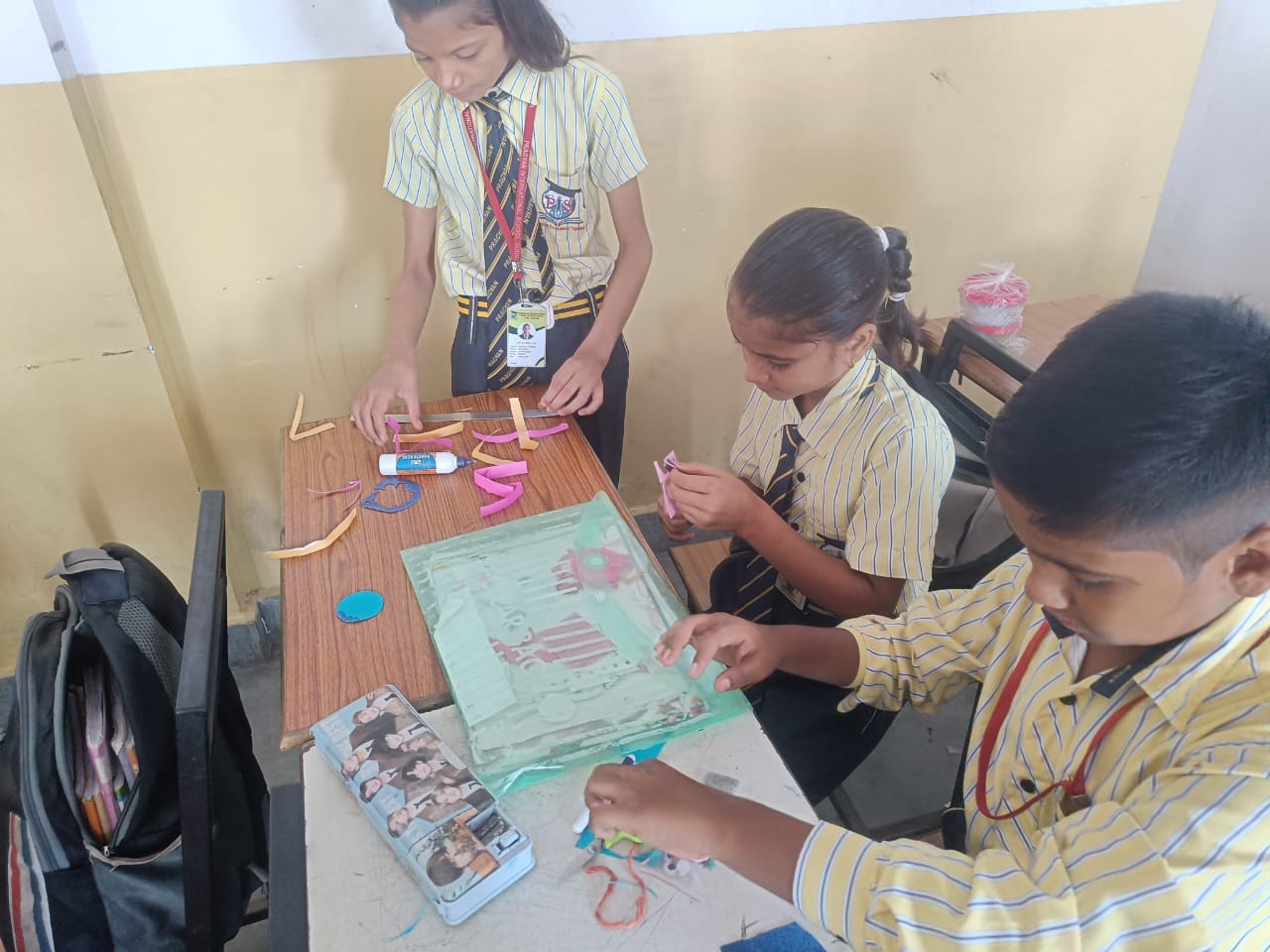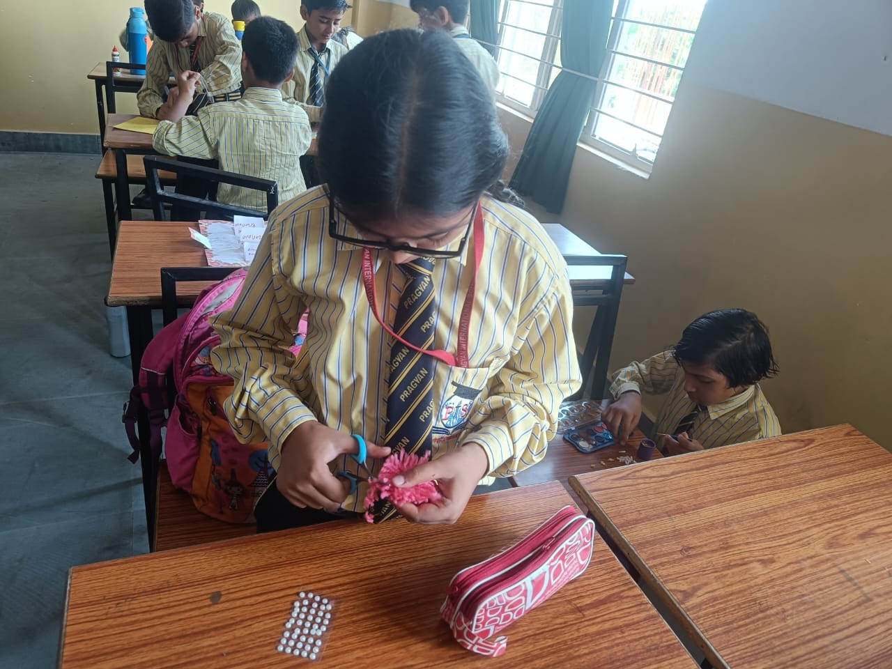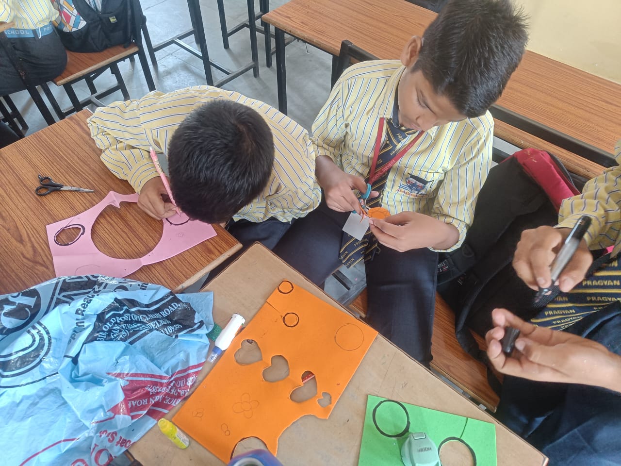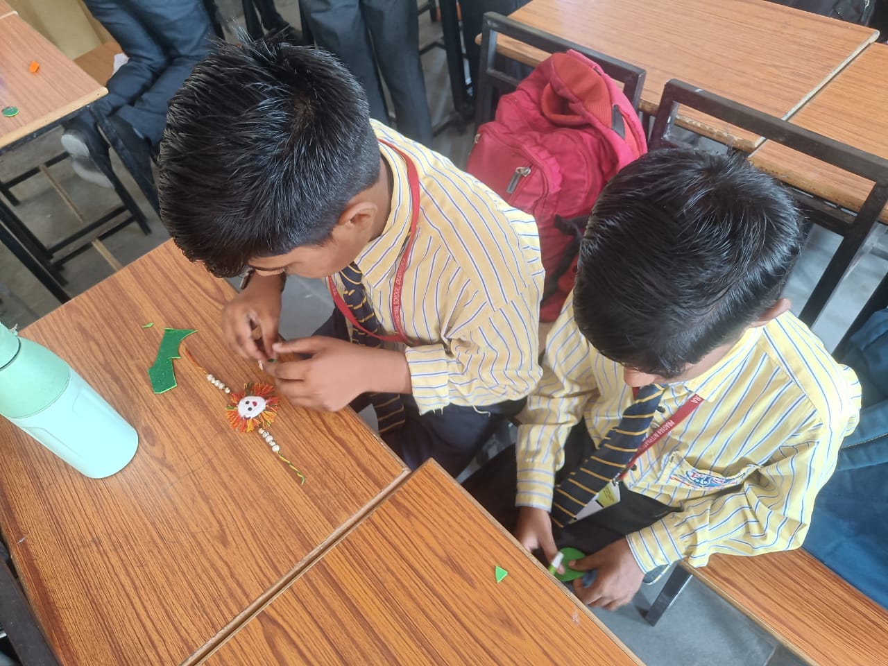 Description : 'Raksha Bandhan' or 'Rakhi' is a special occasion to celebrate the virtuous bond of love between a brother and a sister which is one of the deepest and noblest of all human emotions. 'Pragyan International School,Dudhera, organized'Rakhi Making Competition for the students from Class UKG to V and Mehandi Competition class VI to VIII on 28th August. The motive behind organizing competition is to enhance the skill of creativity and nurturing their inner talent.The competition started with full of enthusiasm among the students.All the students made beautiful Rakhi and Mehandi using different materials like ribbon, glitter,pearls, herbal etc under the guidance of their teachers .All the students thoroughly enjoyed the competition