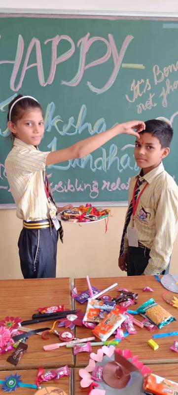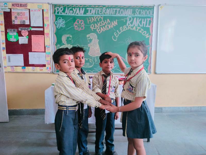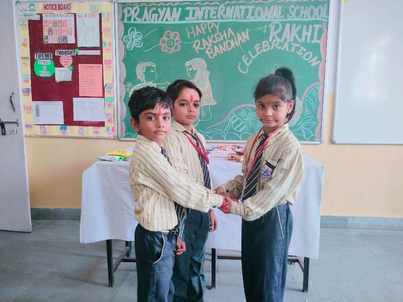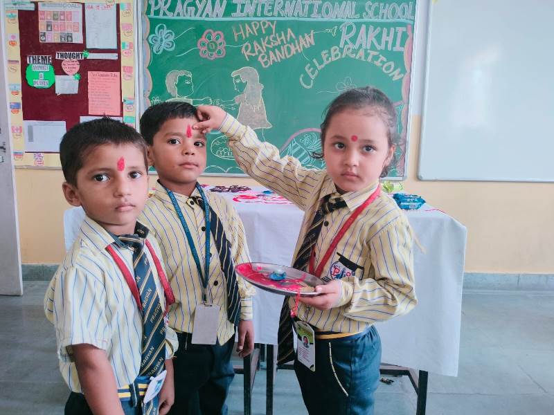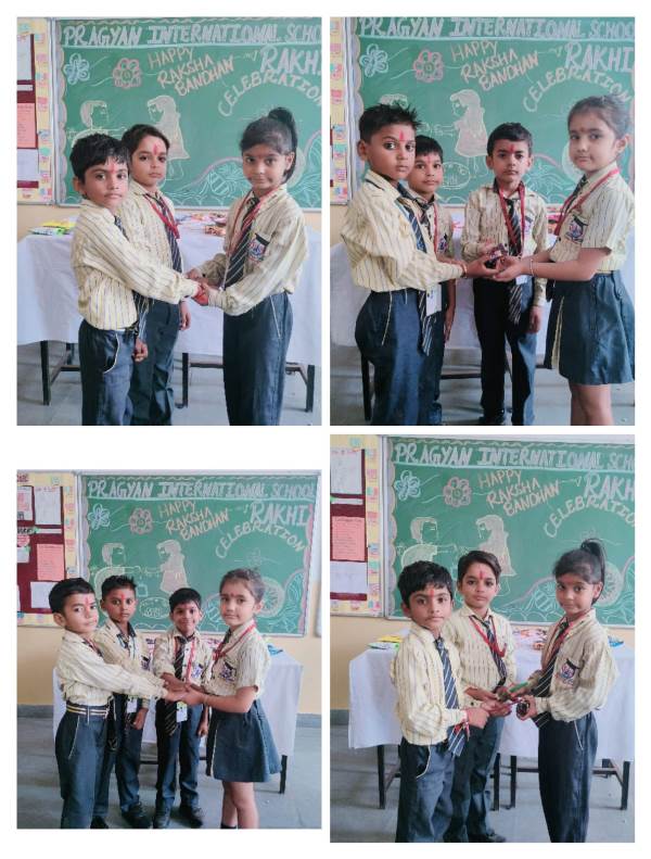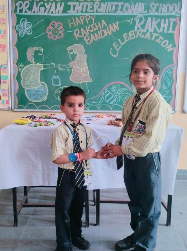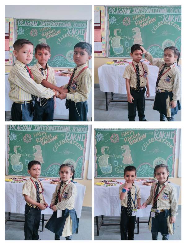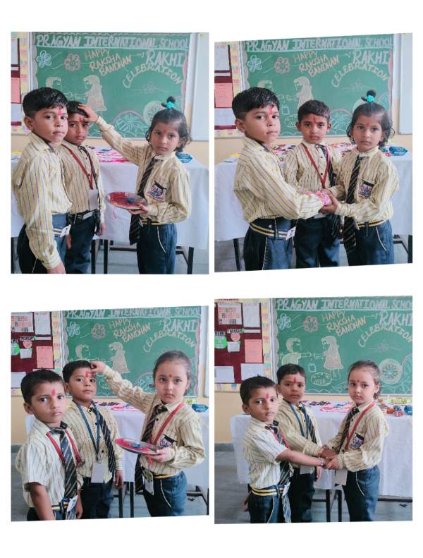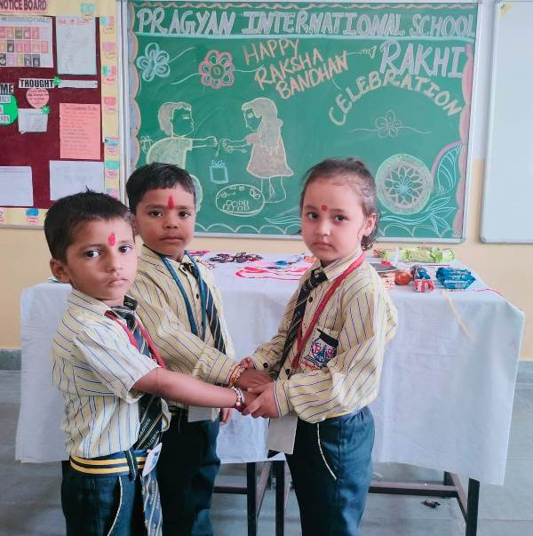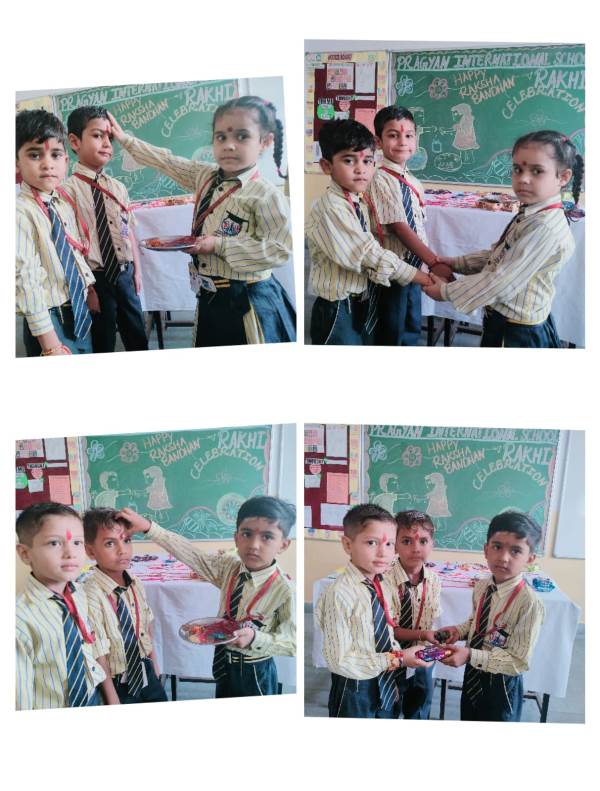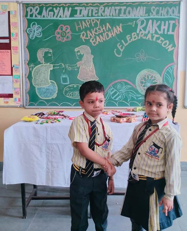 Description : Today, the children of Pragyan International School celebrated Raksha Bandhan in the School. The main objective behind the celebration was to make the children aware of the virtuous bond of love between a brother and a sister. The enthusiasm of the kids was worth watching and the girl students ties a holy thread around the wrist of boy students. The boy students came with sweets, symbolizing the sweet bond they share with their friends and classmates. We extend our heartfelt gratitude to the teachers who orchestrated this delightful event and to our adorable students who participated wholeheartedly. Their enthusiasm and involvement added a special touch to this celebration! Let's continue to nurture these beautiful traditions and values, passing them on to the next generation with love and care.