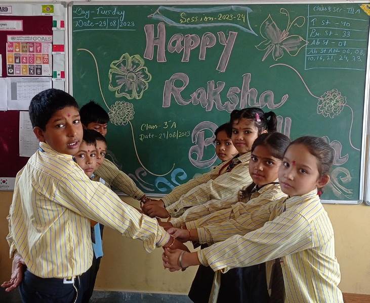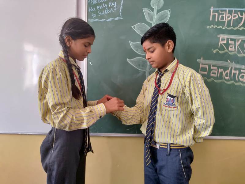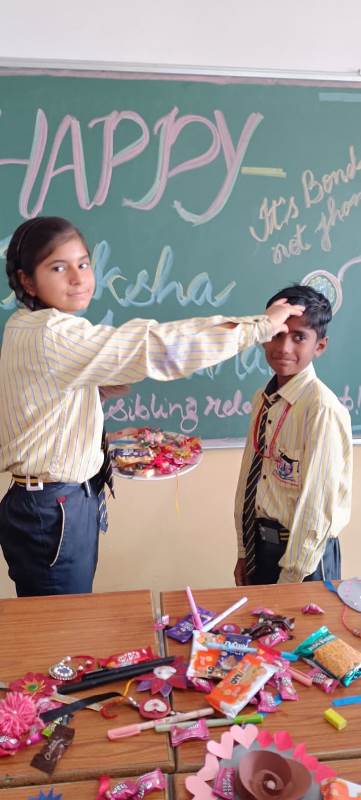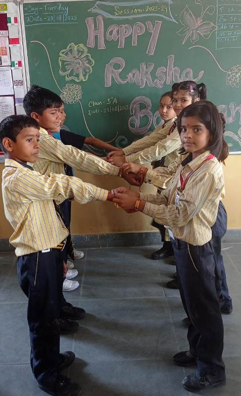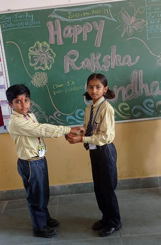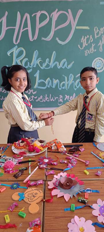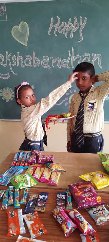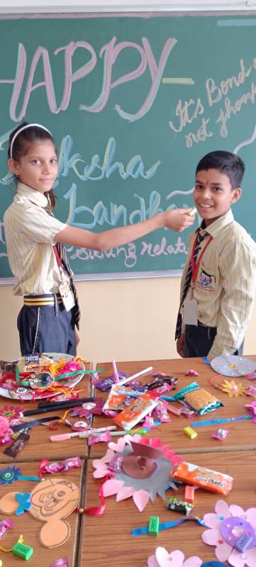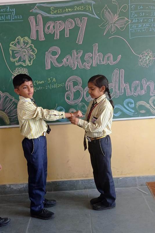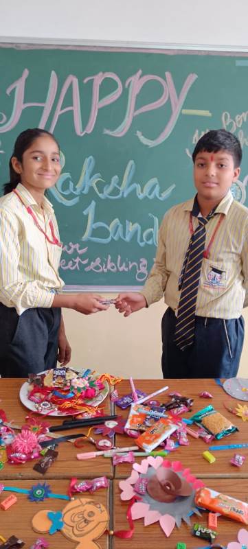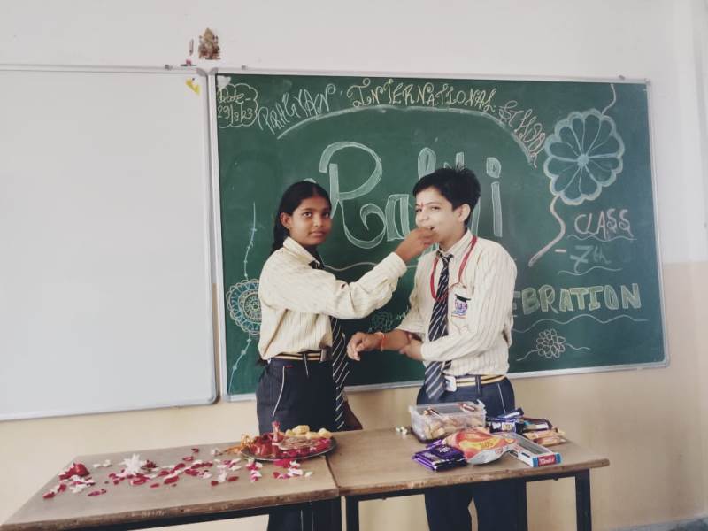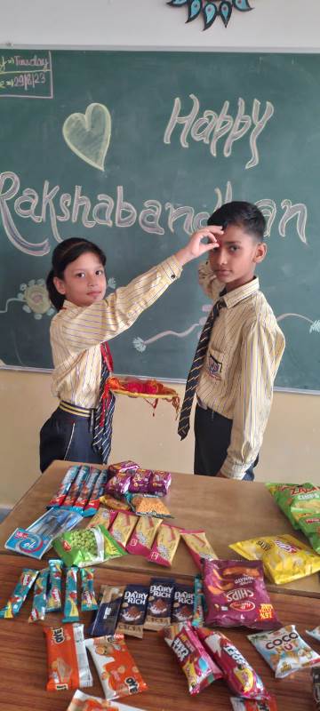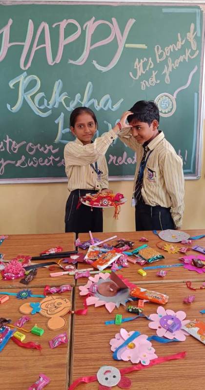 Description : Today, the children of Pragyan International School celebrated Raksha Bandhan in the School. The main objective behind the celebration was to make the children aware of the virtuous bond of love between a brother and a sister. The enthusiasm of the kids was worth watching and the girl students ties a holy thread around the wrist of boy students. The boy students came with sweets, symbolizing the sweet bond they share with their friends and classmates. We extend our heartfelt gratitude to the teachers who orchestrated this delightful event and to our adorable students who participated wholeheartedly. Their enthusiasm and involvement added a special touch to this celebration! Let's continue to nurture these beautiful traditions and values, passing them on to the next generation with love and care.