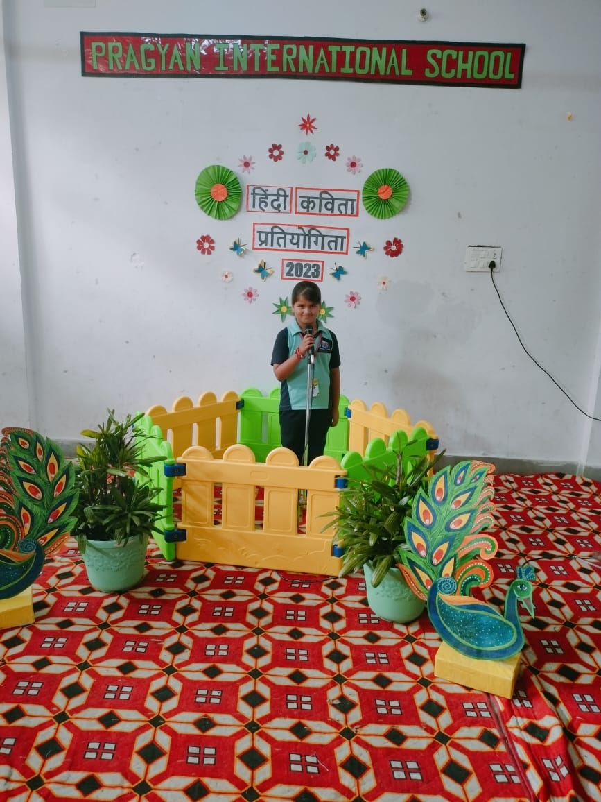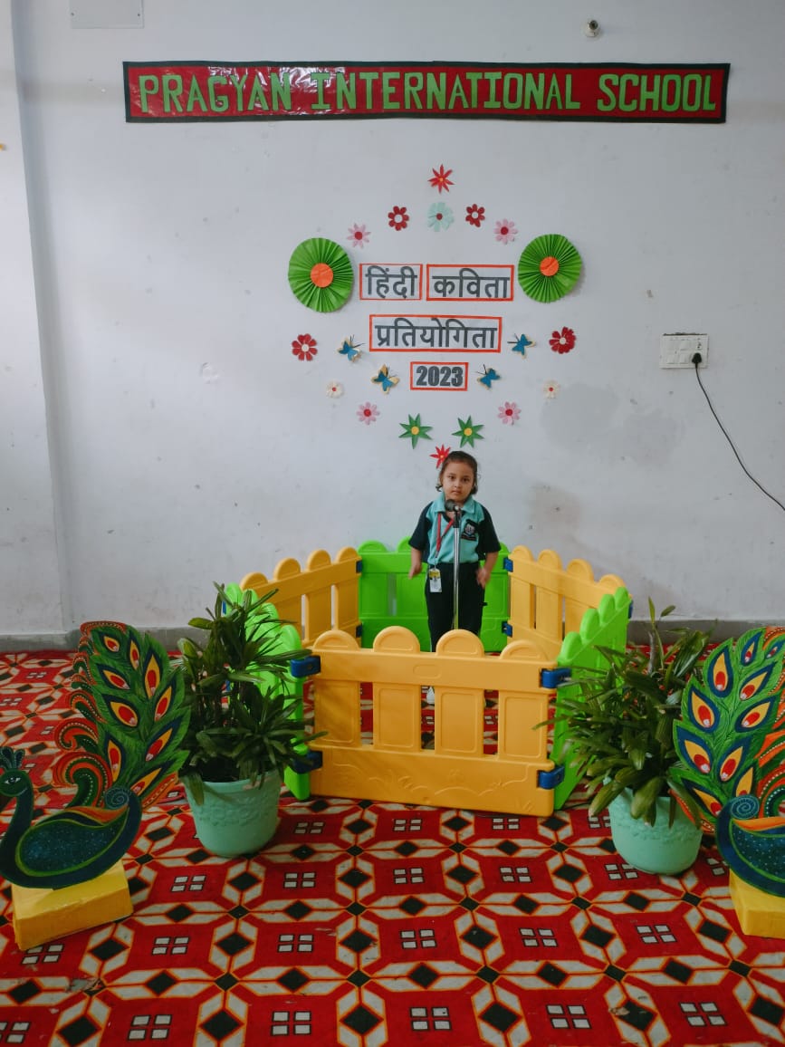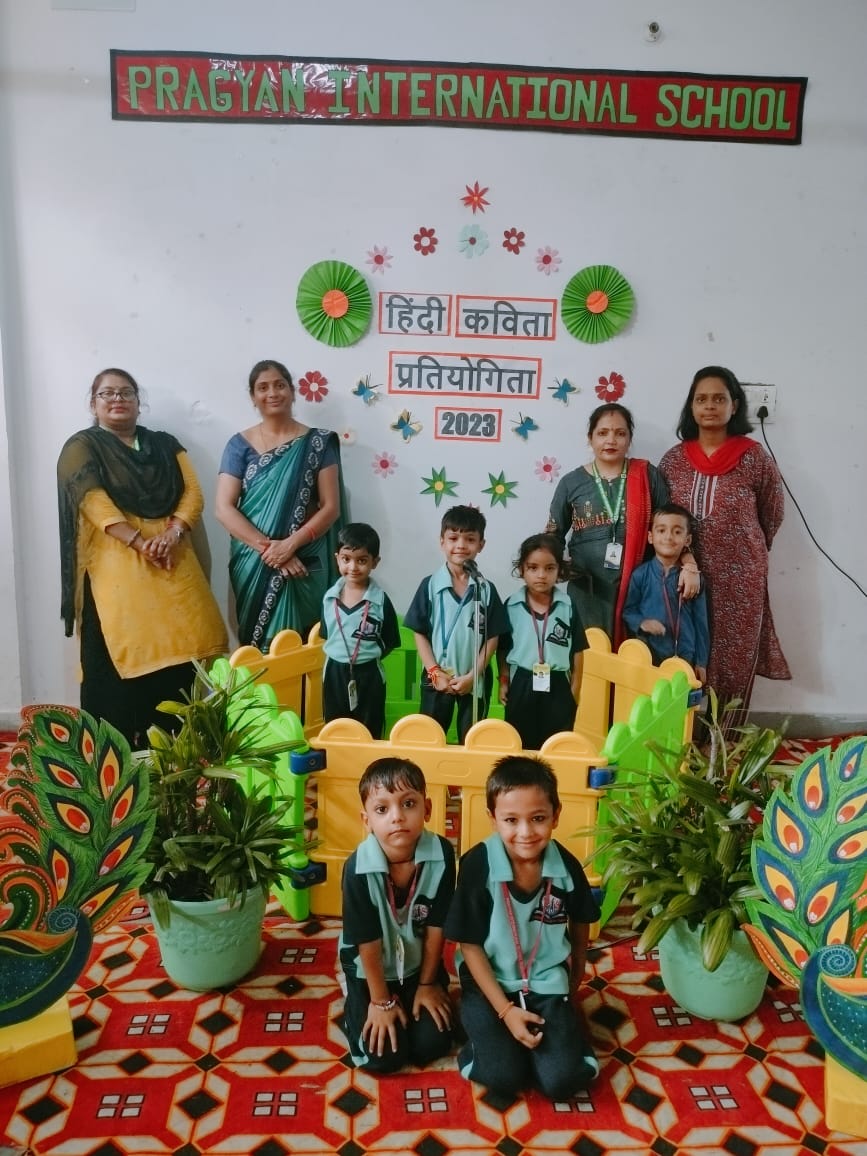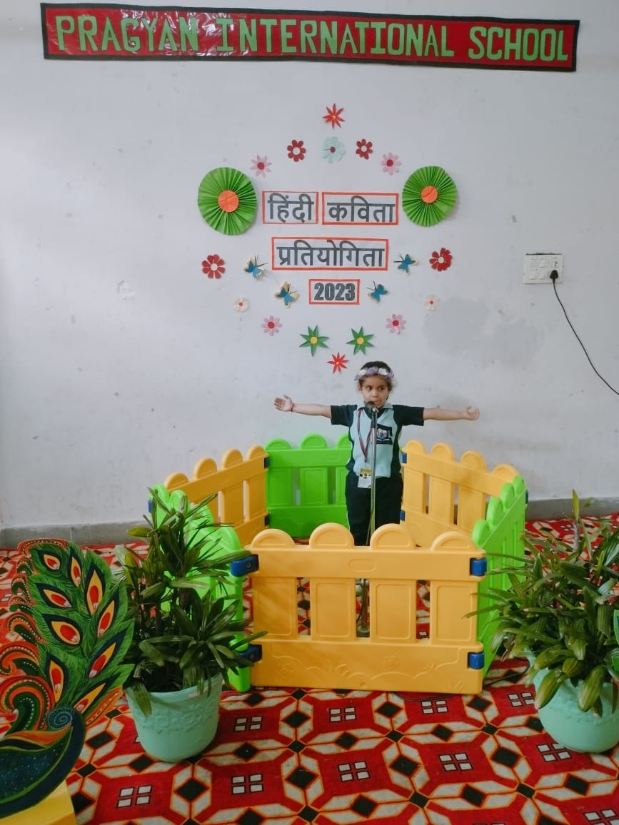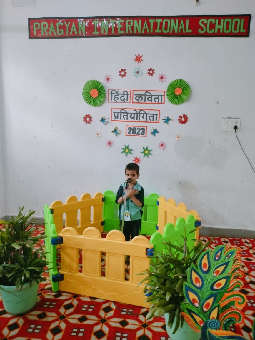 Description : Pragyan International School, Dudhera organized Hindi Poetry Recitation Competition on 13th September,2023 for grade Nursery to U.K.G.Recitation activities help students to build confidence as they learn to speak more accurately about any piece of writing. Many children recited poems.The children came up with different poems and recited them with great zeal and enthusiasm. Students were judged on parameters like confidence, content theme, voice modulation and overall presentation. Judges were invited to witness the competition. They thanked all the schools for their cooperation & appreciated all the participants for their enthralling performances.