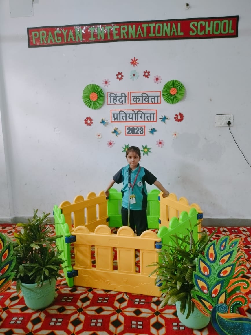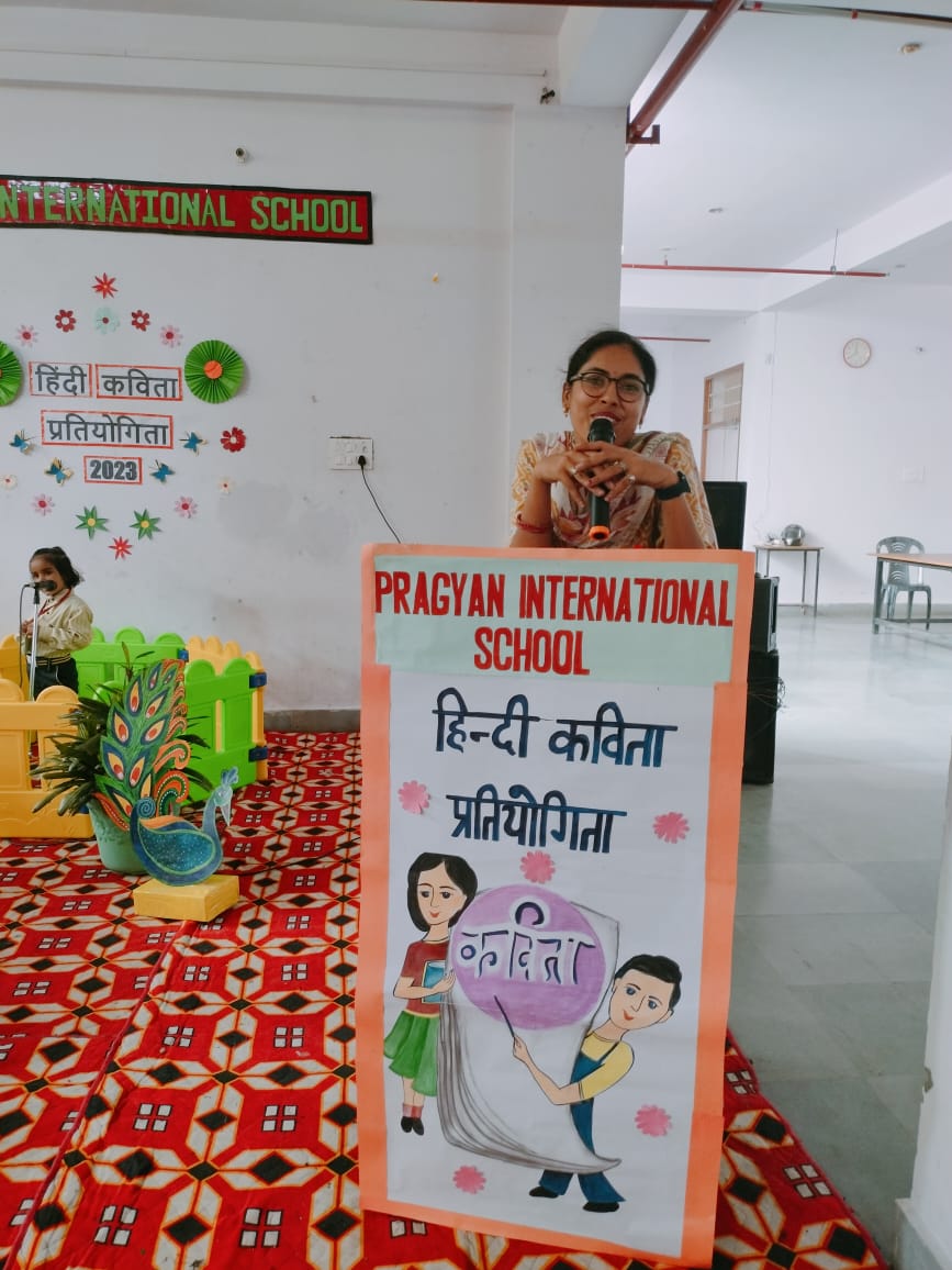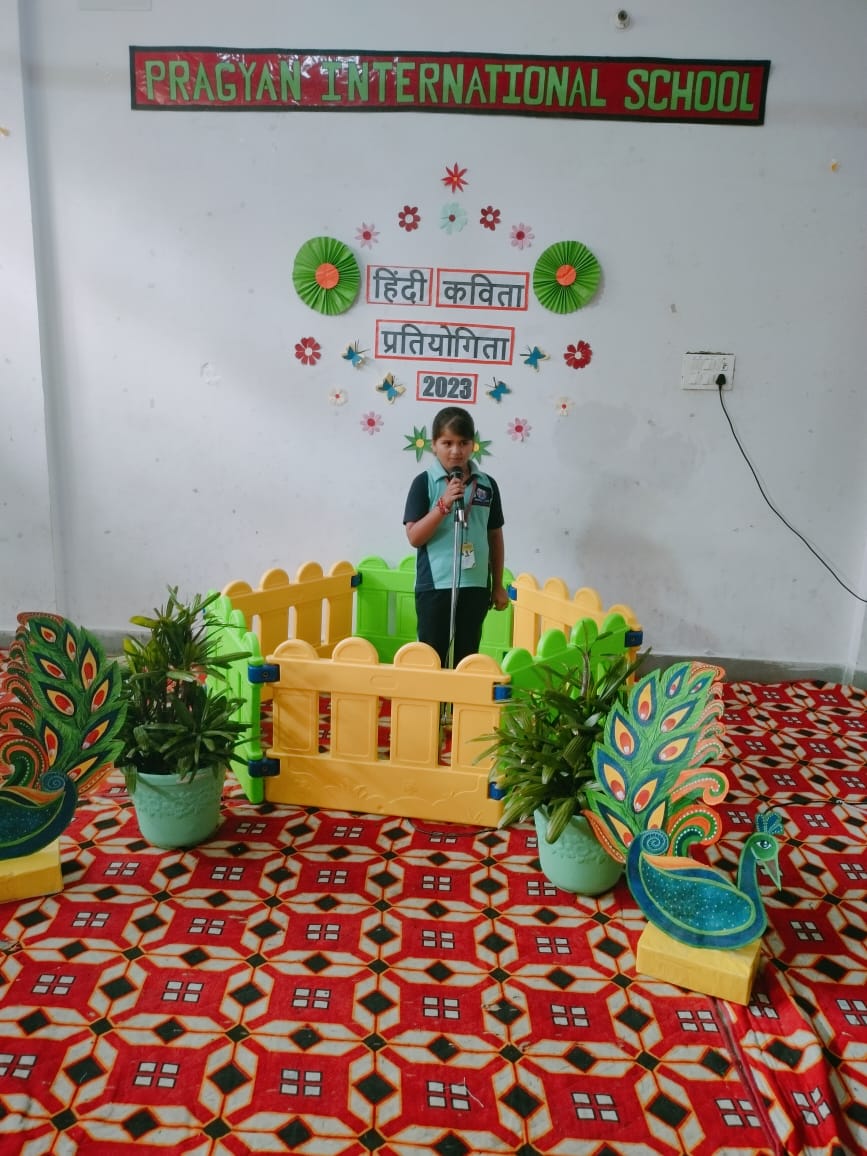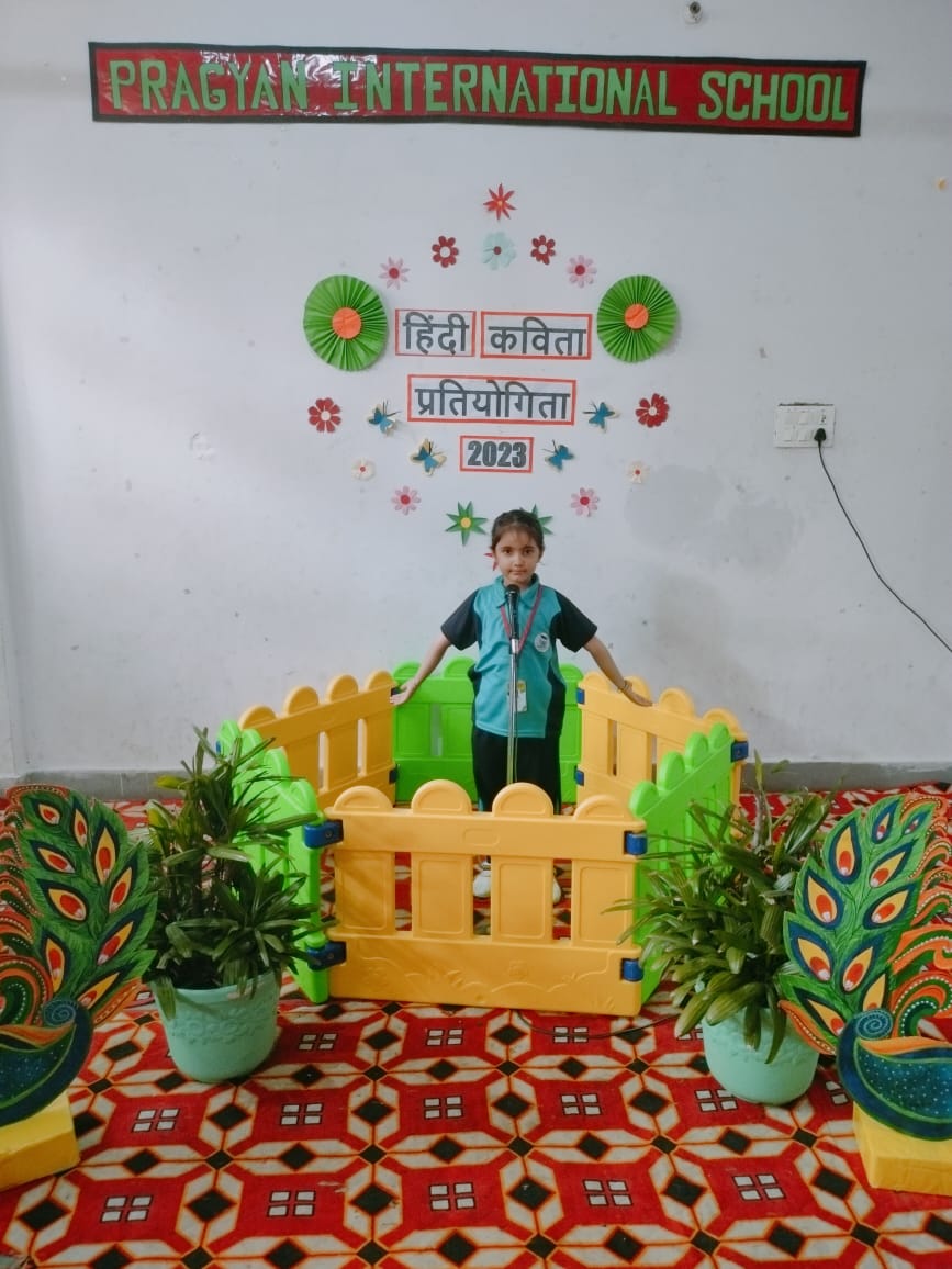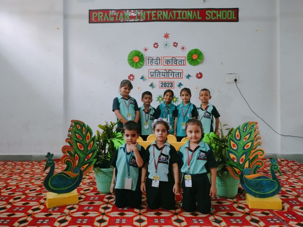 Description : Pragyan International School, Dudhera organized Hindi Poetry Recitation Competition on 13th September,2023 for grade Nursery to U.K.G.Recitation activities help students to build confidence as they learn to speak more accurately about any piece of writing. Many children recited poems.The children came up with different poems and recited them with great zeal and enthusiasm. Students were judged on parameters like confidence, content theme, voice modulation and overall presentation. Judges were invited to witness the competition. They thanked all the schools for their cooperation & appreciated all the participants for their enthralling performances.