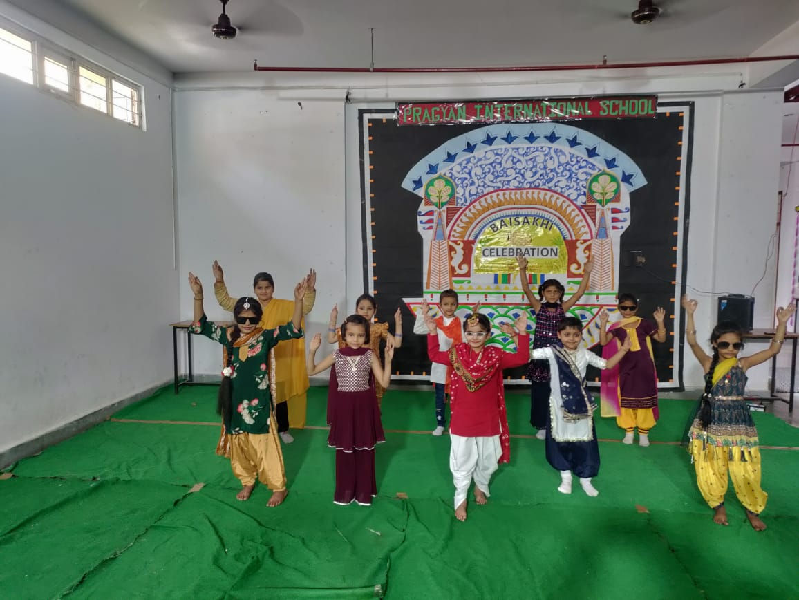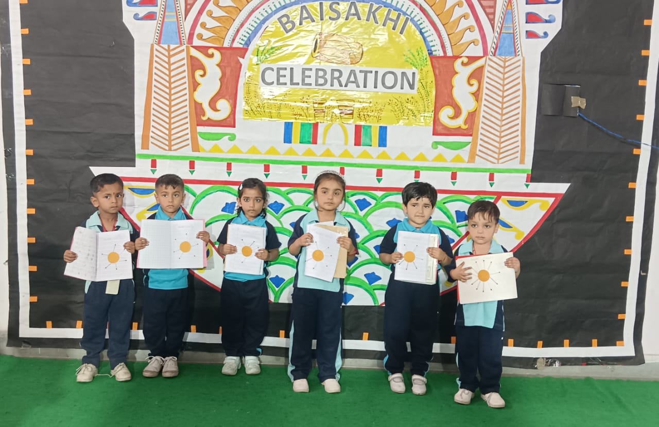Description : Pragyan International School* Celebrated Baisakhi with great enthusiasm in the campus. A series of events were programmed for the day. A special Assembly was organised to commence the occasion. Two of the students spoke about the importance of the festival and why it is celebrated in Punjab. The boys of class Nursery to 2nd performed BHANGRA and the girls of the same age group impressed all with their beautiful GIDDHA performance. Mrs. Seema Sharma (Coordinator of School) spoke on the significance of celebrating important days like BAISAKHI and appealed to students to learn from the historic significance of the day in the lives of people. She extended her good wishes to the students and staff for the festival. The young children of kindergarten and classes I and Il, many of them were dressed in colorful, Punjabi and traditional outfits, participated in drawing and other activities on the theme to get the feel of the festivity.