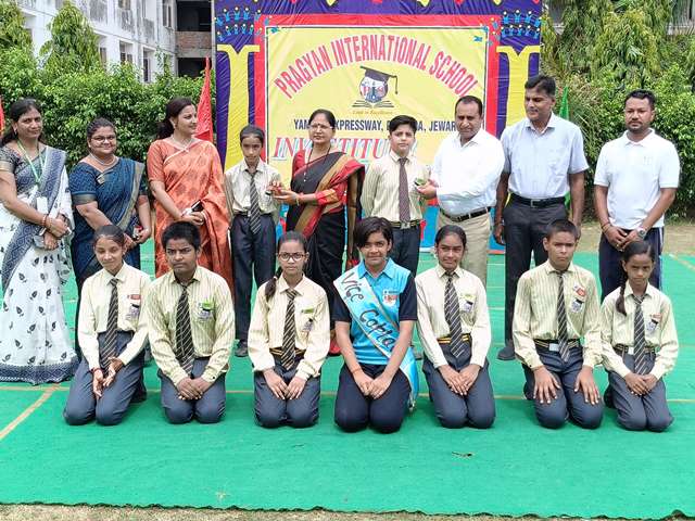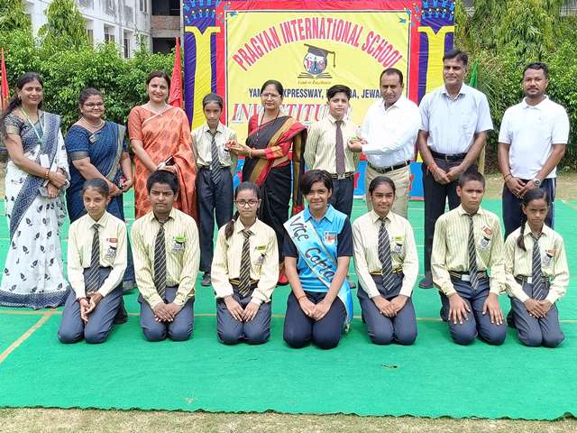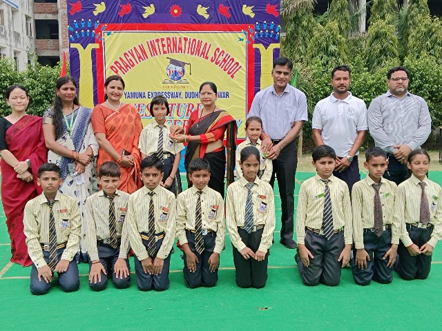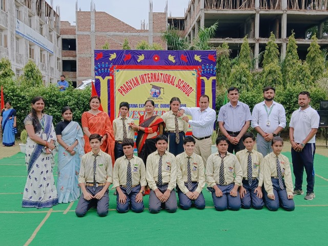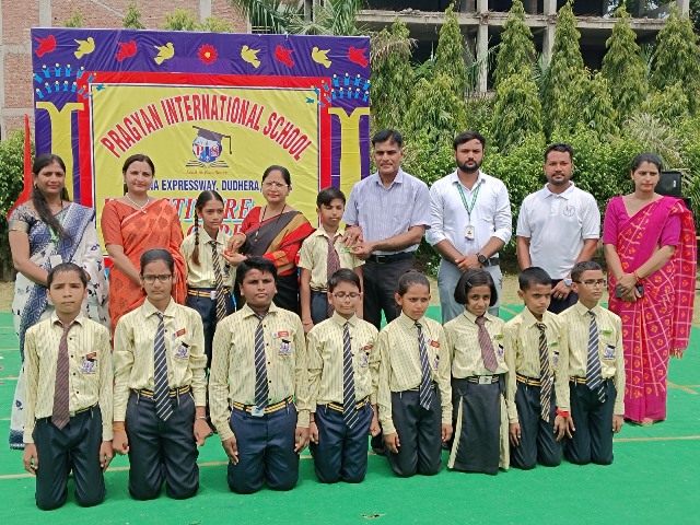 Description : 13 जुलाई 2024/ प्रज्ञान इंटरनेशनल स्कूल, डुढेरा में छात्र अलंकरण समारोह का भव्य आयोजन किया गया।अलंकरण समारोह का शुभारम्भ विद्यालय के प्रबन्धक श्री हरीश कुमार शर्मा प्रधानाचार्या श्रीमती दीप्ति शर्मा एवं कोषाध्यक्ष श्री अमोल कुमार शर्मा के के द्वारा ध्वजारोहण के साथ हुआ।छात्र- मुख्य परिषद के छात्र-छात्राओं के द्वारा मार्च पास्ट किया गया।विद्यालय के प्रबन्धक श्री हरीश कुमार शर्मा, प्रधानाचार्या श्रीमती दीप्ति शर्मा एवं कोषाध्यक्ष श्री अमोल कुमार शर्मा के द्वारा छात्र - परिषद के पदाधिकारियों कैप्टन,वाइस कैप्टन, खेल प्रभारी आदि को बैज एवं पट्टिका देकर पद भार प्रदान किए गए।प्रधानाचार्या श्रीमती दीप्ति शर्मा के द्वारा छात्र परिषद के चयनित छात्र- छात्राओं को पद एवं गोपनीयता की शपथ भी दिलाई गयी।इस अवसर पर संकाय प्रभारी मिस. प्रियंका शर्मा ने अपने प्रेरणादायक भाषण में छात्र-छात्राओं में नेतृत्व कौशल को विकसित करने की प्रेरणा देते उन्हें जीवन में हर जिम्मेदारी को निष्ठा एवं ईमानदारी से निभाने के लिए प्रेरित किया।इस अवसर पर शारीरिक शिक्षा विभागाध्यक्ष श्री गजेंद्र यादव, संगीत विभागाध्यक्ष श्री प्रियांक सक्सेना ने भी छात्र-छात्राओं को अपनी जिम्मेदार निभाने के लिए प्रेरित किया। विद्यालय के प्रबन्धक श्री हरीश कुमार शर्मा ने छात्र परिषद के मनोनीत सदस्यों को शुभकामनाएँ देते हुए उन्हें अपने नेतृत्व कौशल को विकसित करते हुए राष्ट्र एवं समाज के नव निर्माण में महत्वपूर्ण भूमिका निभाने के लिए प्रेरित किया । विद्यालय की प्रधानाचार्या श्रीमती दीप्ति शर्मा ने छात्र परिषद के मनोनीत सदस्यों को शुभकामनाएँ दीं। साथ ही उन्होंने छात्र-छात्राओं को अपने नेतृत्व-कौशल को पहचान कर जीवन में आगे बढ़ने के लिए प्रेरित किया।
