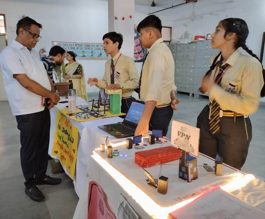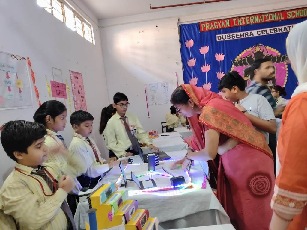 Description : 10th October ,2024. Pragyan international School hosted a dynamic and inspiring exhibition showcasing innovations in Information Technology (IT) and Atal Tinkering Lab (ATL) along with the Halfyearly exam PTM. The event was inaugurated by Honorable Manager Mr. Harish Kumar Sharma,the Principal Ms.Deepti Sharma,the chief guest Shri Tejpal Singh Bhati Principal Sarvhitkari Inter College Dayanatpur,Mr Abhishek Sharma IT teacher from Sarvhitkari Inter College Dayanatpur ,H.O.D. IT department Pragyan Ms. Renu Pathak and Pragyan's ATL Incharge Mr.Lucky by lightning the lamp before Goddess Saraswati.The event featured a variety of projects developed by students, demonstrating their technical skills, creativity, and problem-solving abilities.The attractive ones were the projects on Ethical Hacking, Communication Channel , Robotics model, E- Commerce Website and models,Digital Transaction and Virus threats Detector, Road light system Model.Parents and guests appreciated the school's efforts in fostering a hands-on learning environment that encourages young minds to explore cutting-edge technologies.Overall, the IT and ATL exhibition at Pragyan International School was a resounding success, providing a platform for the next generation of tech innovators to shine.