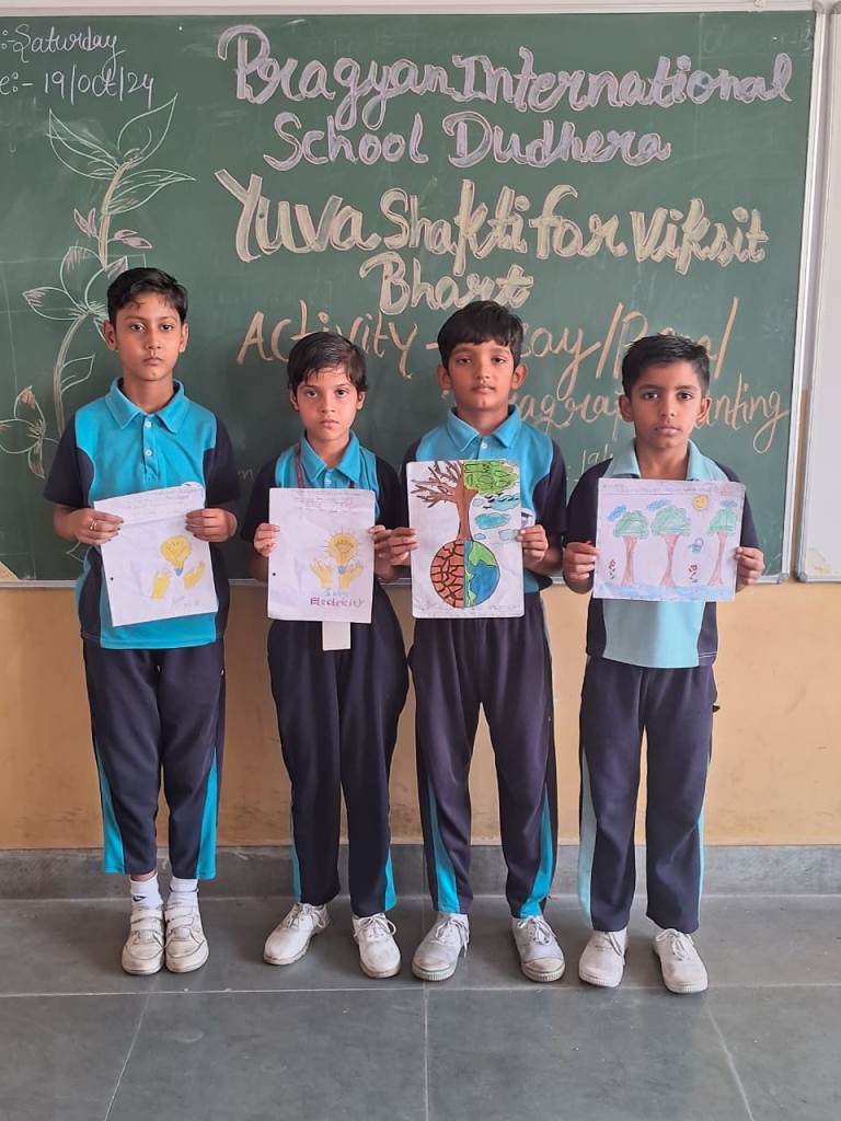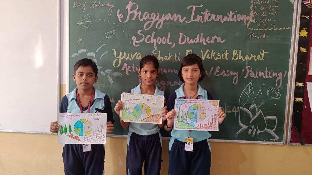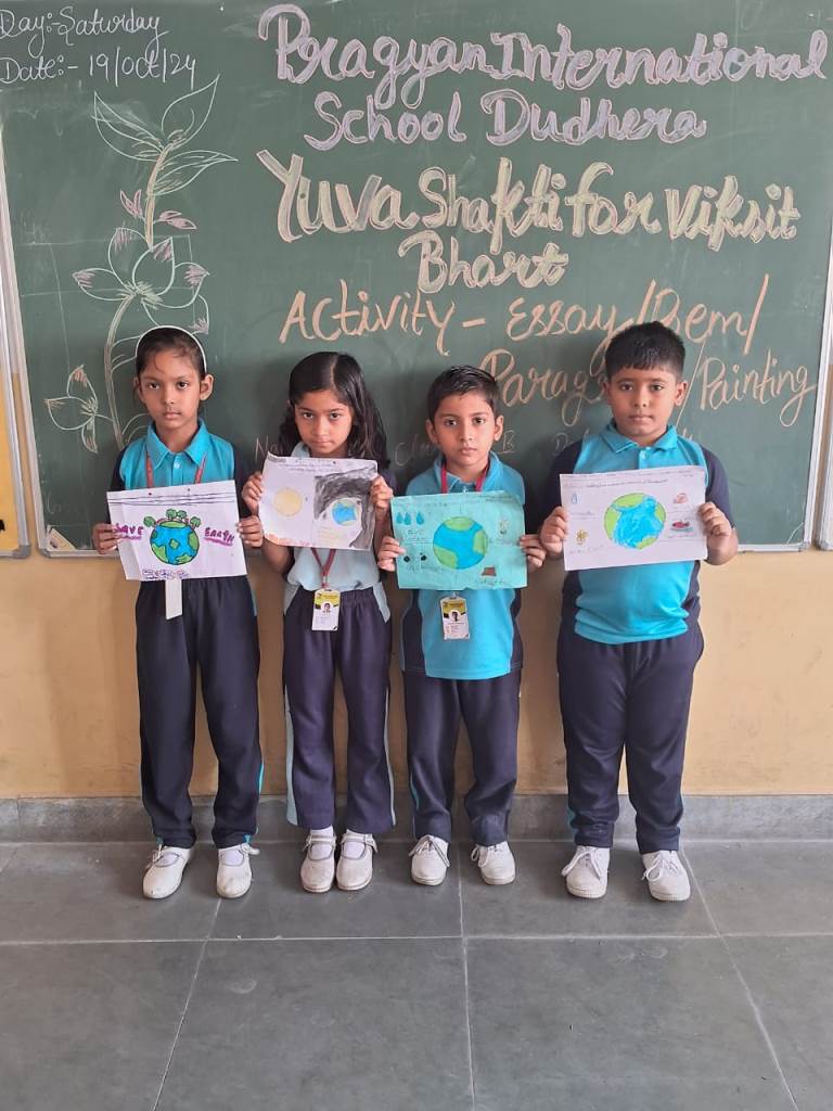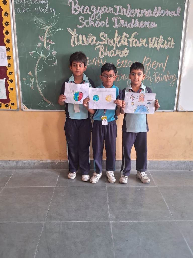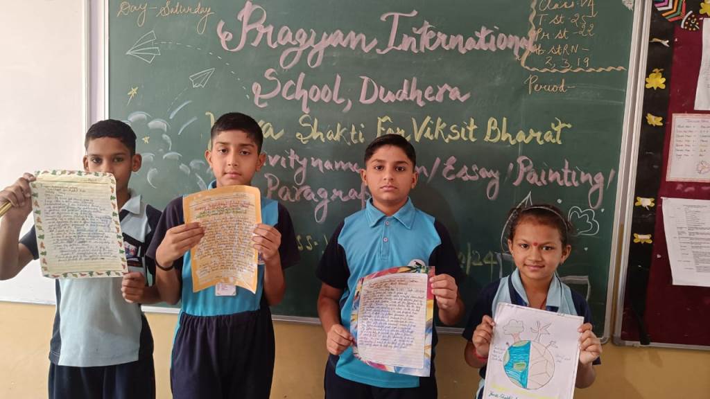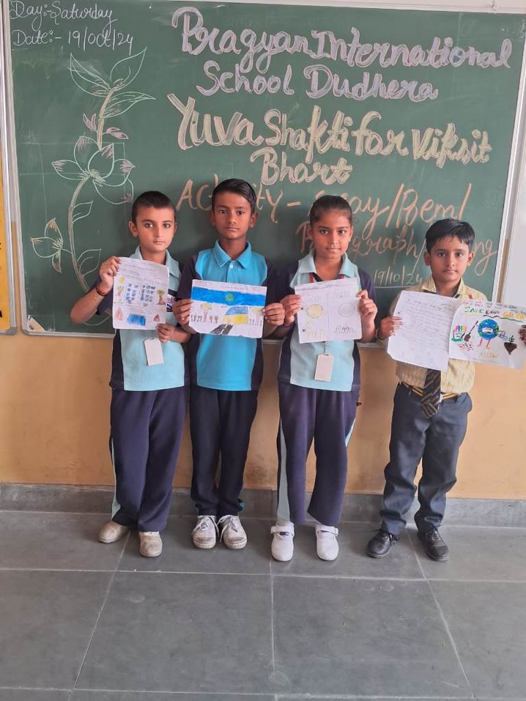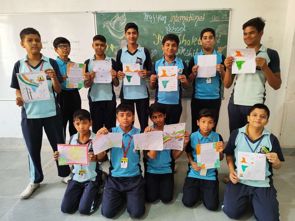 Description : 19th October 2024 Under the esteemed guidance of the CBSE, Pragyan International School proudly organized a creative competition centered on the inspiring theme of "Yuva Shakti for Viksit Bharat". Our talented students showcased their enthusiasm, creativity, and vision for a developed India through various forms of expression, including paintings, poems, paragraphs, and essays.The event aimed to encourage young minds to reflect on the power of youth in building a prosperous future for our country. The students poured their hearts into their work, each piece reflecting their hopes and ideas for a stronger and more developed Bharat. These young leaders are indeed the future torchbearers of our nation, and their participation reflects their passion for making India a global leader. Special thanks to our teachers and the CBSE for their guidance and support in making this event a success. Together, we are working toward nurturing the Yuva Shakti that will shape a Vikshit Bharat!