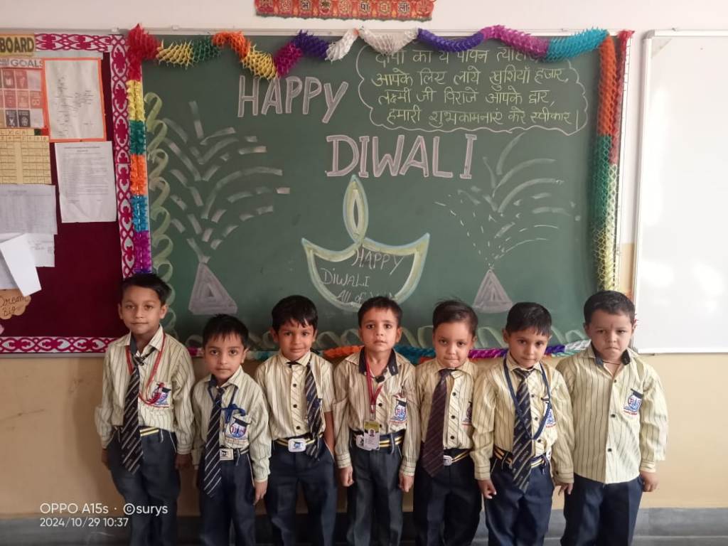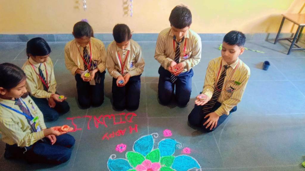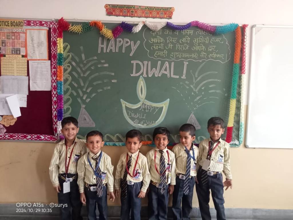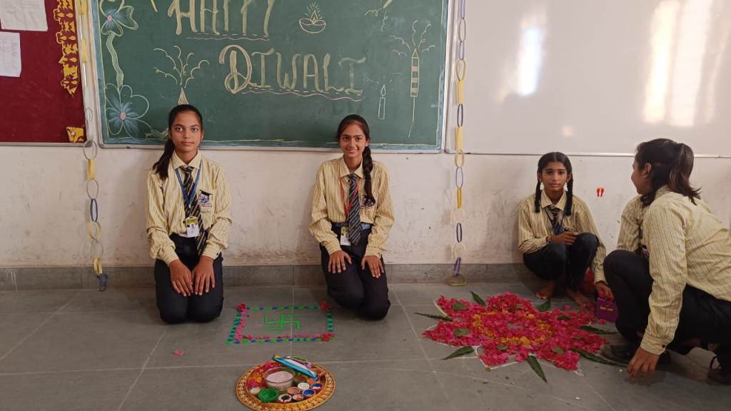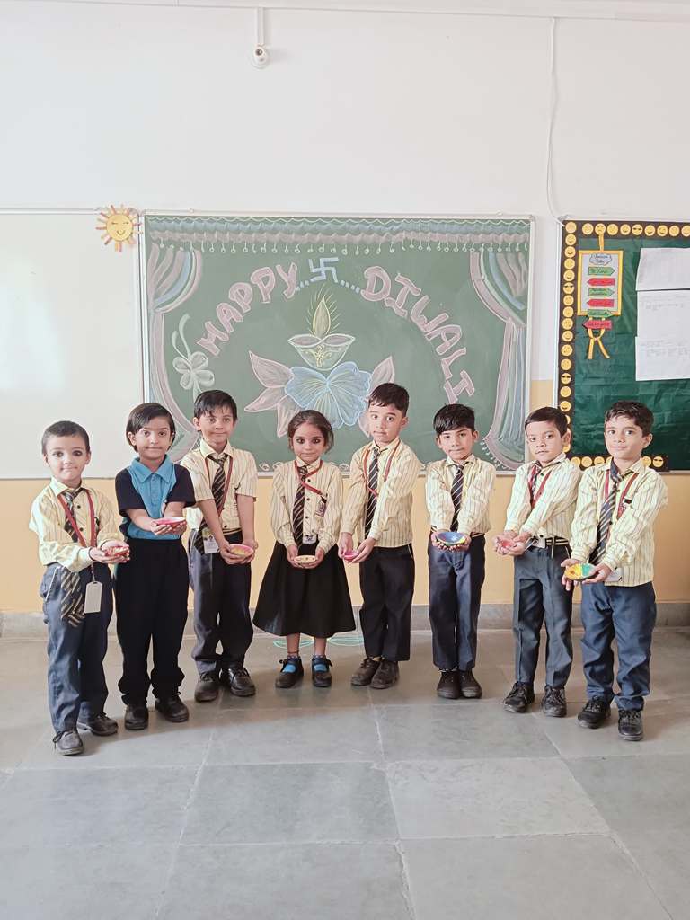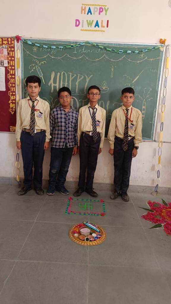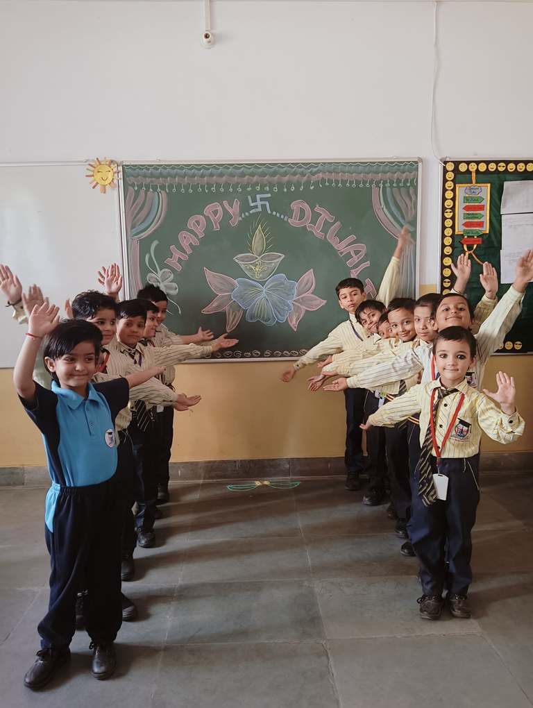 Description : Diwali, the Festival of Lights, brought an atmosphere of joy, unity, and cultural vibrance to Pragyan International School as students, teachers, and staff came together to celebrate. Held during the zero period, the entire campus transformed into a scene of colorful lights, beautiful decorations, and lively festivity.Students showcased their creativity by bringing decorative items such as frills, torans, diyas, and other traditional ornaments, all contributing to a vibrant and festive ambiance within each classroom. A beautiful array of colorful rangolis adorned the floors, designed meticulously by the students to capture the essence of Diwali and add to the charm of the decorated spaces.The festive spirit was elevated further as students shared sweets with one another, fostering a sense of warmth, friendship, and shared celebration. The whole school campus shone with Diwali's festive spirit, its decorations radiating the joy of the season.