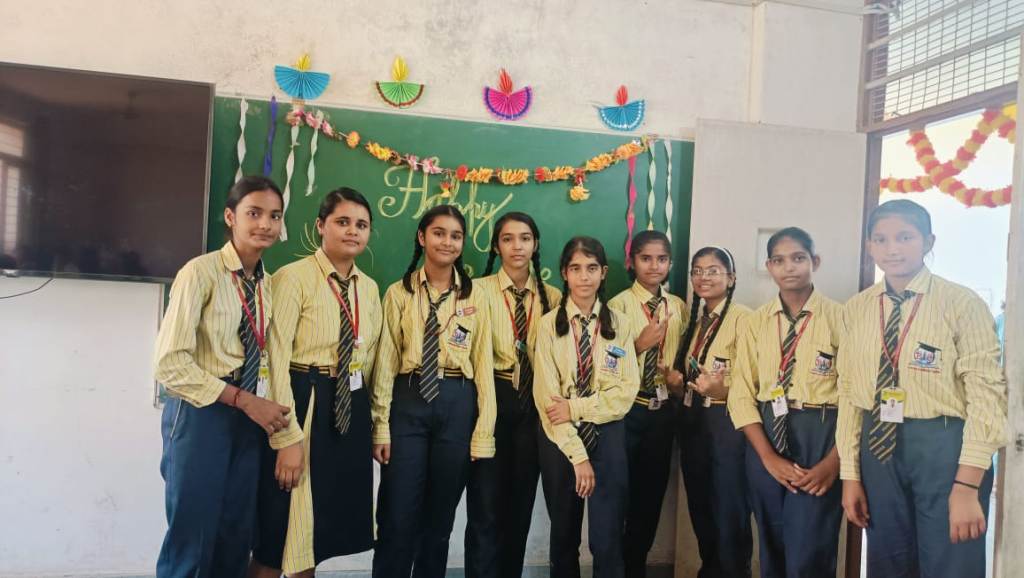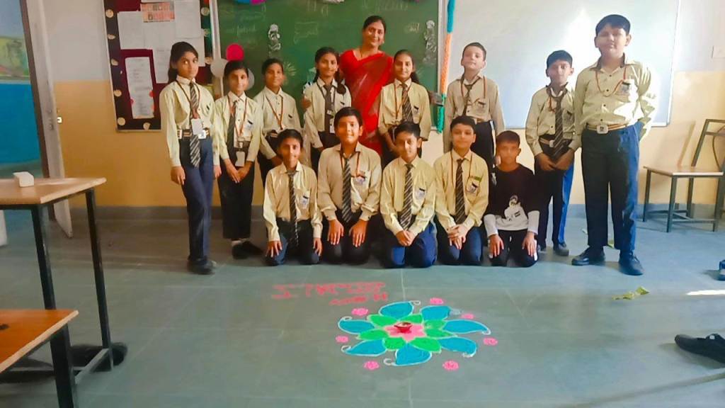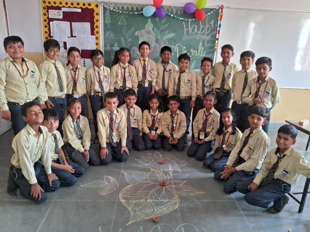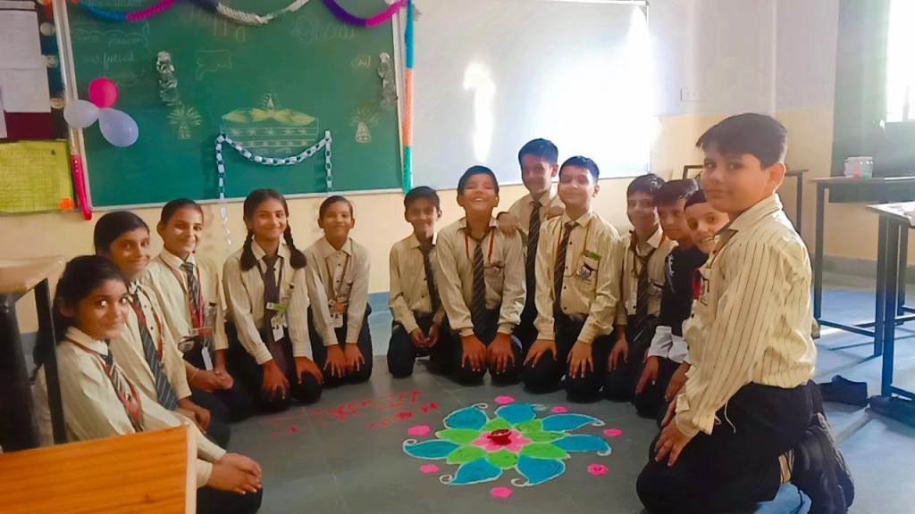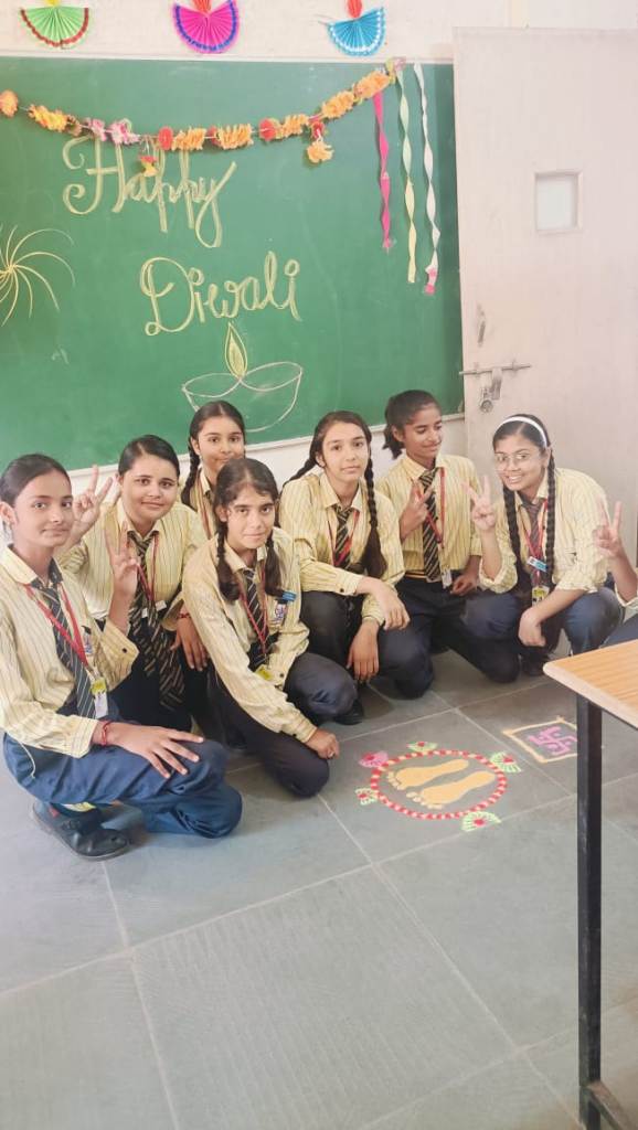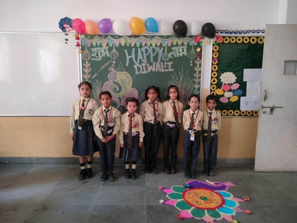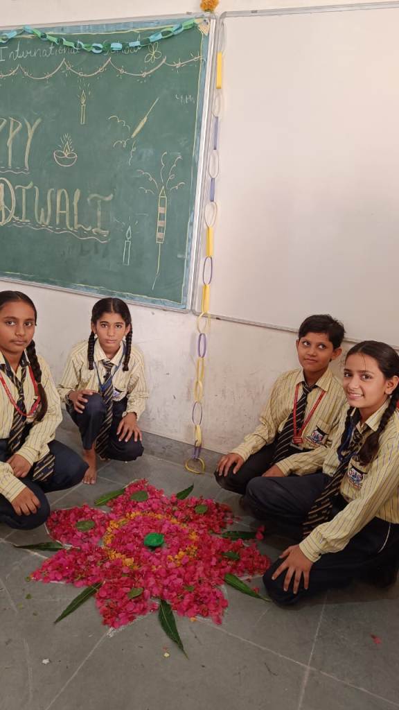 Description : Diwali, the Festival of Lights, brought an atmosphere of joy, unity, and cultural vibrance to Pragyan International School as students, teachers, and staff came together to celebrate. Held during the zero period, the entire campus transformed into a scene of colorful lights, beautiful decorations, and lively festivity.Students showcased their creativity by bringing decorative items such as frills, torans, diyas, and other traditional ornaments, all contributing to a vibrant and festive ambiance within each classroom. A beautiful array of colorful rangolis adorned the floors, designed meticulously by the students to capture the essence of Diwali and add to the charm of the decorated spaces.The festive spirit was elevated further as students shared sweets with one another, fostering a sense of warmth, friendship, and shared celebration. The whole school campus shone with Diwali's festive spirit, its decorations radiating the joy of the season.