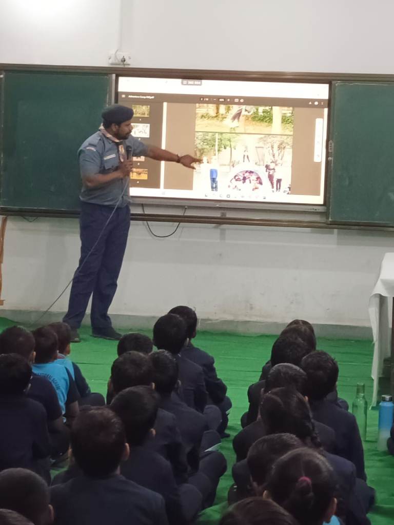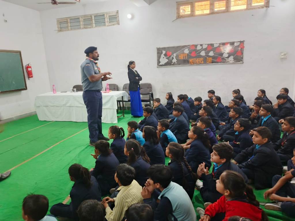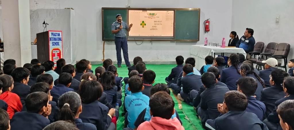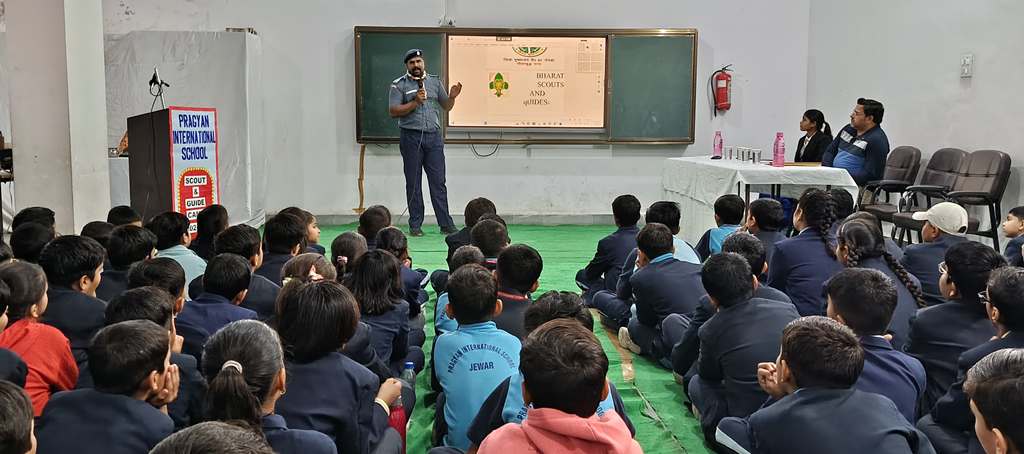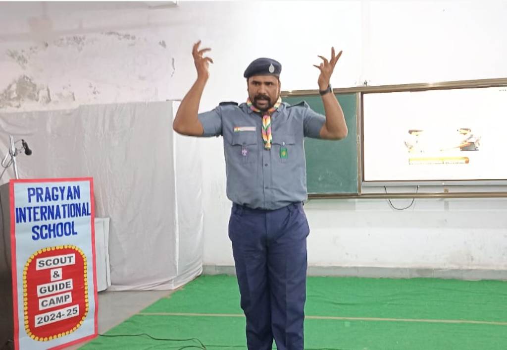 Description : Pragyan International School organized a vibrant Scout and Guide Camp on 4 December 2024 , starting right after the morning assembly. The event began with a warm welcome for the Scout and Guide team by the school management and staff, followed by the team introducing themselves and sharing their inspiring journey. A token of love was presented as a gesture of appreciation. Students enthusiastically learned practical skills like tying various knots and teamwork strategies, making the day both educational and enjoyable. Each participant received a certificate, a scarf, a cap and heartfelt encouragement, making the camp a truly memorable experience that fostered discipline, teamwork, and lifelong learning.