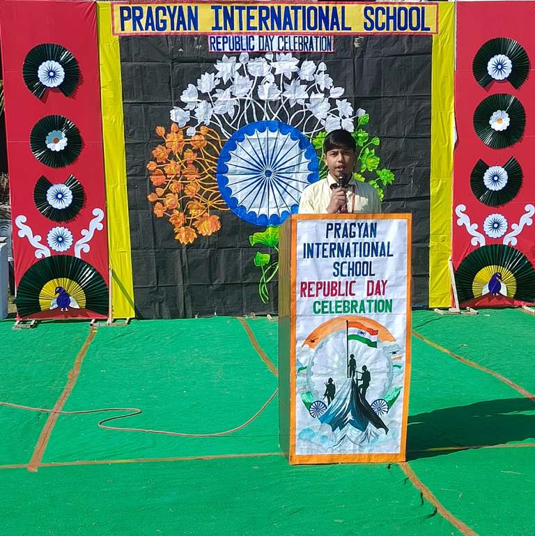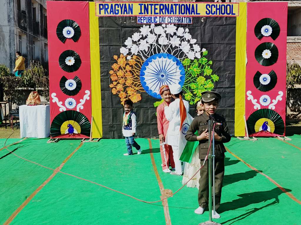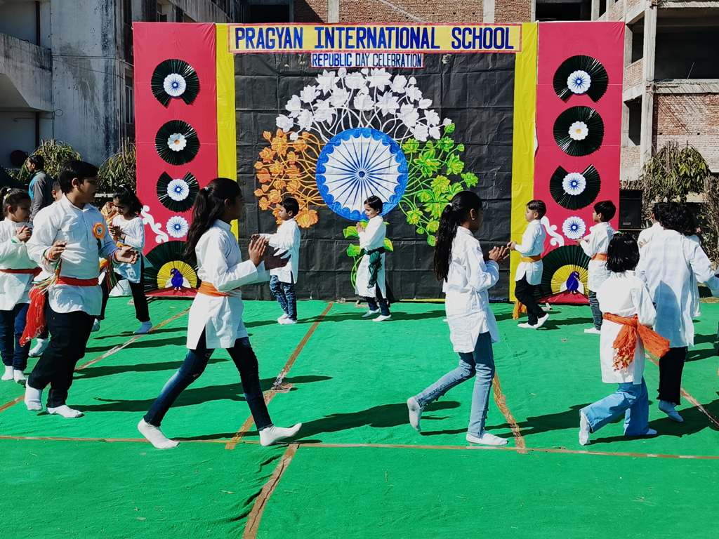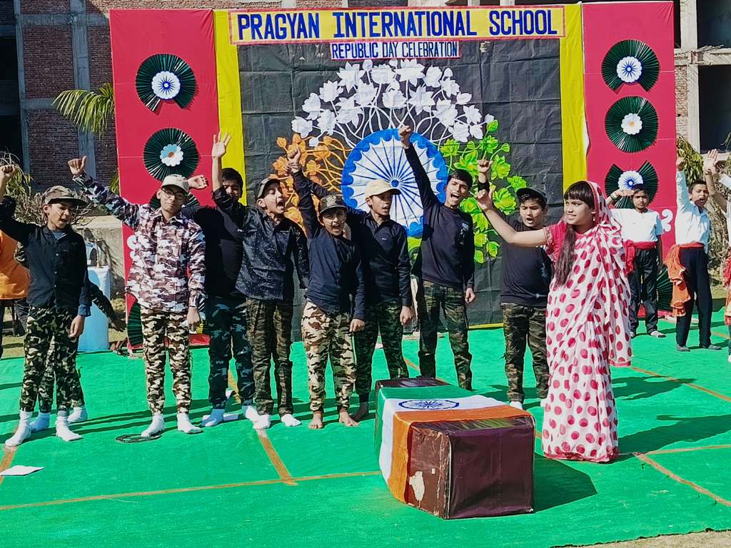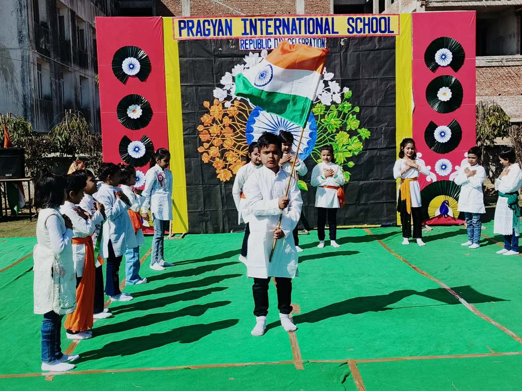 Description : On the eve of Republic Day, 24th January 2025, Pragyan International School, Dudhera, organized a celebration with great enthusiasm on the school premises. The event started with the Respected Manager Sir , Principal ma'am and Incharge ma’am of the school, unfurling the national flag and hoisting it. After the flag hoisting, Respected Principal ma'am delivered a powerful speech on the significance of Republic day.The celebration in all the classes from Nursery to Class IX.The students put up a spectacular show with patriotic songs and dances .The primary students performed the life of a soldier through dramatization and songs. The students performed skit showcasing the struggle and sacrifice of freedom fighter, which was greatly appreciated.The event concluded with the national anthem and a vote of thanks by Principal ma'am.