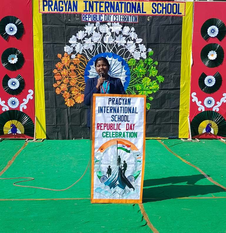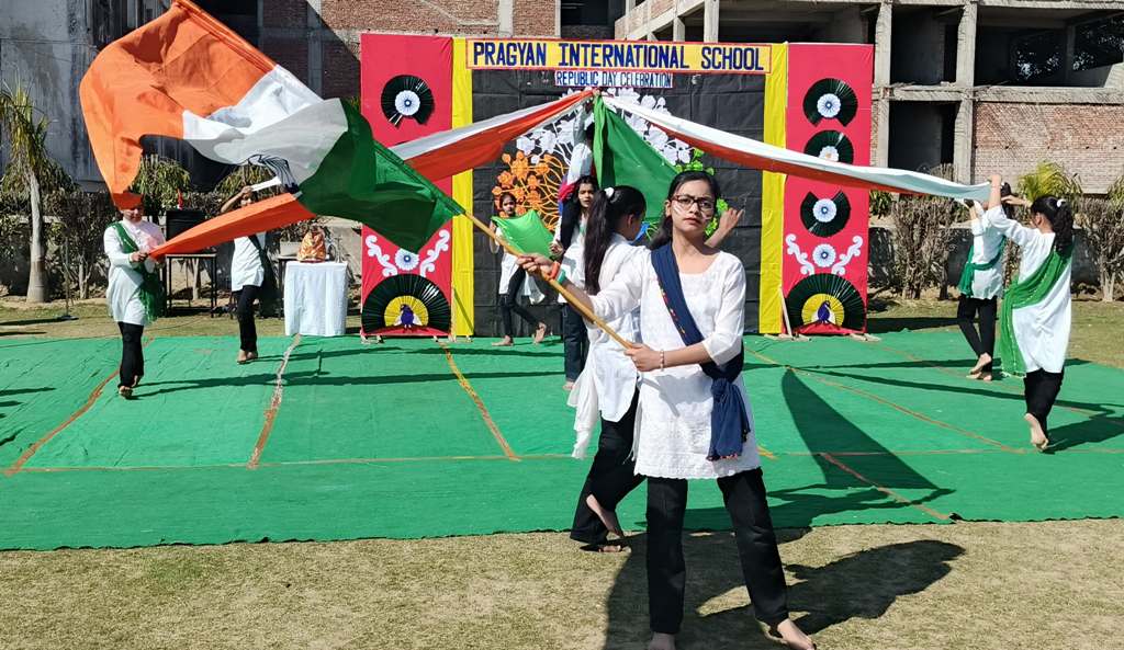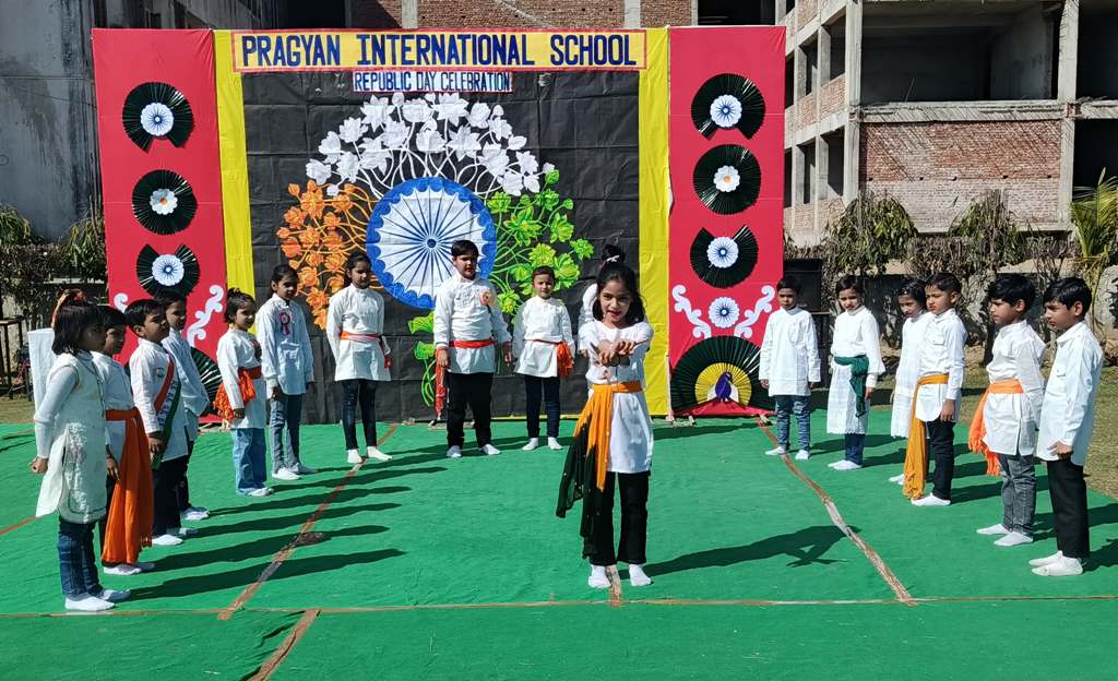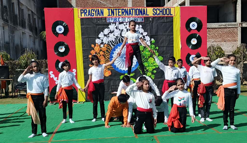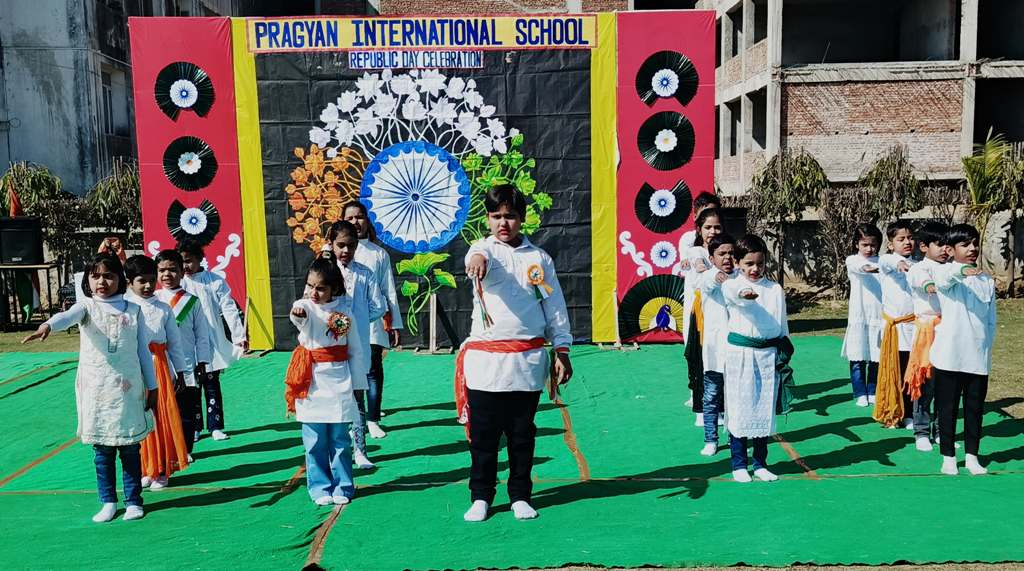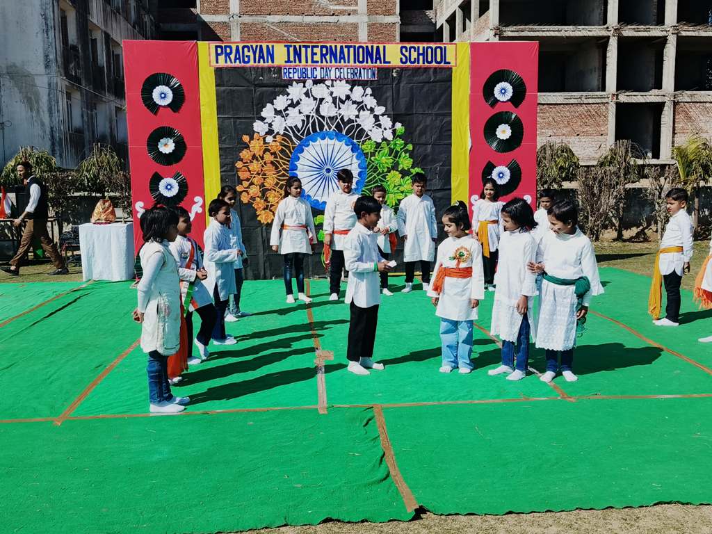 Description : On the eve of Republic Day, 24th January 2025, Pragyan International School, Dudhera, organized a celebration with great enthusiasm on the school premises. The event started with the Respected Manager Sir , Principal ma'am and Incharge ma’am of the school, unfurling the national flag and hoisting it. After the flag hoisting, Respected Principal ma'am delivered a powerful speech on the significance of Republic day.The celebration in all the classes from Nursery to Class IX.The students put up a spectacular show with patriotic songs and dances .The primary students performed the life of a soldier through dramatization and songs. The students performed skit showcasing the struggle and sacrifice of freedom fighter, which was greatly appreciated.The event concluded with the national anthem and a vote of thanks by Principal ma'am.