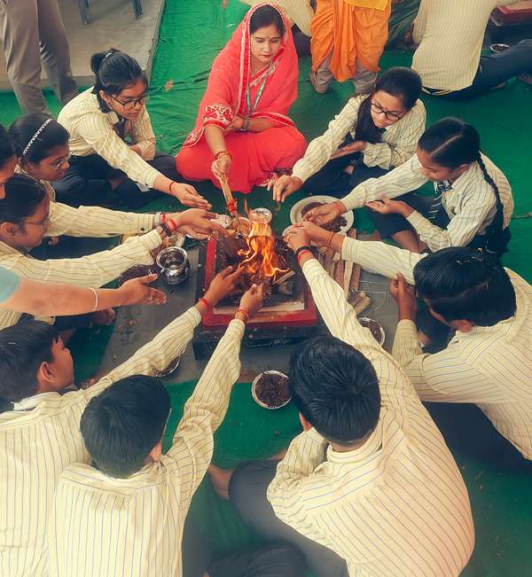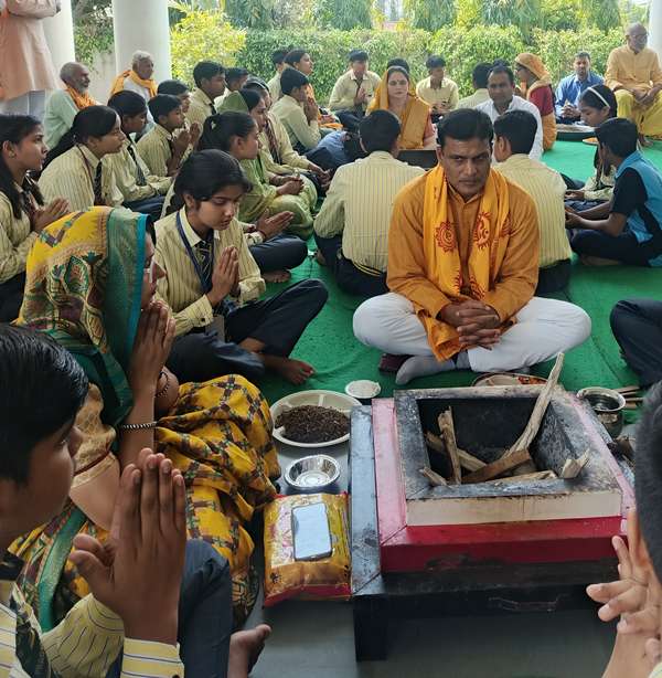 Description : March 27,2025 – Pragyan International School commenced the new academic session 2025-26 with a divine and traditional Hawan, conducted in collaboration with the Gayatri Parivar. The school manager, Dr. Harish Kumar Sharma, Principal Dr. Deepti Sharma, Treasurer Mr. Amol Kumar Sharma, along with in-charge Ms. Priyanka Sharma,Co ordinators, teachers and students actively participated. The sacred fire, resonating with Vedic chants, filled the campus with spiritual energy and positivity. Prayers were offered for academic success, students’ bright futures, and the school’s continued progress. Dr. Harish Kumar Sharma highlighted the role of hard work and discipline in achieving excellence, urging students to go beyond textbooks. Principal Dr. Deepti Sharma extended best wishes, inspiring students to uphold strong values and self-reliance. The ceremony concluded with prasad distribution, infusing enthusiasm and motivation among students.