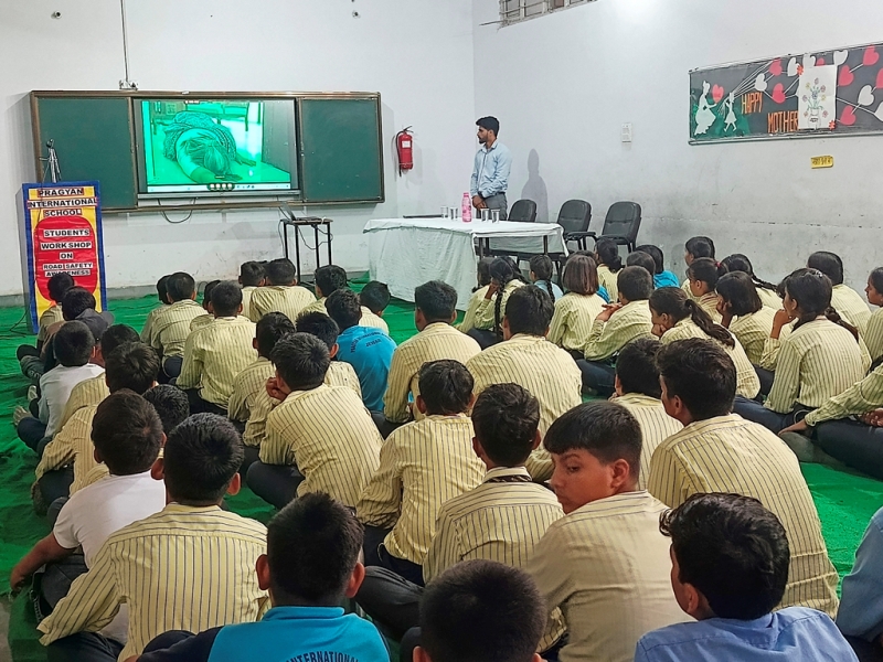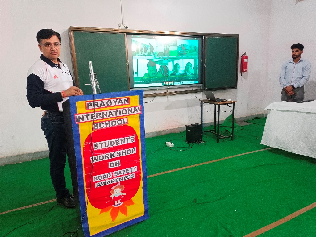 Description : 29th May 2025, Jewar – Pragyan International School, in collaboration with Honda Motorcycle & Scooter India Pvt. Ltd., organized a Road Safety Workshop to educate students on safe travel practices. The event began with a traditional lamp lighting. Honda’s team conducted live demos on helmet use, zebra crossing etiquette, and key traffic rules. An interactive quiz kept the students engaged and enthusiastic. School Manager Dr. Harish Kumar Sharma thanked Honda for the initiative and emphasized its importance in shaping responsible future citizens.
