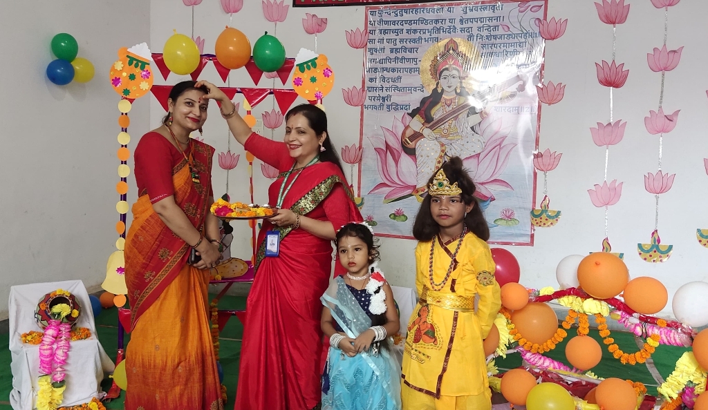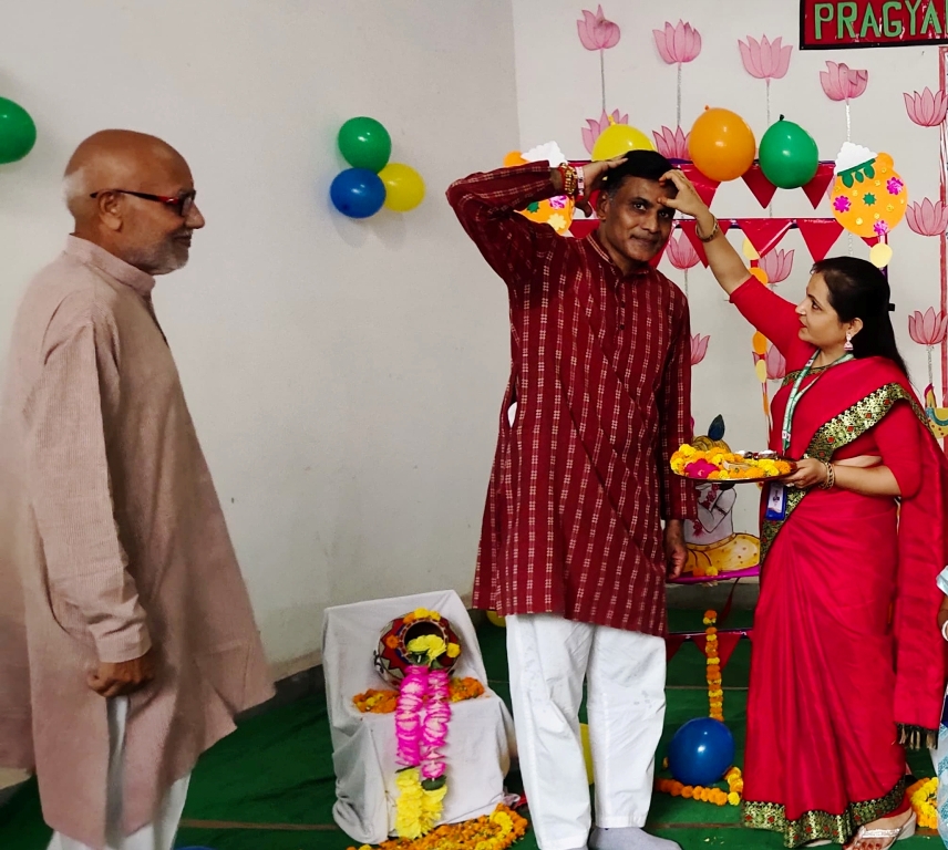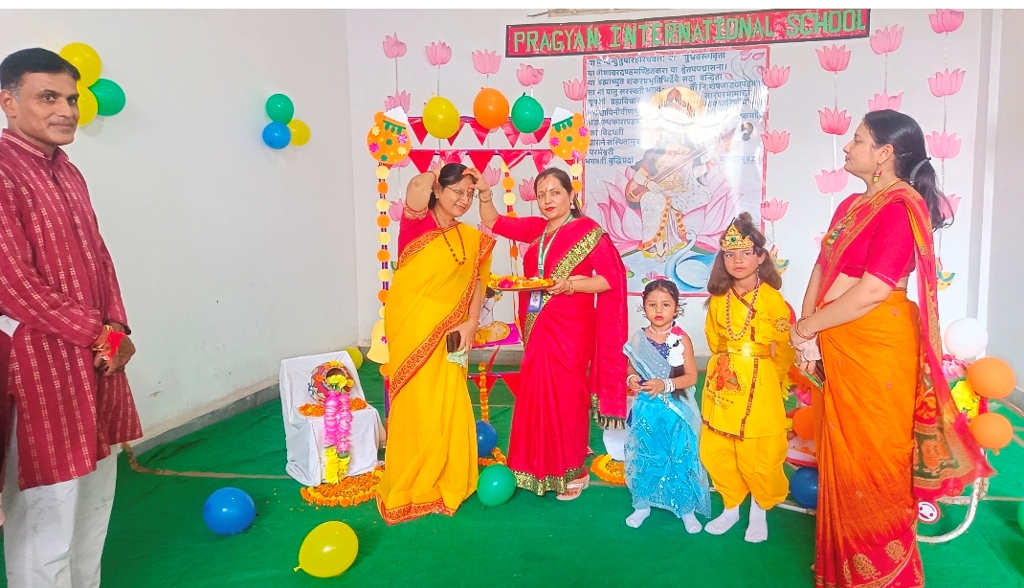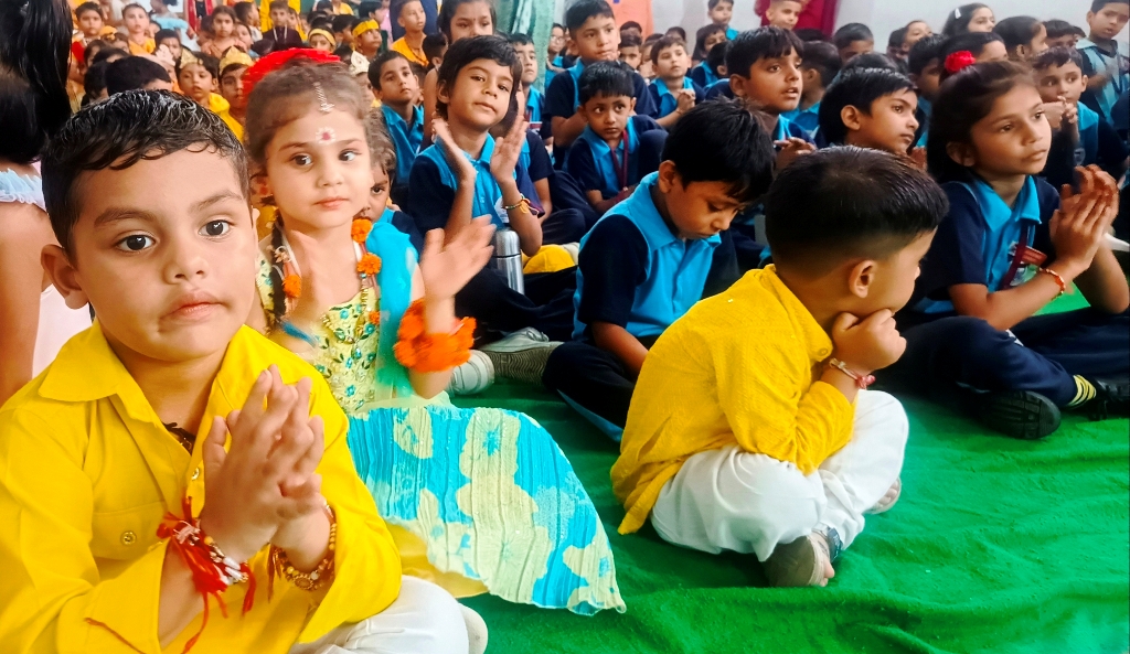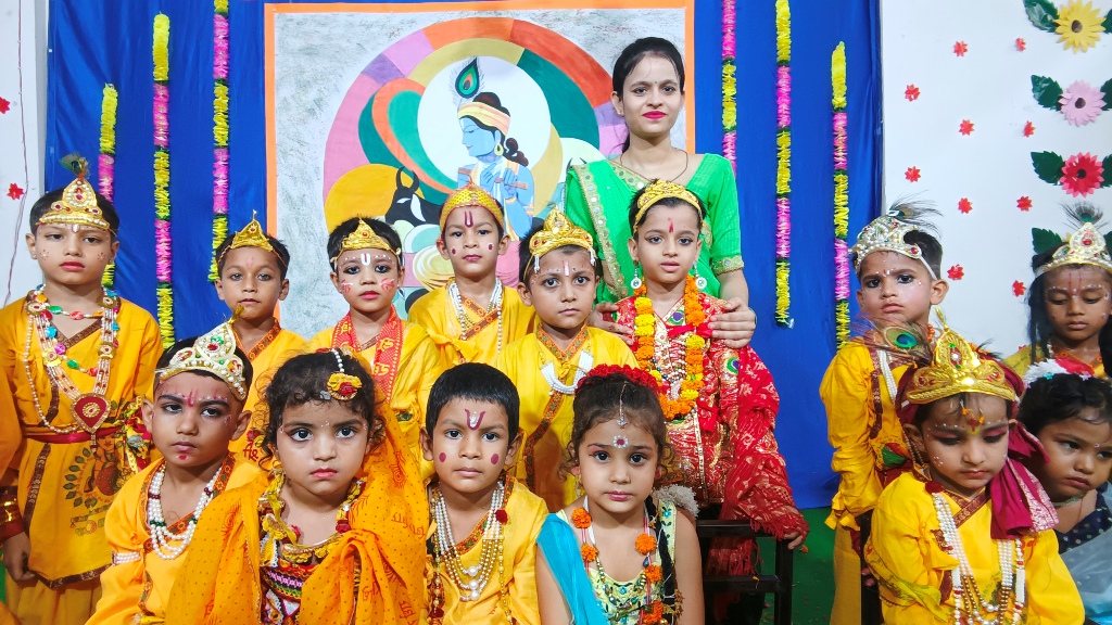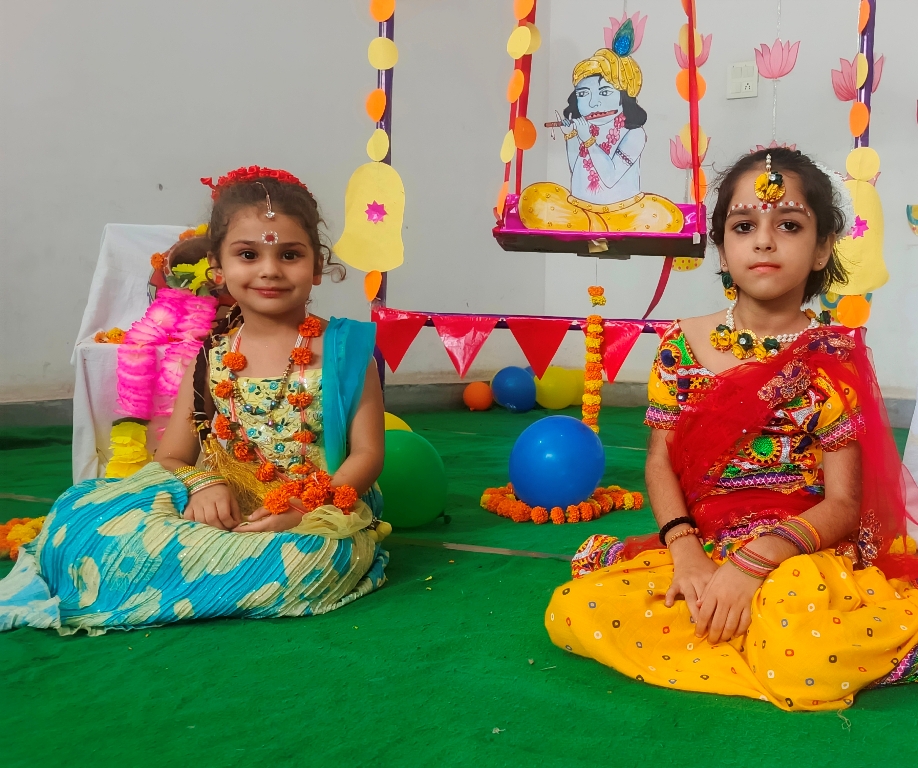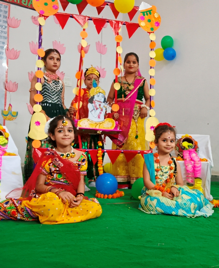Description : The Pre-Primary wing of Pragyan International School joyfully celebrated Janmashtami on 16th August 2025 in the school hall. The event began with devotional songs, prayers, and an explanation of Janmashtami’s significance. Students performed a skit on Lord Krishna’s life, including the “Makhan Chori” episode, dressed as Krishna and Radha. Energetic group dances to Krishna bhajans and a lively “Matki Phod” event added to the festivities. The celebration was filled with devotion, fun, and cultural learning, leaving fond memories for all.