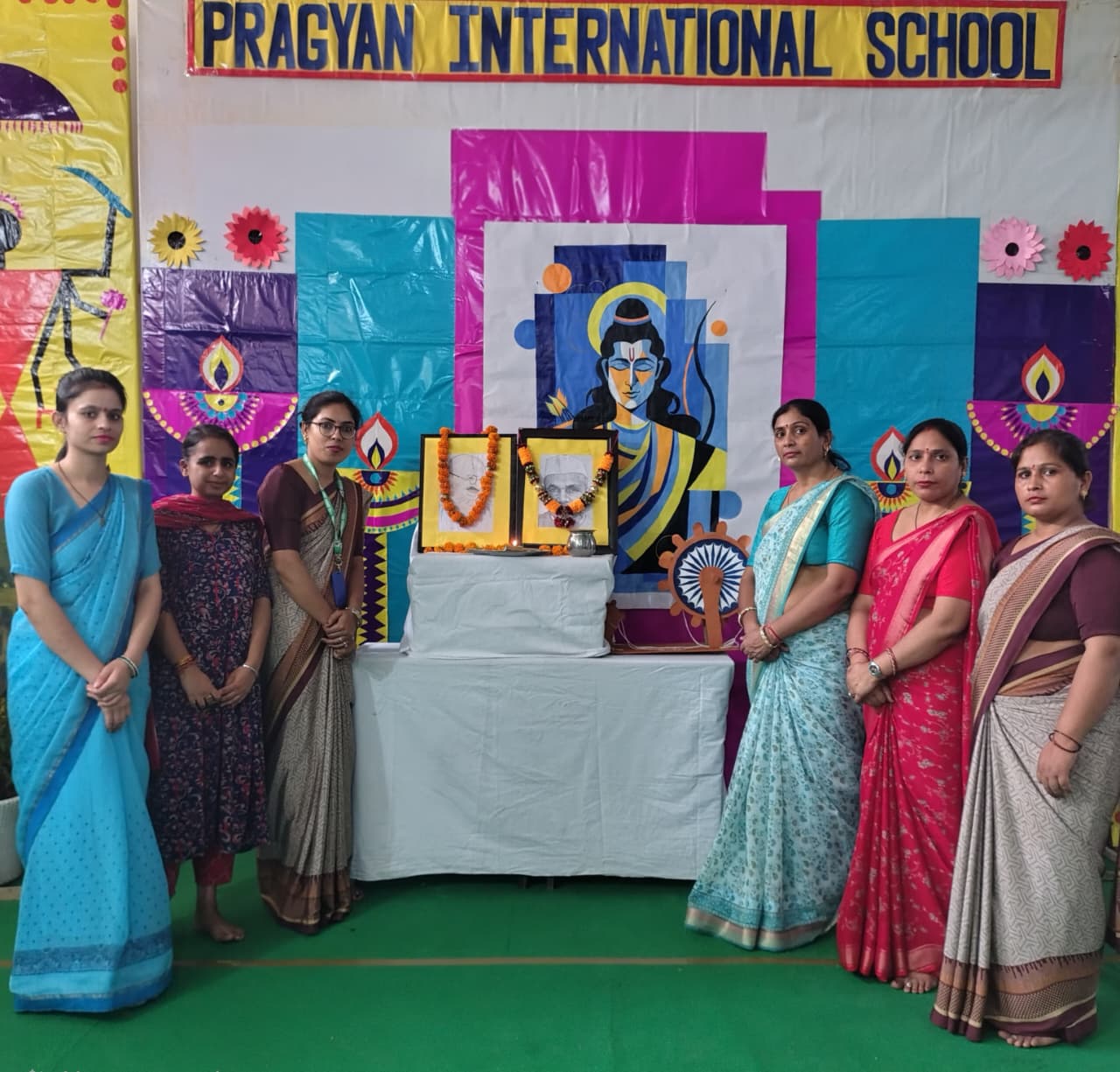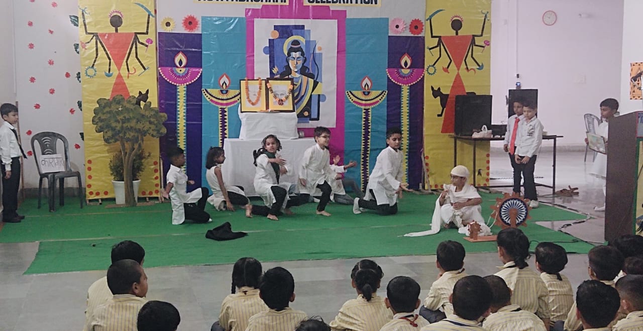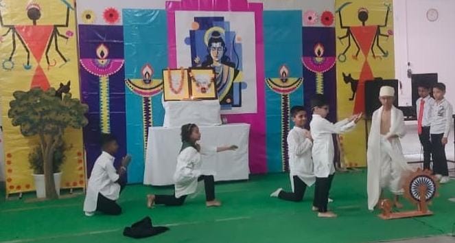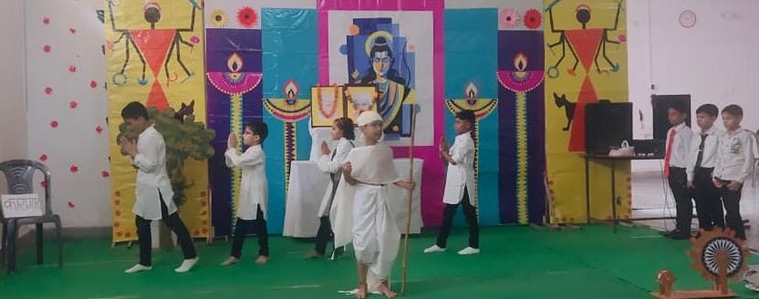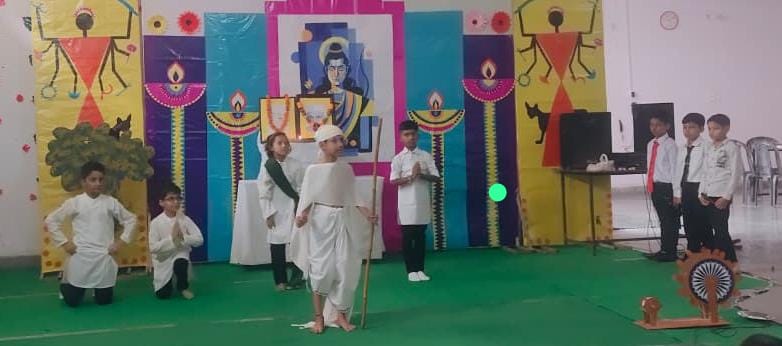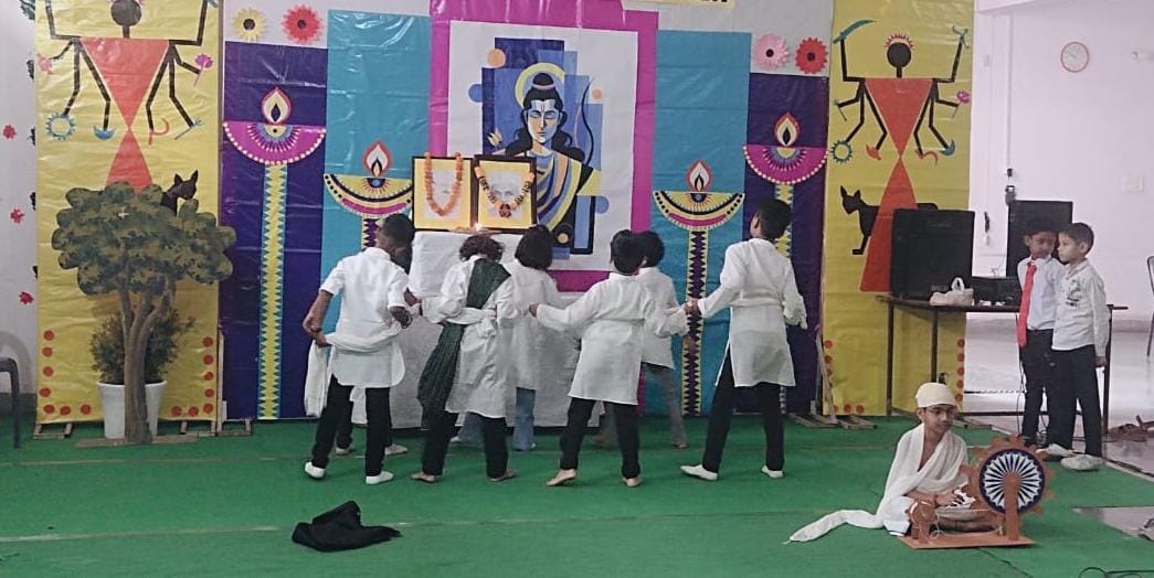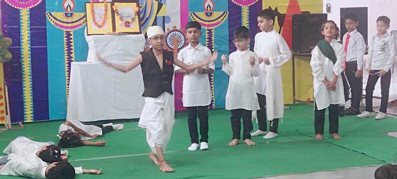 Description : Pragyan International School celebrated Gandhi Jayanti with great reverence and enthusiasm. Students from Nursery to Class 8 beautifully depicted the life and values of the Father of the Nation through thoughtful performances — from Bapu’s childhood to the great Dandi March and his struggle for India’s freedom. The audience was deeply inspired by the simplicity and dedication of our young learners. The program began with the warm welcome of our esteemed guests, Respected Manager Sir Dr. Harish Kumar Sharma and Dr. Deepti Sharma, followed by a soulful rendition of Raghupati Raghav Raja Ram. A skit on truth and non-violence and a patriotic dance by senior students added grace and energy to the celebration. The event concluded with a heartfelt vote of thanks and the singing of the National Anthem, spreading Gandhiji’s timeless message of peace, unity, and non-violence.