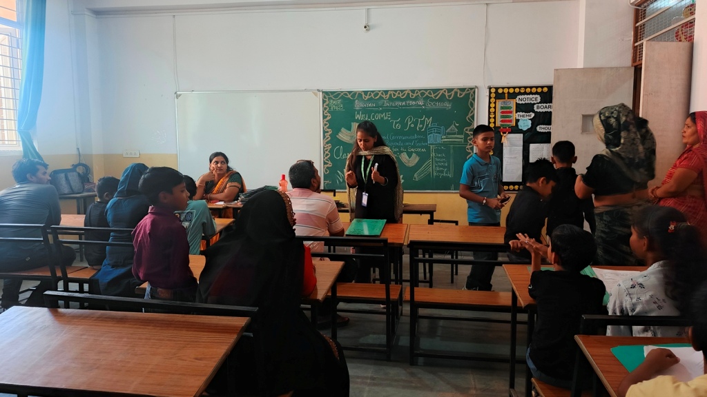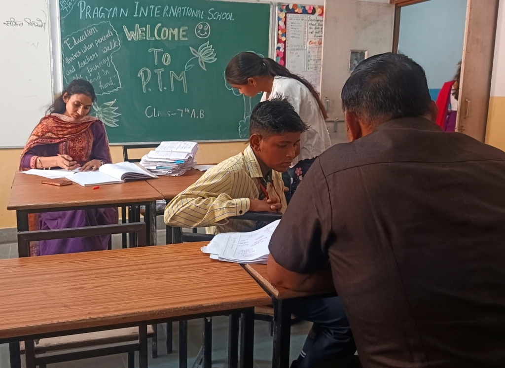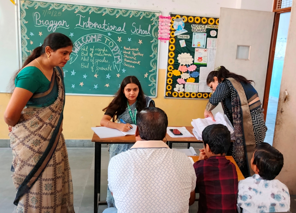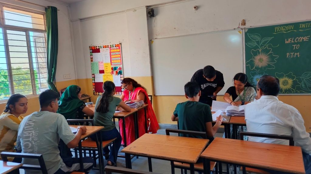 Description : Pragyan International School conducted a Parents–Teacher Meeting for students from Nursery to Class 8 with great enthusiasm and cooperation from parents and teachers alike. The session was organized after the Half-Yearly Examinations to discuss students’ academic progress and overall performance. Parents actively interacted with teachers, reviewed their ward’s Half-Yearly results, and shared valuable suggestions. The meeting provided a meaningful platform to appreciate students’ achievements and plan future goals for their growth. We sincerely thank all parents for their active participation and continued support. Let’s keep working hand in hand to nurture confident, responsible, and compassionate learners.