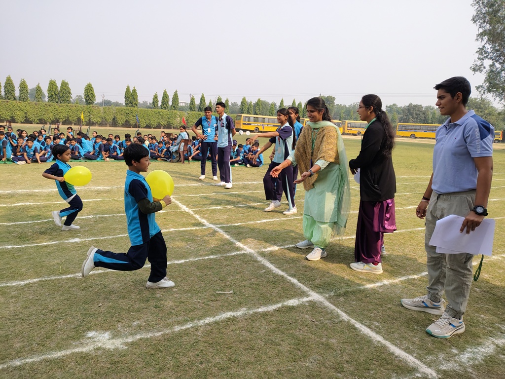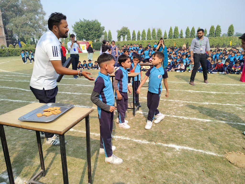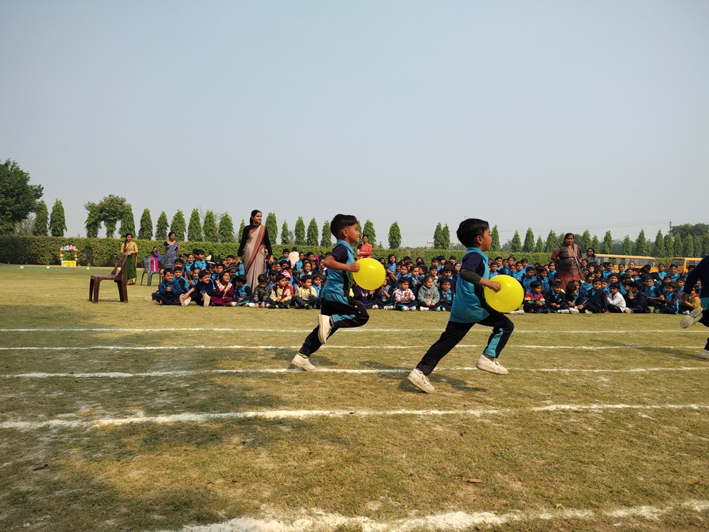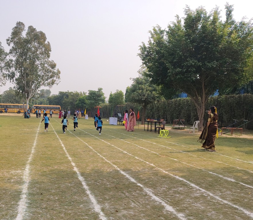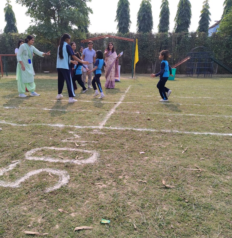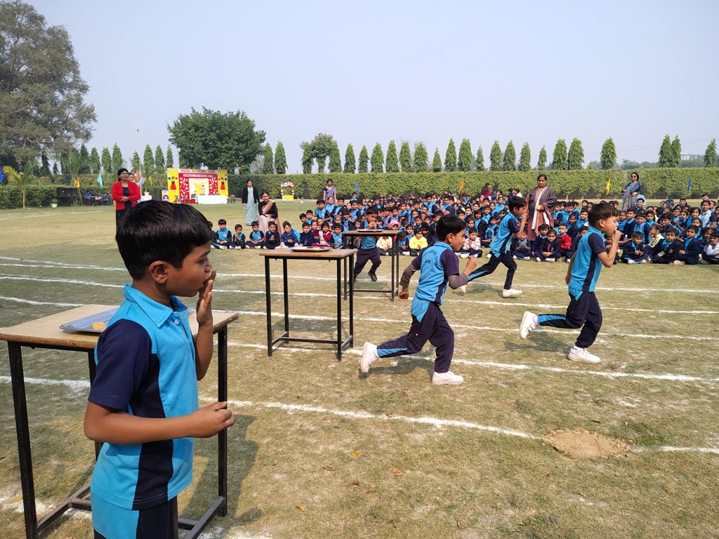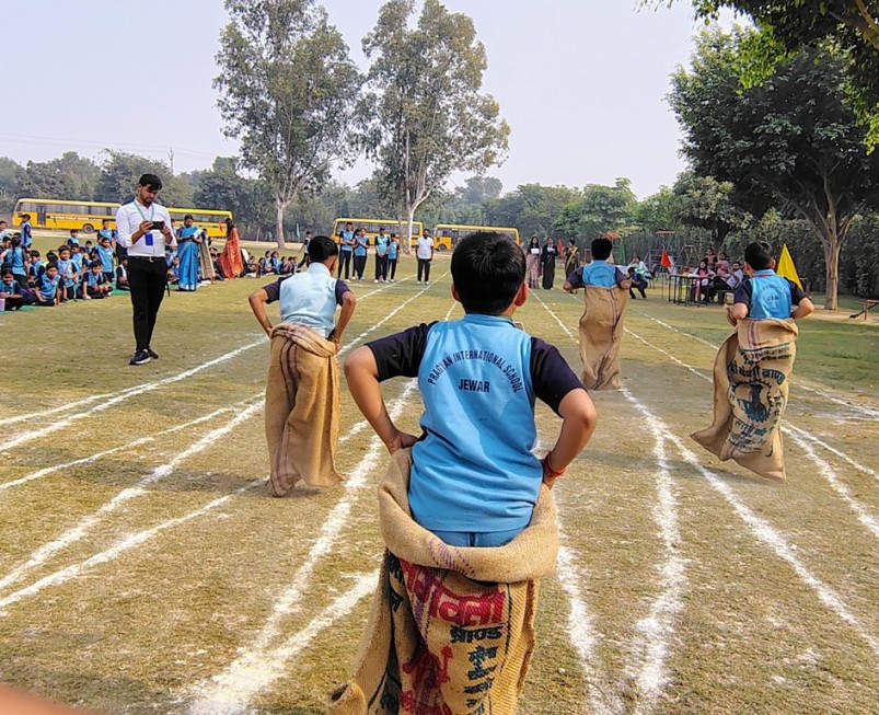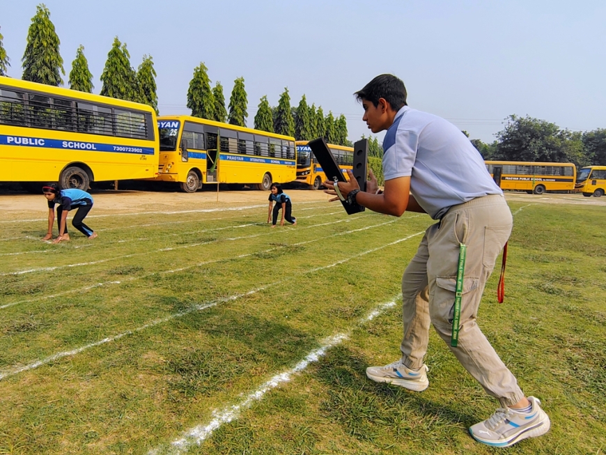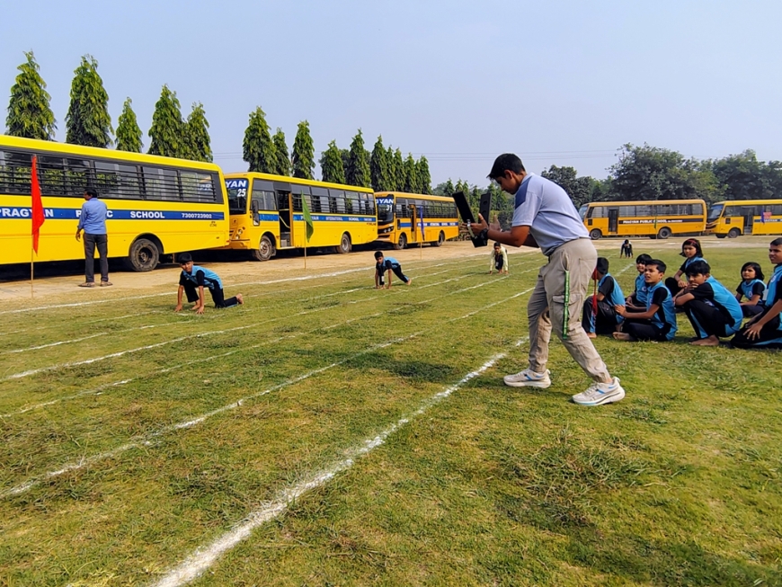Description : The playground of Pragyan International School came alive with boundless excitement as the Annual Sports Fiesta 2025–26 commenced with a grand torch-lighting ceremony, graced by School Manager Dr. Harish Kumar Sharma, Principal Dr. Deepti Sharma, School In-Charge Dr. Priyanka Sharma, and other esteemed dignitaries — invoking the spirit of success, strength, and sportsmanship. The ceremony was followed by a spectacular March Past, showcasing the students’ unity, discipline, and athletic pride. The Fiesta was officially declared open when Principal Dr. Deepti Sharma waved the green flag, signaling the start of the much-awaited events. Motivational words from the dignitaries uplifted the young athletes, inspiring them to play with determination and fair spirit. Under the guidance of Mr. Vishal (P.E.T), a series of thrilling events 30m, 50m, 100m, 200m, Hurdle, Sack, Balloon, Biscuit, Banana, Lemon, 3-Leg Race, and Tug of War filled the grounds with cheers, teamwork, and unforgettable enthusiasm!