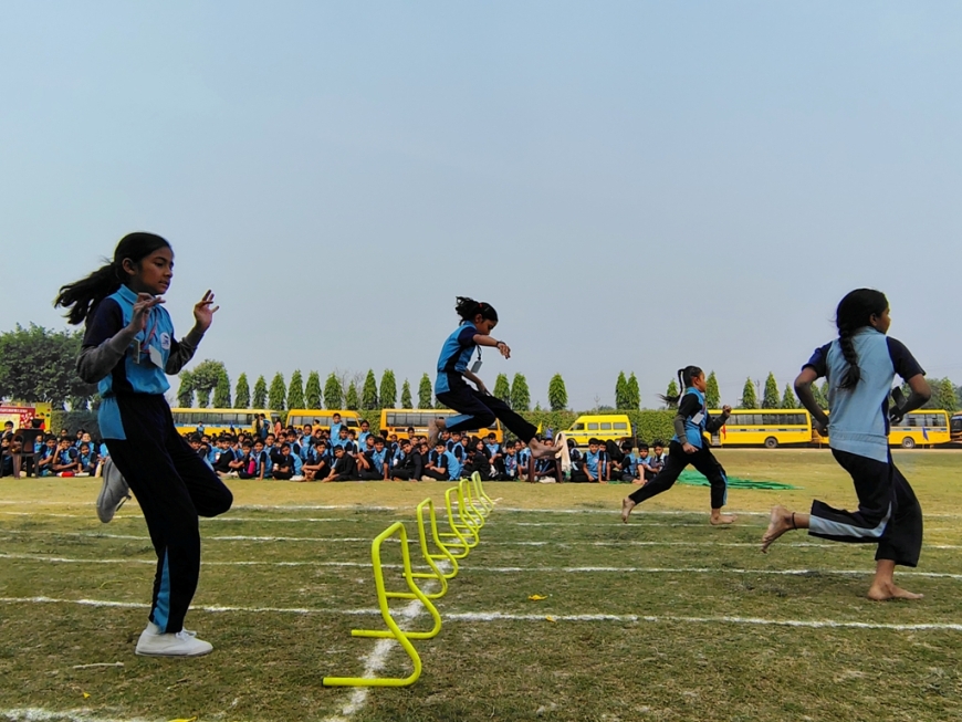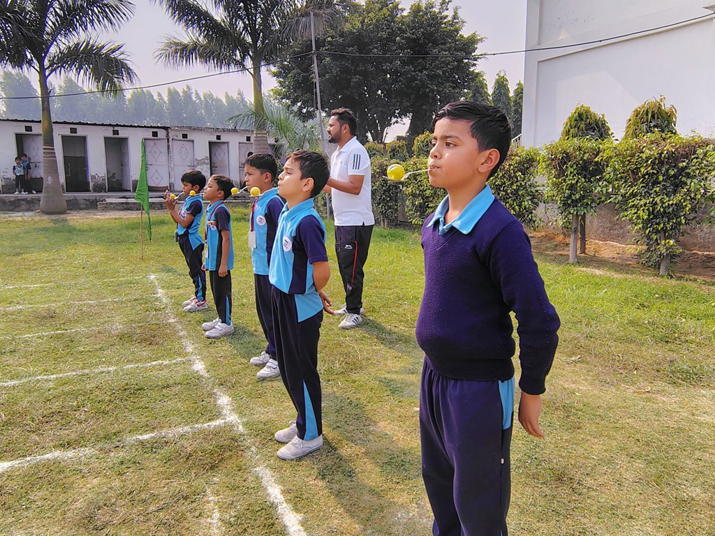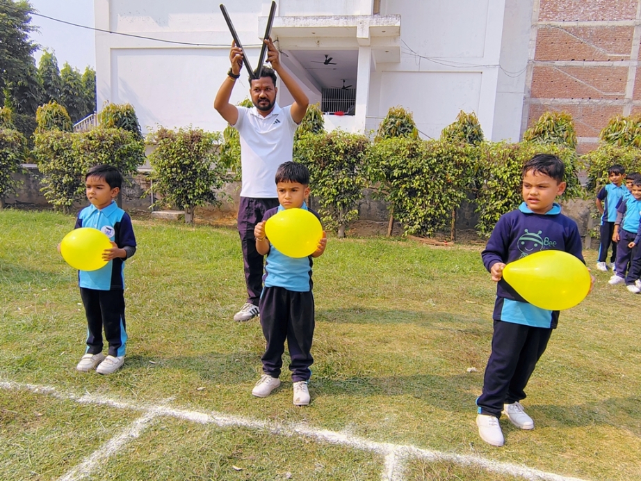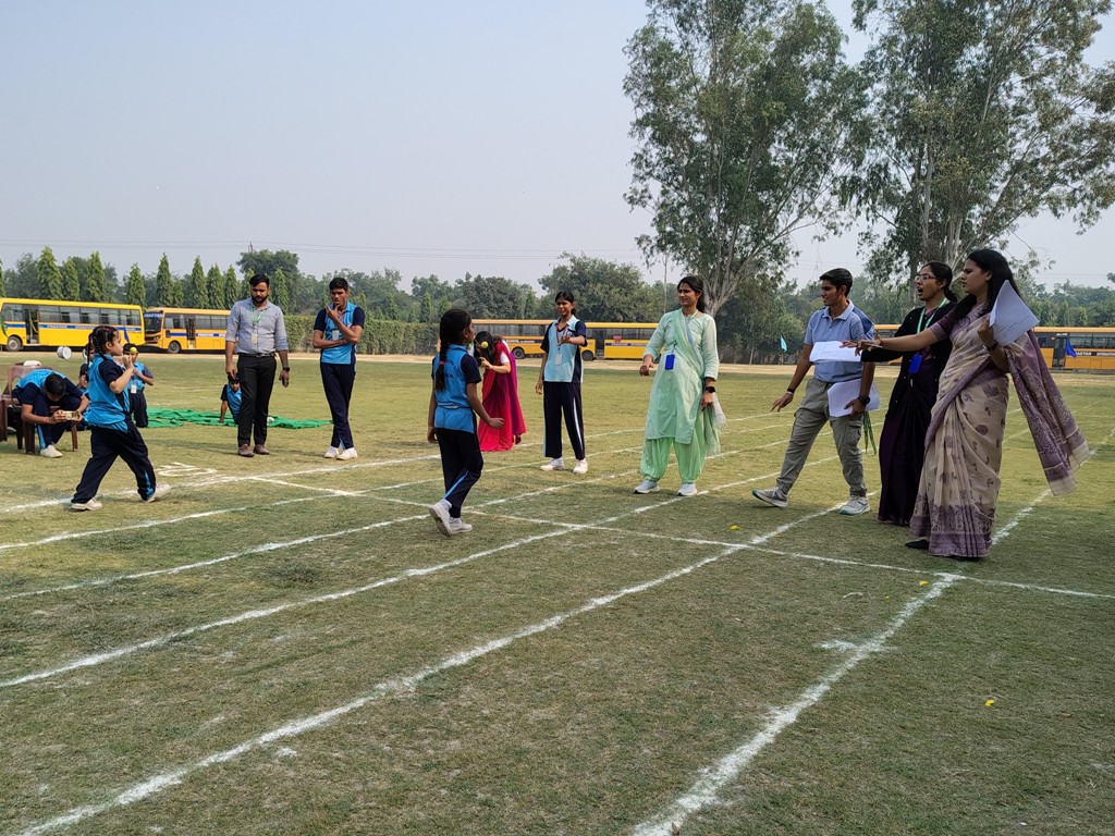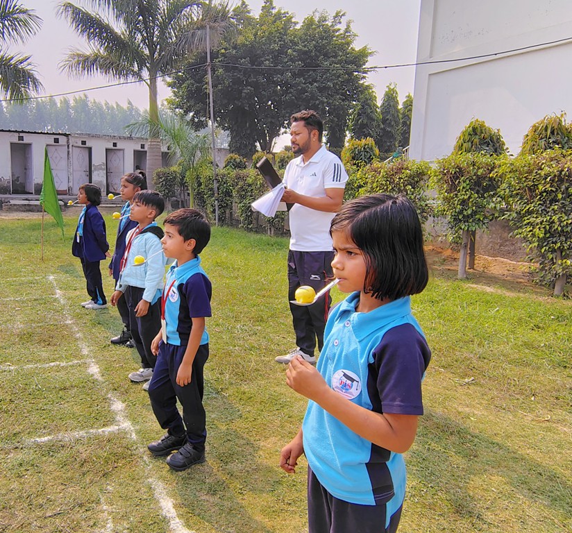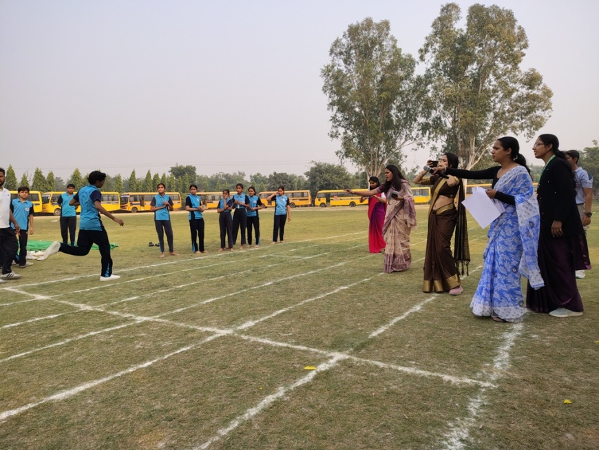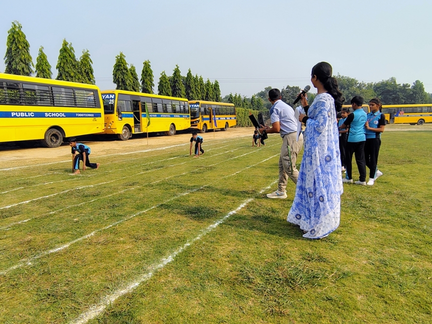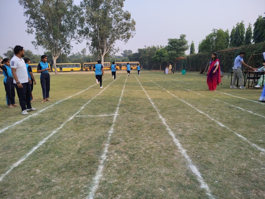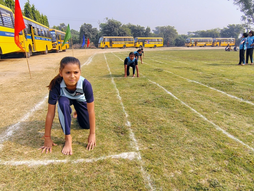Description : The playground of Pragyan International School came alive with boundless excitement as the Annual Sports Fiesta 2025–26 commenced with a grand torch-lighting ceremony, graced by School Manager Dr. Harish Kumar Sharma, Principal Dr. Deepti Sharma, School In-Charge Dr. Priyanka Sharma, and other esteemed dignitaries — invoking the spirit of success, strength, and sportsmanship. The ceremony was followed by a spectacular March Past, showcasing the students’ unity, discipline, and athletic pride. The Fiesta was officially declared open when Principal Dr. Deepti Sharma waved the green flag, signaling the start of the much-awaited events. Motivational words from the dignitaries uplifted the young athletes, inspiring them to play with determination and fair spirit. Under the guidance of Mr. Vishal (P.E.T), a series of thrilling events 30m, 50m, 100m, 200m, Hurdle, Sack, Balloon, Biscuit, Banana, Lemon, 3-Leg Race, and Tug of War filled the grounds with cheers, teamwork, and unforgettable enthusiasm!