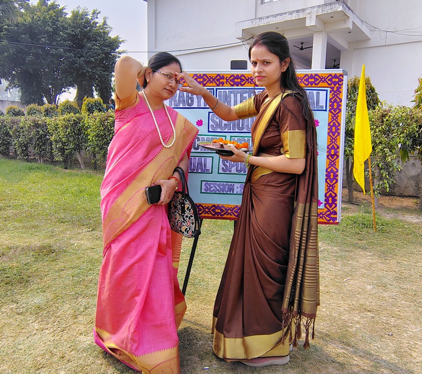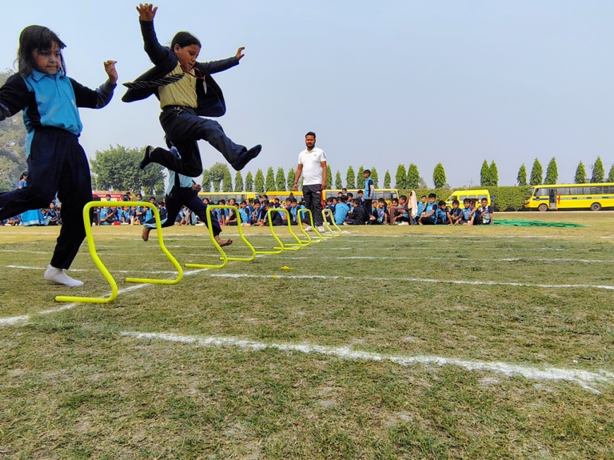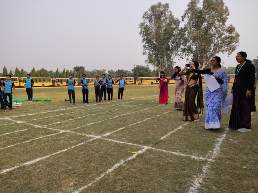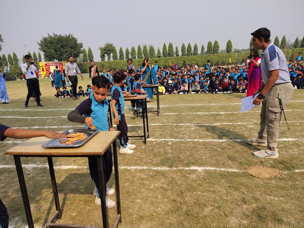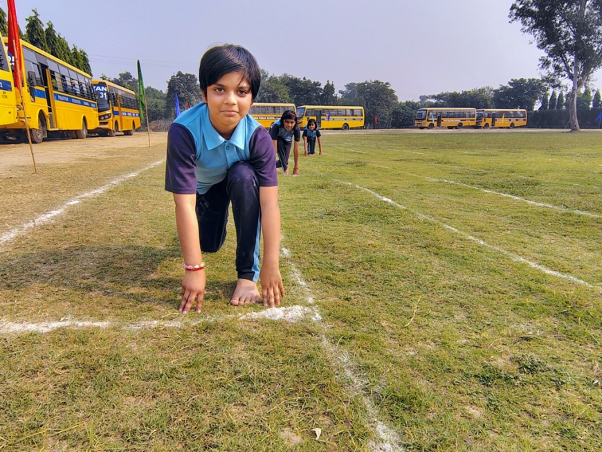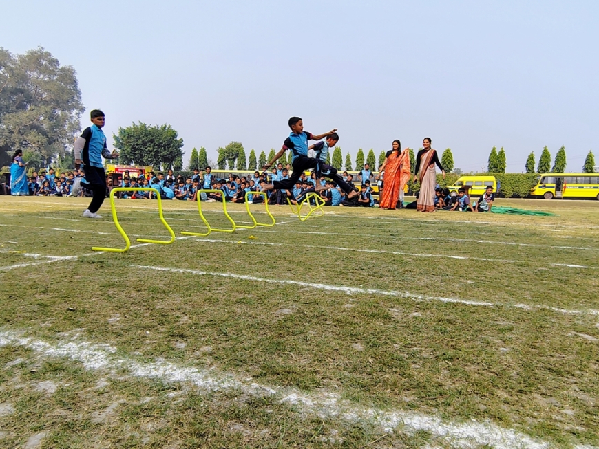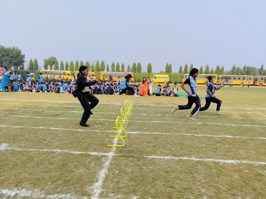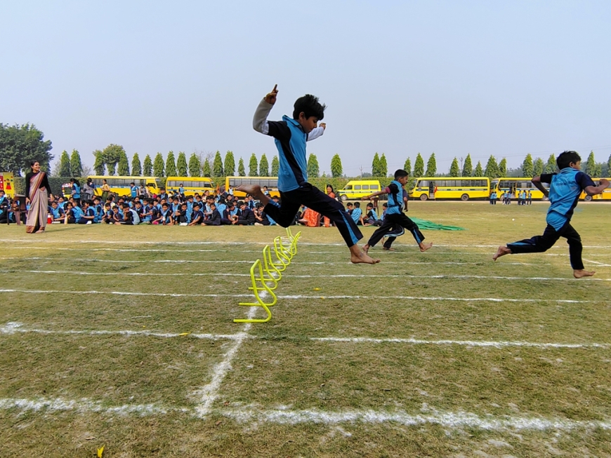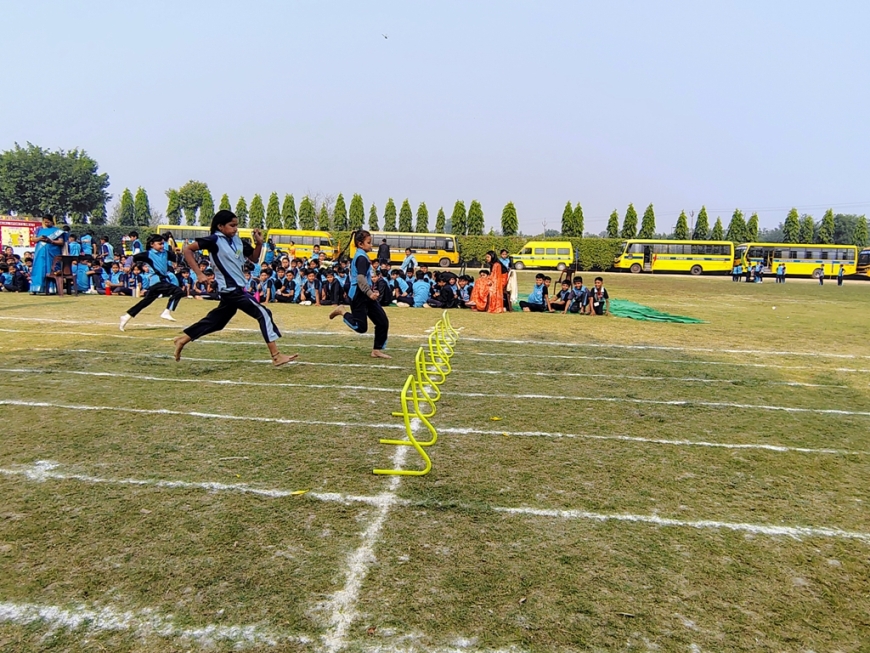Description : The playground of Pragyan International School came alive with boundless excitement as the Annual Sports Fiesta 2025–26 commenced with a grand torch-lighting ceremony, graced by School Manager Dr. Harish Kumar Sharma, Principal Dr. Deepti Sharma, School In-Charge Dr. Priyanka Sharma, and other esteemed dignitaries — invoking the spirit of success, strength, and sportsmanship. The ceremony was followed by a spectacular March Past, showcasing the students’ unity, discipline, and athletic pride. The Fiesta was officially declared open when Principal Dr. Deepti Sharma waved the green flag, signaling the start of the much-awaited events. Motivational words from the dignitaries uplifted the young athletes, inspiring them to play with determination and fair spirit. Under the guidance of Mr. Vishal (P.E.T), a series of thrilling events 30m, 50m, 100m, 200m, Hurdle, Sack, Balloon, Biscuit, Banana, Lemon, 3-Leg Race, and Tug of War filled the grounds with cheers, teamwork, and unforgettable enthusiasm!