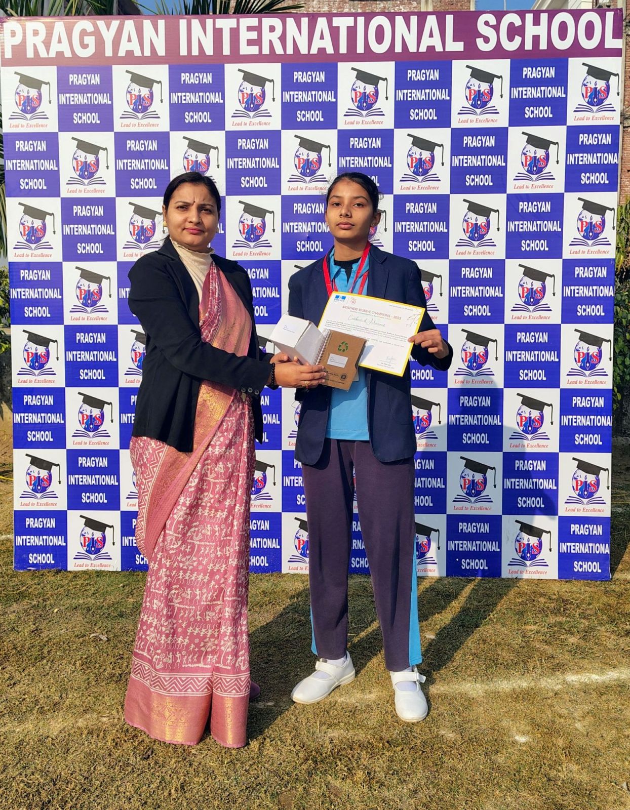 Description : Pragyan International School, Dudhara proudly recognizes its students for their dedication to environmental awareness under the UNESCO Biosphere Reserves Champions 2025 initiative. With the guidance of Mr. Sarvendra Yadav and the support of Manager Dr. Deepti Sharma, Principal Dr. Priyanka Sharma, and HOD Mr. Gajendra, students showcased strong understanding of biodiversity and conservation. UNESCO Certificate of Appreciation Awardees: Priyanshi (8B) Siddhi Gaur (8A) Devik (8A) Dolly (8A) Their commitment to protecting nature makes them true young champions.