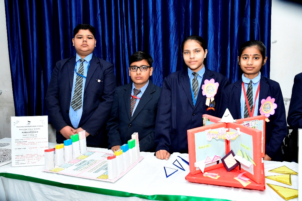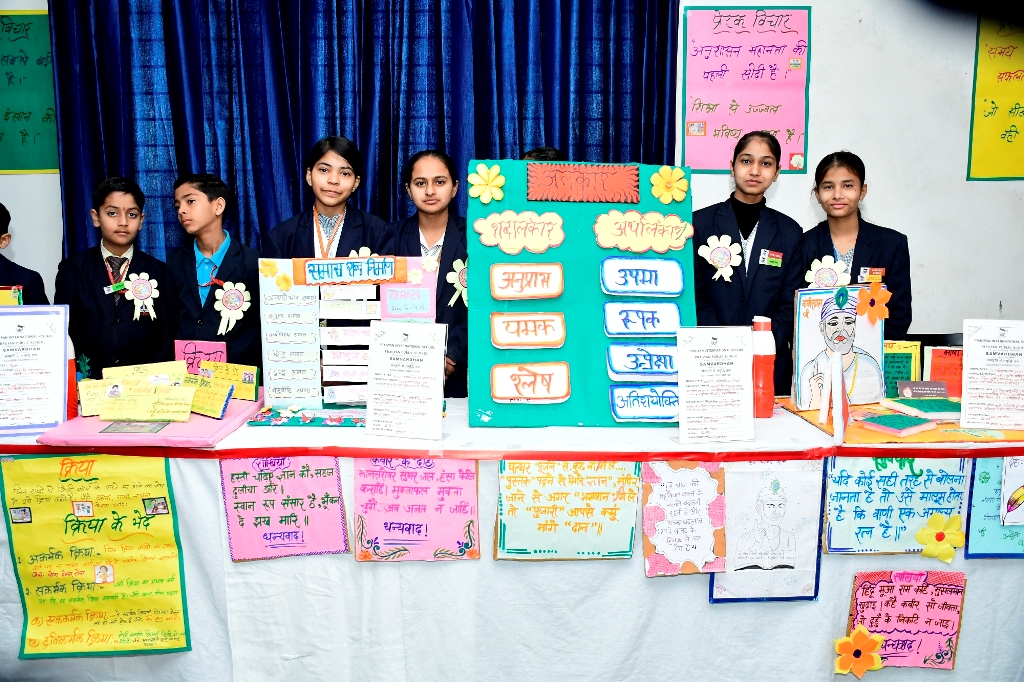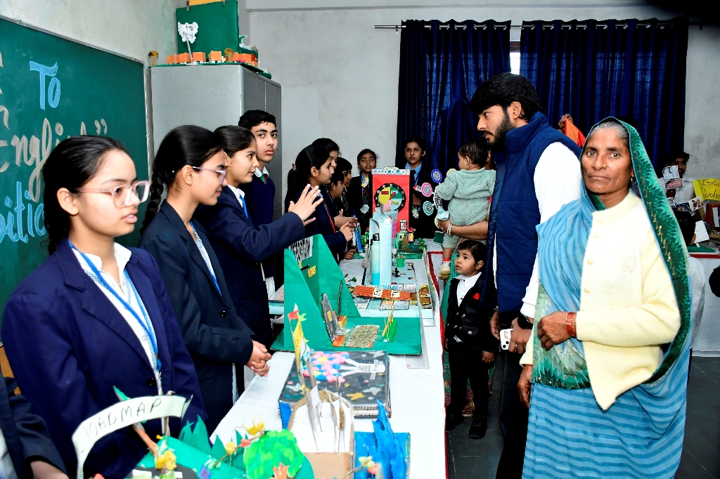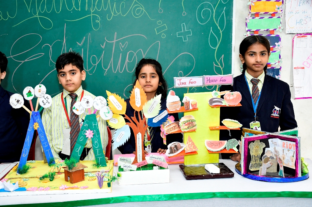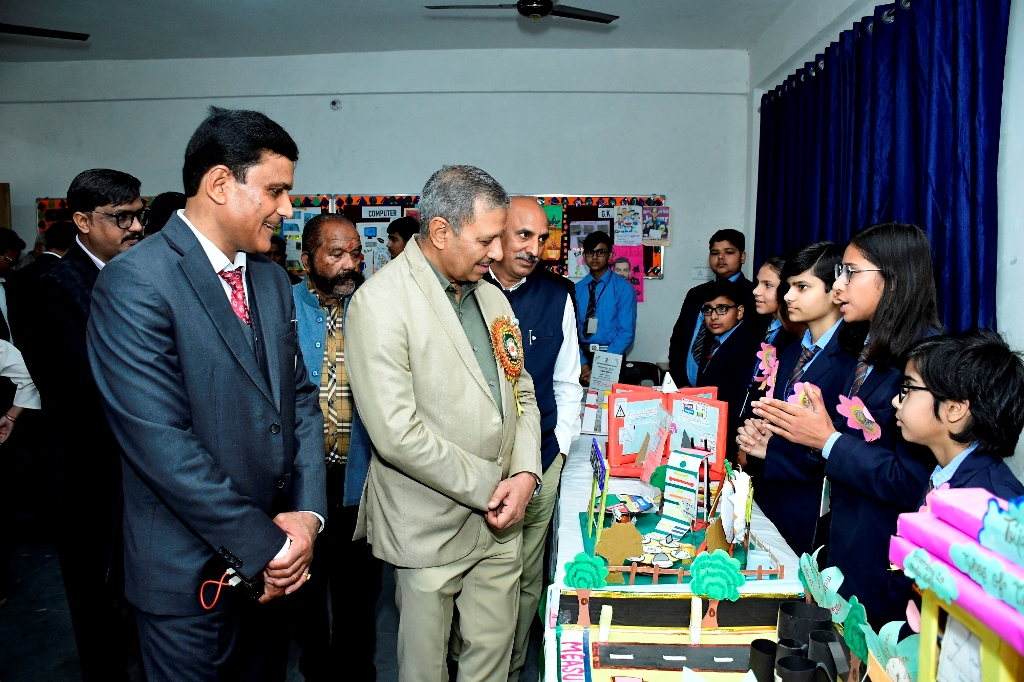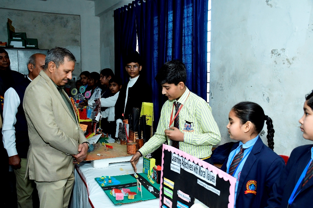 Description : The Annual Day celebration witnessed an engaging Interdisciplinary Exhibition that beautifully highlighted the creativity, knowledge, and practical learning of students across all subjects. The exhibition area was thoughtfully arranged with vibrant displays representing Science, Mathematics, Social Science, English, Hindi, Computer Science, Art, and Skill Education, offering visitors a holistic glimpse into the school’s academic excellence. Students enthusiastically presented working models, charts, research projects, innovative experiments, literary displays, and creative artworks. Each exhibit reflected conceptual clarity, teamwork, and real-world application of classroom learning. The esteemed dignitaries, guests, and parents visited the exhibition and keenly observed the exhibits. They interacted with students, appreciated their confidence and subject knowledge, and commended the school for fostering experiential learning.