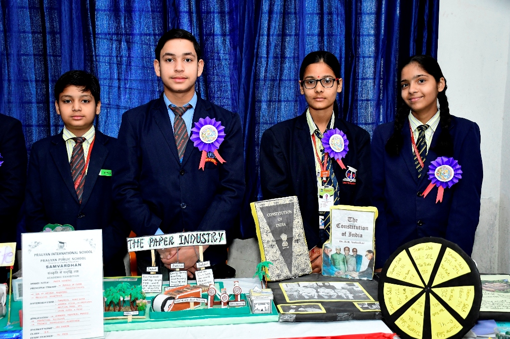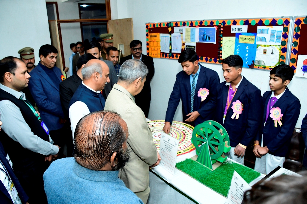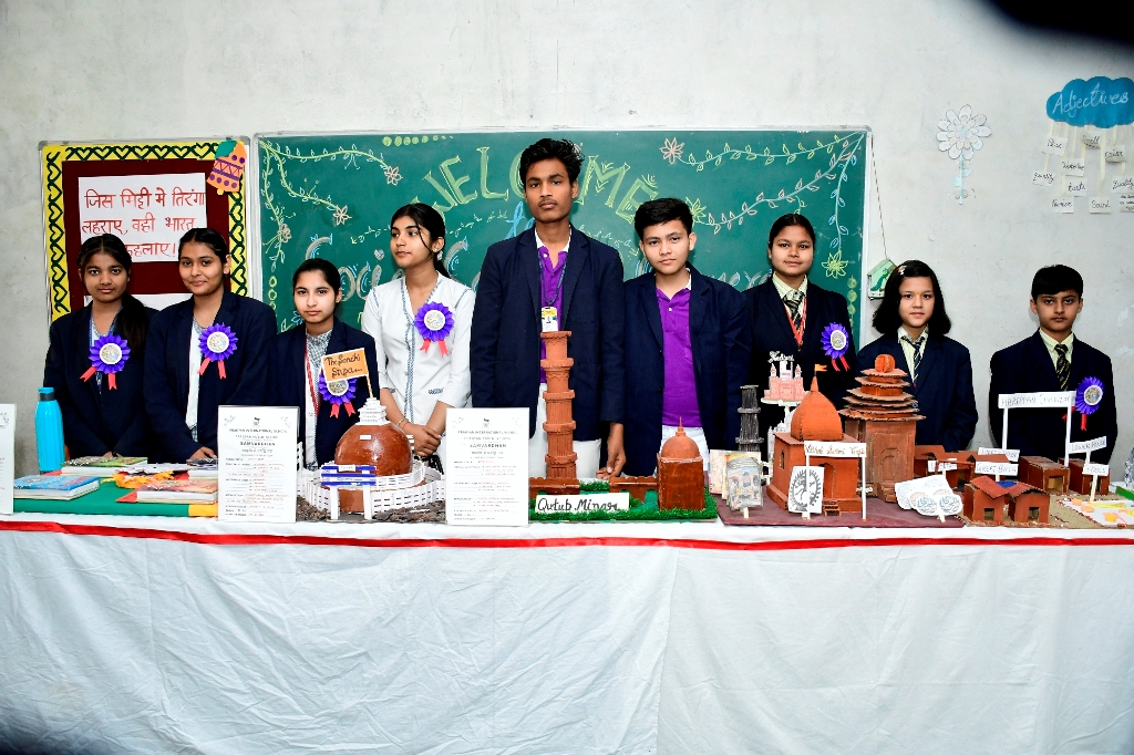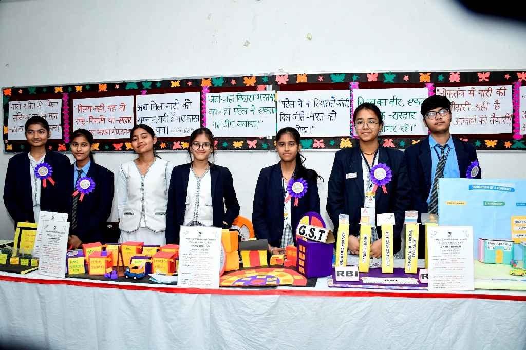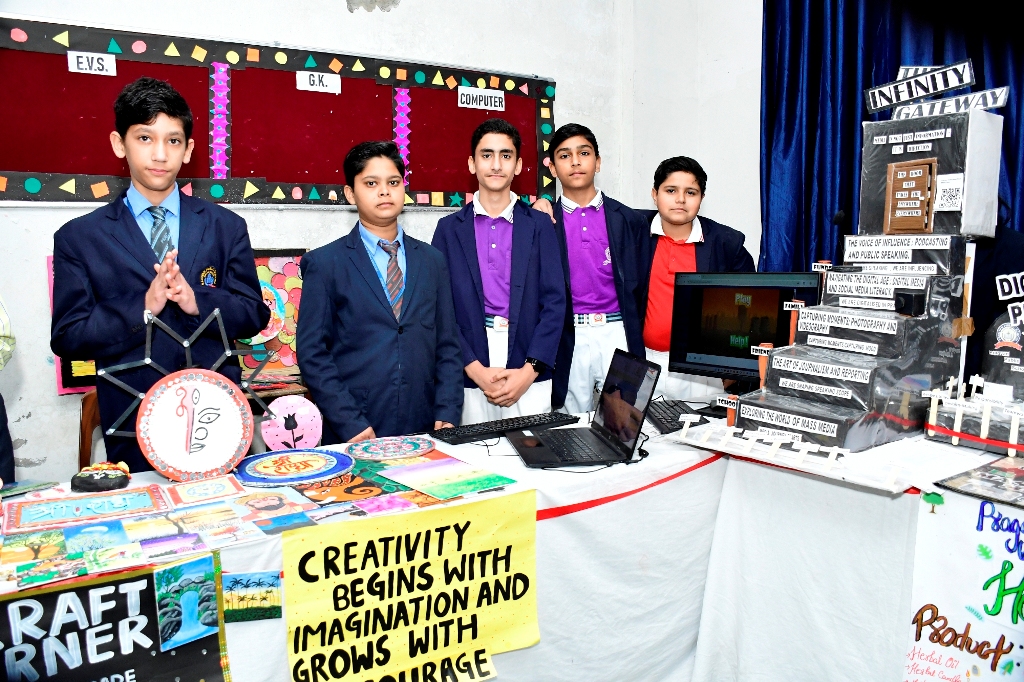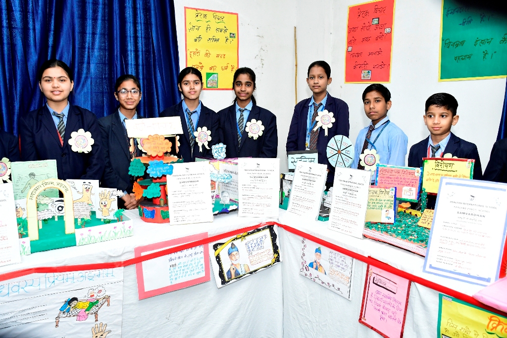 Description : The Annual Day celebration witnessed an engaging Interdisciplinary Exhibition that beautifully highlighted the creativity, knowledge, and practical learning of students across all subjects. The exhibition area was thoughtfully arranged with vibrant displays representing Science, Mathematics, Social Science, English, Hindi, Computer Science, Art, and Skill Education, offering visitors a holistic glimpse into the school’s academic excellence. Students enthusiastically presented working models, charts, research projects, innovative experiments, literary displays, and creative artworks. Each exhibit reflected conceptual clarity, teamwork, and real-world application of classroom learning. The esteemed dignitaries, guests, and parents visited the exhibition and keenly observed the exhibits. They interacted with students, appreciated their confidence and subject knowledge, and commended the school for fostering experiential learning.
