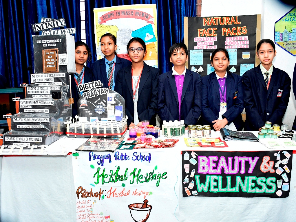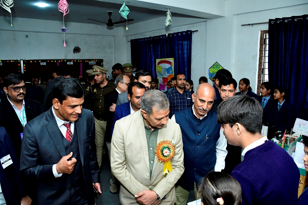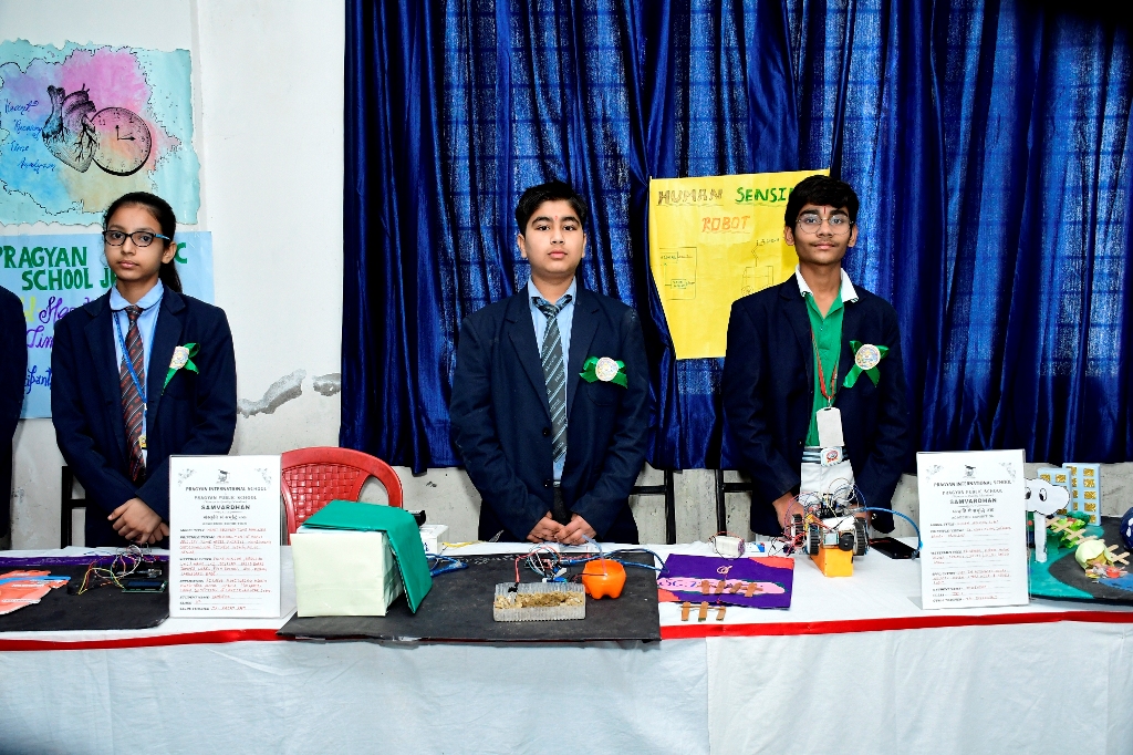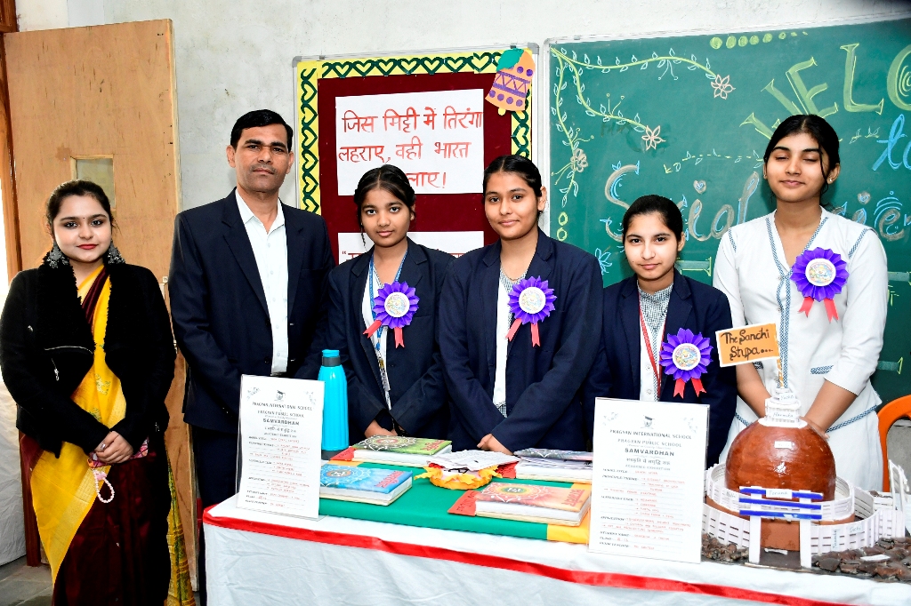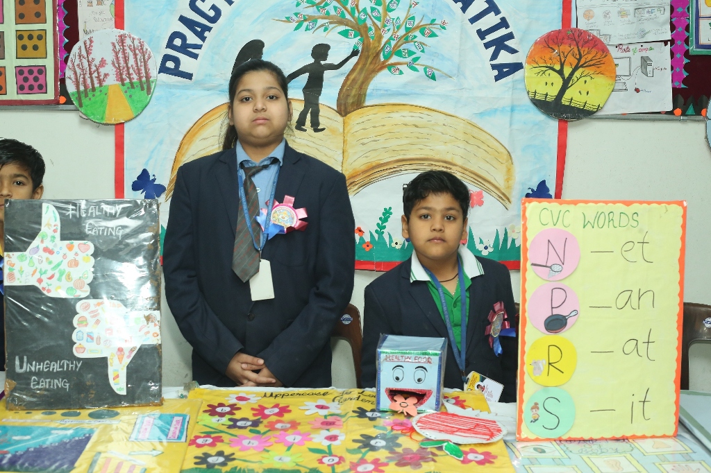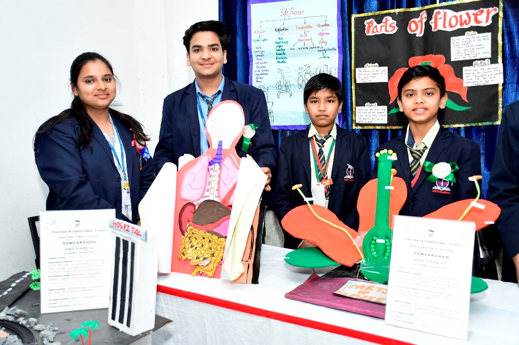 Description : The Annual Day celebration witnessed an engaging Interdisciplinary Exhibition that beautifully highlighted the creativity, knowledge, and practical learning of students across all subjects. The exhibition area was thoughtfully arranged with vibrant displays representing Science, Mathematics, Social Science, English, Hindi, Computer Science, Art, and Skill Education, offering visitors a holistic glimpse into the school’s academic excellence. Students enthusiastically presented working models, charts, research projects, innovative experiments, literary displays, and creative artworks. Each exhibit reflected conceptual clarity, teamwork, and real-world application of classroom learning. The esteemed dignitaries, guests, and parents visited the exhibition and keenly observed the exhibits. They interacted with students, appreciated their confidence and subject knowledge, and commended the school for fostering experiential learning.