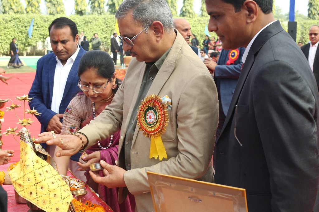 Description : Igniting Minds, Illuminating the Future The Annual Day Celebration 2026 began on an auspicious note with the Ceremonial Lamp Lighting, signifying the triumph of wisdom over ignorance. The sacred lamp was lit by our distinguished guests along with the respected Manager, Dr. Harish Kumar Sharma, and Principal, Dr. Deepti Sharma, creating a serene and inspiring atmosphere that set the tone for an unforgettable celebration ahead.